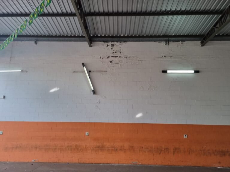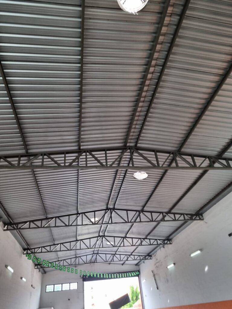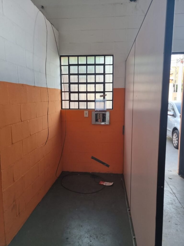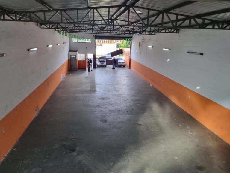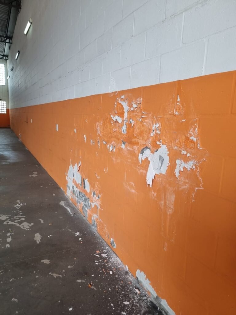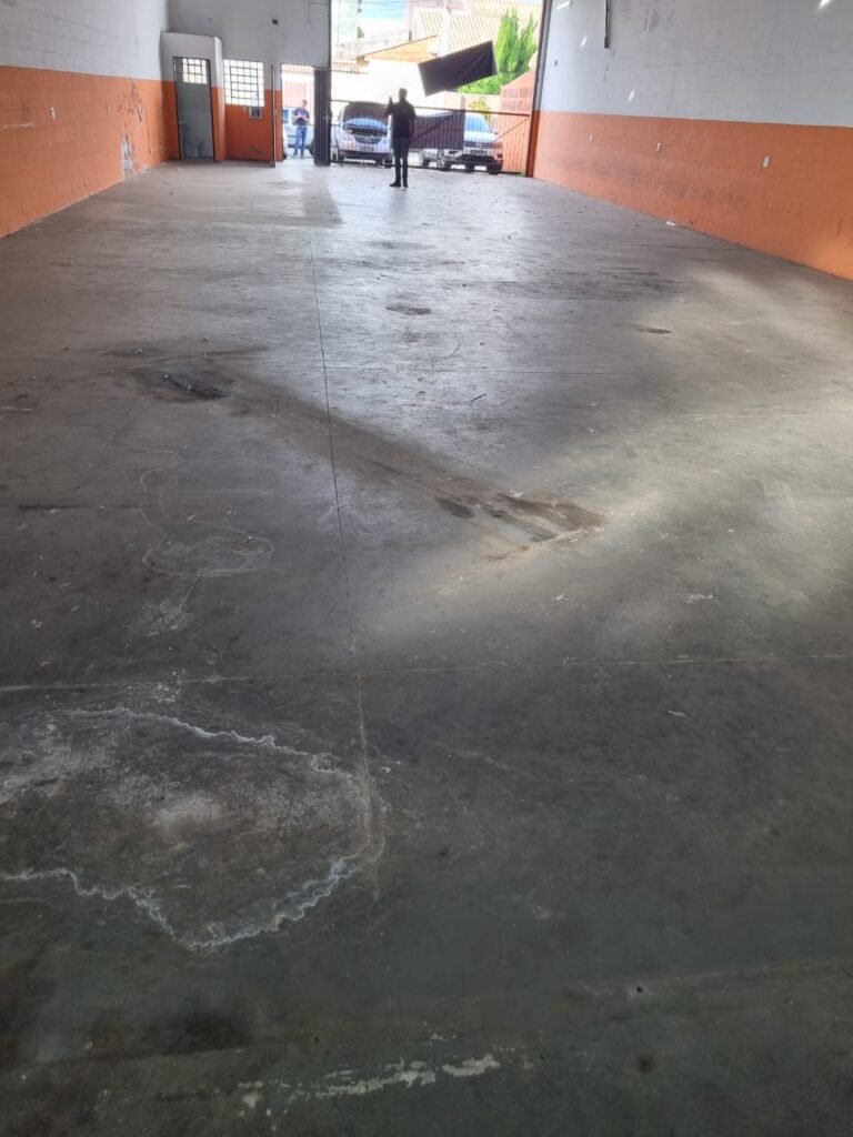 Galpão:- Piso concreto usinado polido com a pintura em tinta piso na cor cinza descascando e com desgaste natural o restante em ordem, parede de bloco aparente com a pintura barrado na cor laranja o restante na cor branco descascando e com manchas de infiltração o restante em ordem, 16 espelhos de luz em ordem, 2 interruptores em ordem, 16 tomadas em ordem, 17 luminárias duplas com 15 lâmpadas florescente tubulares em ordem, telhado estrutura de ferro com telhas galvanizadas calhas com infiltração em 05 pontos o restante em ordem, 04 trocadores de calor em ordem, 06 vitrôs em ordem, 95 vidros em ordem, portão social chapa dobrada com a pintura na cor preto em ordem, fechadura e chave modelo Yale em ordem, 02 maçanetas em ordem, porta em aço automatizada com motor elétrico em ordem, botoeira em ordem,