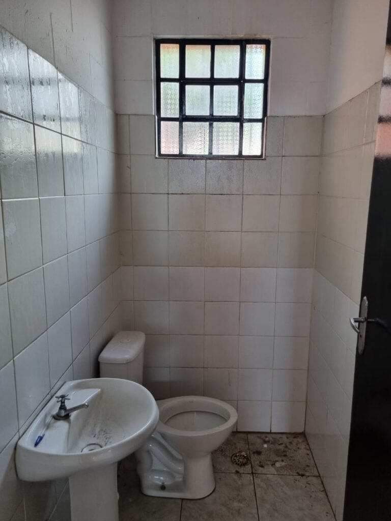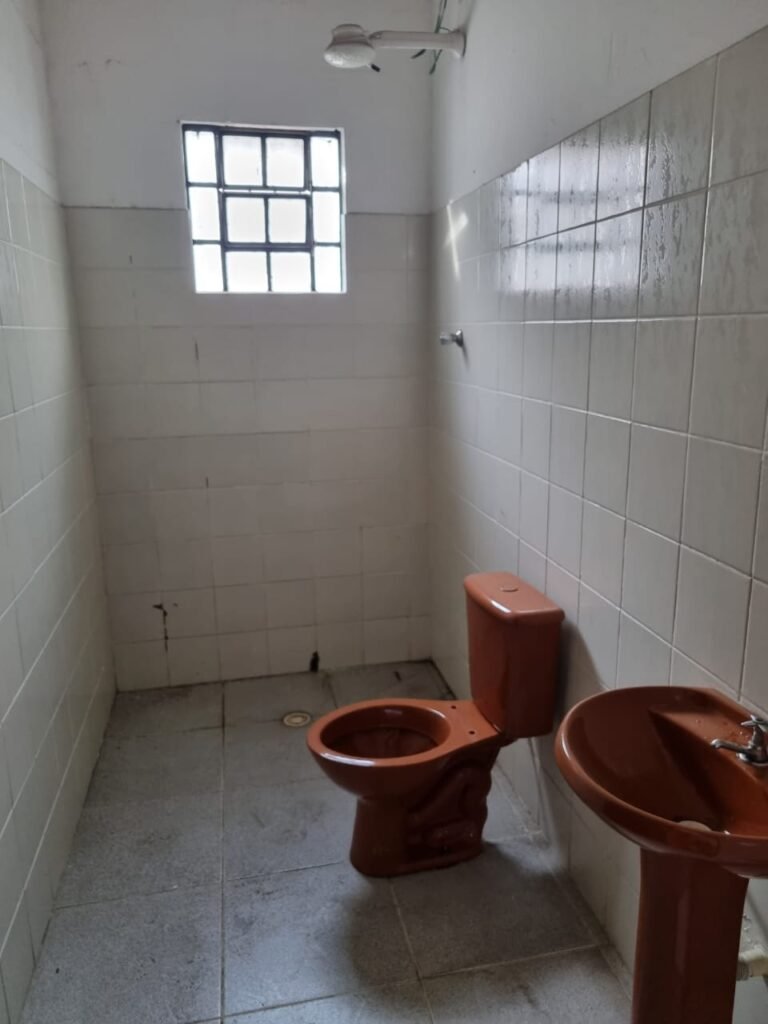 WC Fundos 02:- Piso cerâmico em ordem, 01 ralo com tampa e desentupido em ordem, azulejos 1/3 parede em bloco aparente com a pintura na cor branco em ordem, teto forro de PVC em ordem, 01 interruptor em ordem, porta de madeira com a pintura na cor preto descascando o restante em ordem, maçanetas em ordem, conjunto vaso sanitário cerâmica marrom Deca em ordem, conjunto de lavatório e coluna cerâmica na cor marrom em ordem, torneira de rosca em ordem, vitro basculante com a pintura na cor preto em ordem, com 12 vidros jateados em ordem, trava em ordem, chuveiro Lorenzetti em ordem, 01 registro com canopla em ordem, 02 azulejos quebrados o restante em ordem,