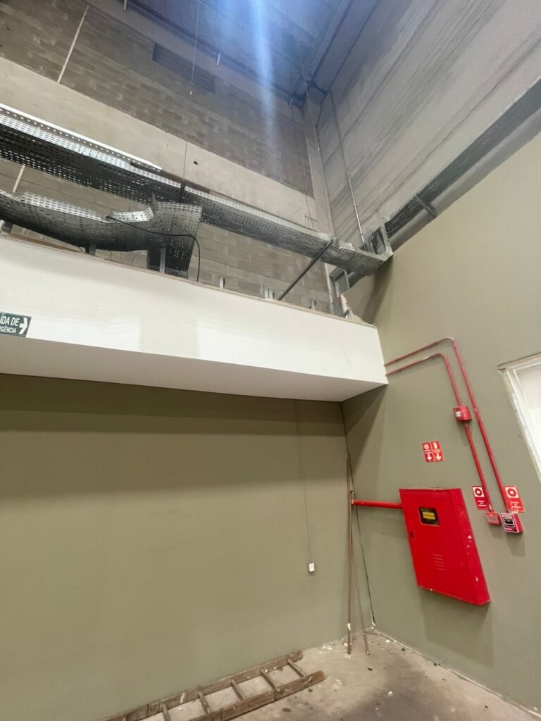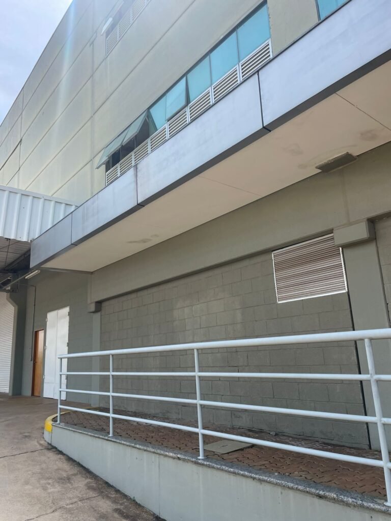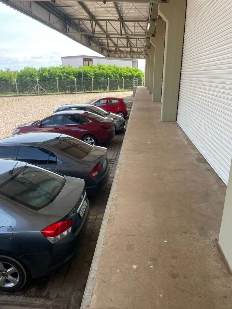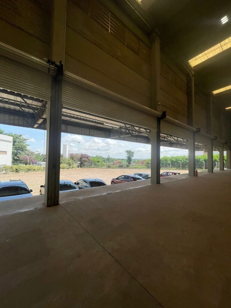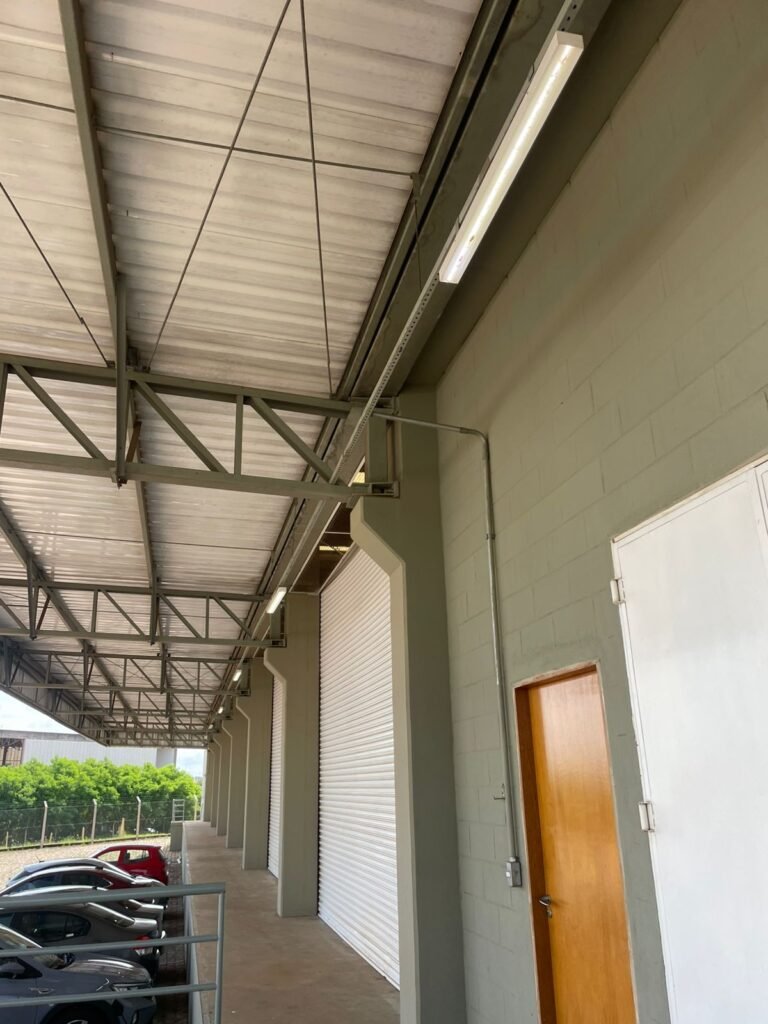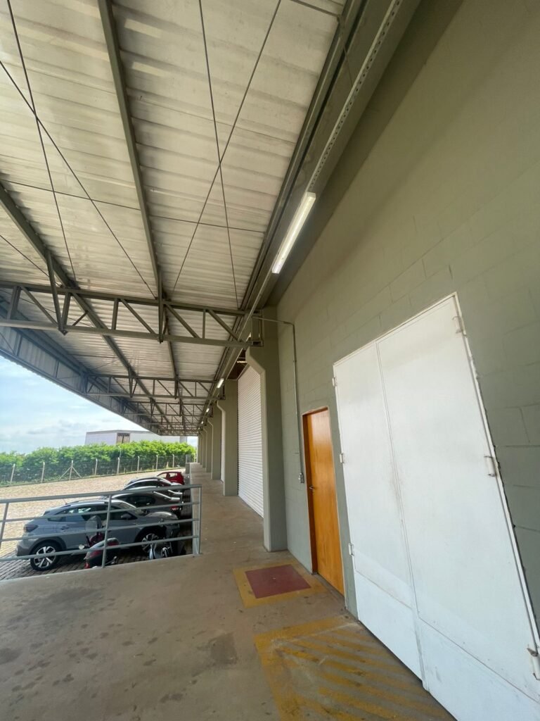 GALPÃO :- 01 caixa de ferro de proteção com porta e 02 fechaduras dos disjuntores gerais, disjuntor sendo eles, 01 marca Weg DWP125L-80-3 Em ordem, 04 marca Clamper 275v 45Ka em ordem, 02 marca Steck SD C40 400v 2P em ordem, 11 marca Moeller PLS4-B20 em ordem, 01 Marca Moeller PLS4-B20/2 em ordem, 01 PLS4-C20/2 em ordem, 09 marca Moeller PLS4-B16/2 em ordem, 02 marca Moeller PLS4-B25/2 em ordem e 01 marca Moeller PLS4-C25/2 em ordem. 01 caixa de disjuntor com tampa de proteção e 01 fechadura dos disjuntores gerais, disjuntor sendo eles, 01 marca Weg DWP125L-80-3 400v em ordem, 04 clamper, 01 marca Schneider MCB C40 em ordem, 06 marca Weg MDW C16 400v em ordem, 02 marca Moeller PLS4-B20 230v/400v em ordem e 01 marca Schneider MCB C40 em ordem. 24 Luminárias com três LEDs em ordem, piso concreto usinado e polido em ordem, paredes de placas de concreto em ordem, 03 caixas de hidrante com mangueira, chave e bicos em ordem, 06 extintores em ordem sendo 02 água 10 lt 2-A e 04 pó químico 20 B:C, 12 lâmpadas emergência em ordem, 36 vidros lisos transparentes em ordem, 24 luminárias tripla em ordem, 07 portas automatizadas com motor e baterias em ordem, parede divisória com pintura nova na cor concreto, 01 porta de madeira envernizada, maçanetas em ordem, fechadura e chave Yale em ordem, porta emperrando restante em ordem.