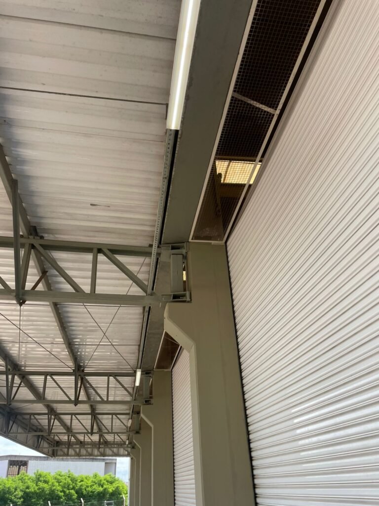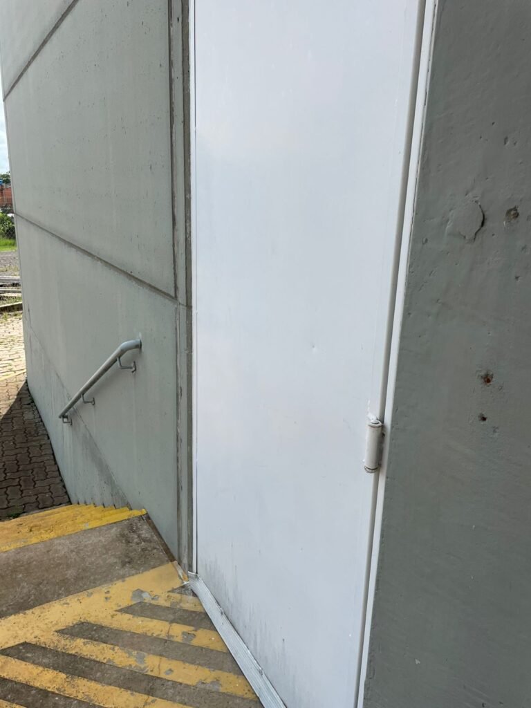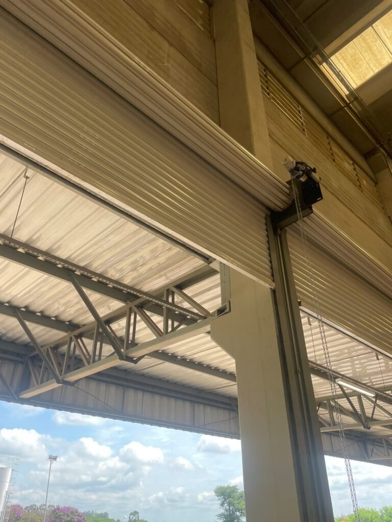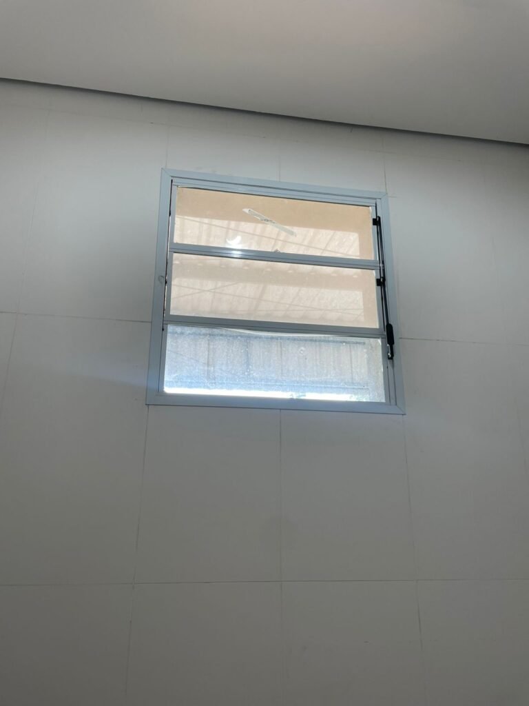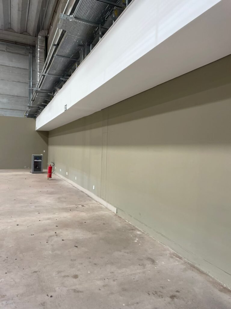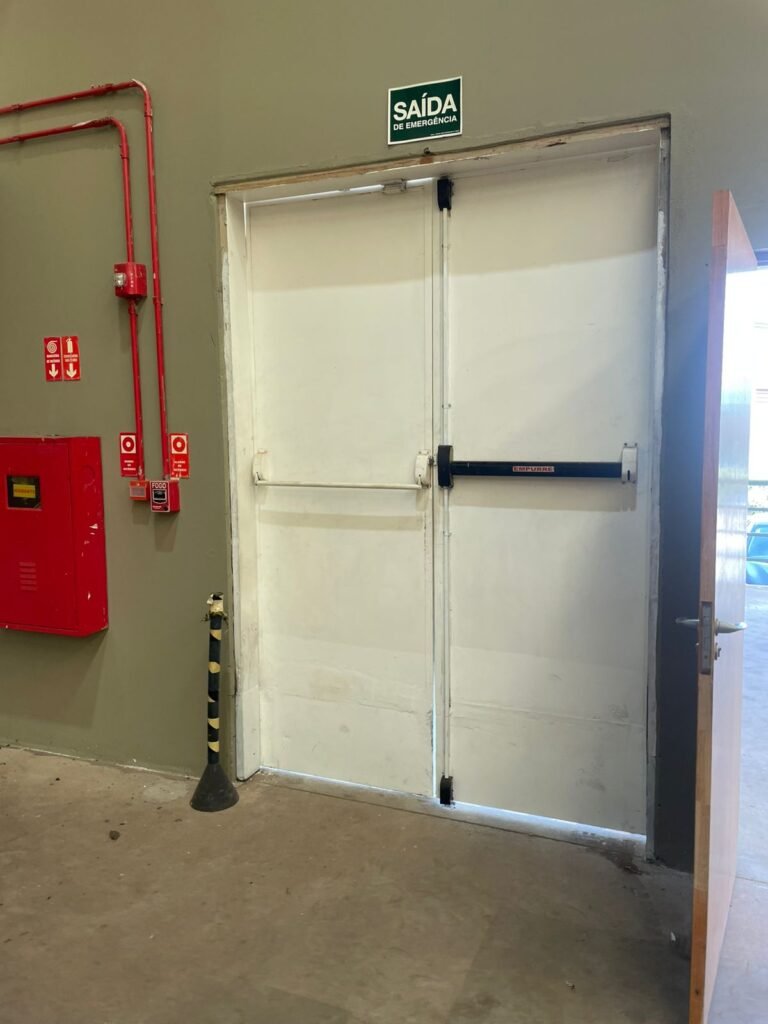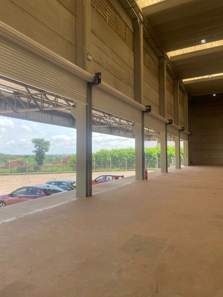 GALPÃO :- 01 caixa de ferro de proteção com porta e 02 fechaduras dos disjuntores gerais, disjuntor sendo eles, 01 marca Weg DWP125L-80-3 Em ordem, 04 marca Clamper 275v 45Ka em ordem, 02 marca Steck SD C40 400v 2P em ordem, 11 marca Moeller PLS4-B20 em ordem, 01 Marca Moeller PLS4-B20/2 em ordem, 01 PLS4-C20/2 em ordem, 09 marca Moeller PLS4-B16/2 em ordem, 02 marca Moeller PLS4-B25/2 em ordem e 01 marca Moeller PLS4-C25/2 em ordem. 01 caixa de disjuntor com tampa de proteção e 01 fechadura dos disjuntores gerais, disjuntor sendo eles, 01 marca Weg DWP125L-80-3 400v em ordem, 04 clamper, 01 marca Schneider MCB C40 em ordem, 06 marca Weg MDW C16 400v em ordem, 02 marca Moeller PLS4-B20 230v/400v em ordem e 01 marca Schneider MCB C40 em ordem. 24 Luminárias com três LEDs em ordem, piso concreto usinado e polido em ordem, paredes de placas de concreto em ordem, 03 caixas de hidrante com mangueira, chave e bicos em ordem, 06 extintores em ordem sendo 02 água 10 lt 2-A e 04 pó químico 20 B:C, 12 lâmpadas emergência em ordem, 36 vidros lisos transparentes em ordem, 24 luminárias tripla em ordem, 07 portas automatizadas com motor e baterias em ordem, parede divisória com pintura nova na cor concreto, 01 porta de madeira envernizada, maçanetas em ordem, fechadura e chave Yale em ordem, porta emperrando restante em ordem.
