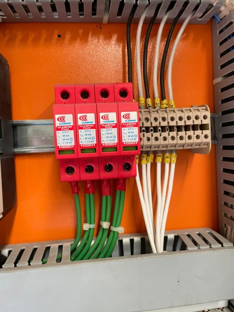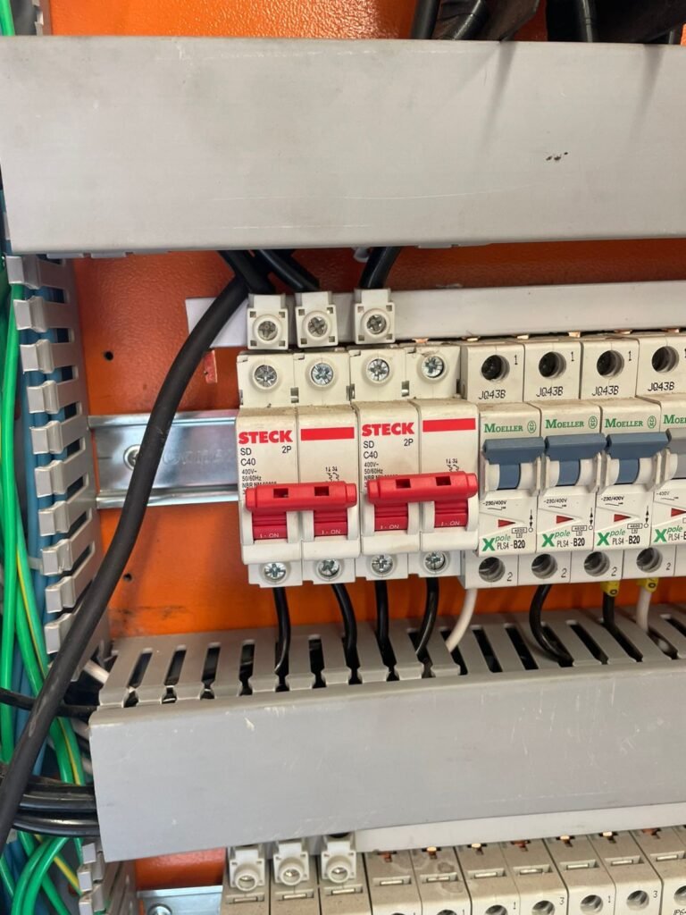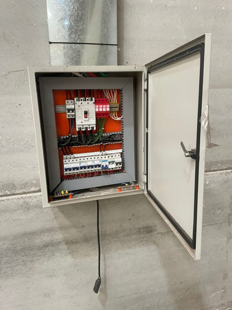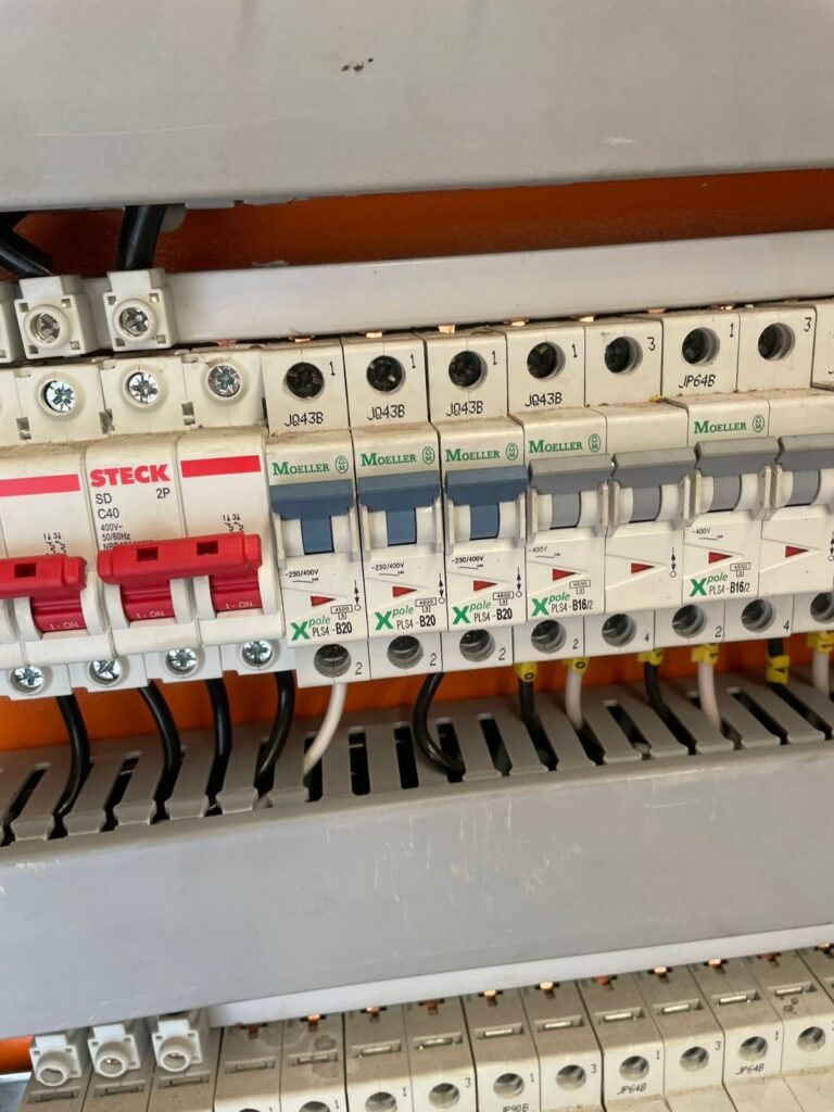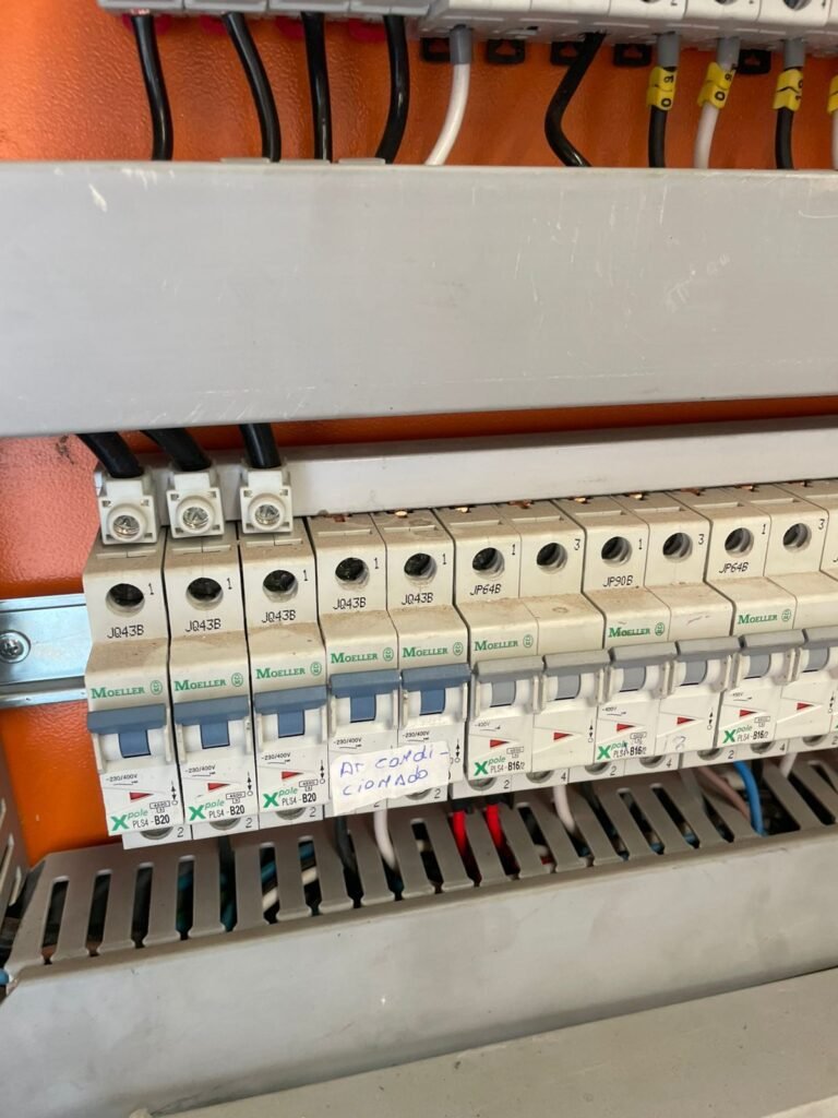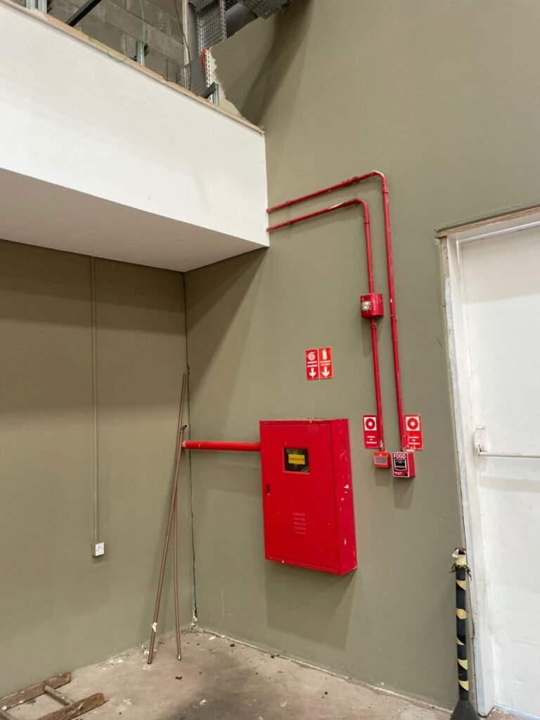 GALPÃO :- 01 caixa de ferro de proteção com porta e 02 fechaduras dos disjuntores gerais, disjuntor sendo eles, 01 marca Weg DWP125L-80-3 Em ordem, 04 marca Clamper 275v 45Ka em ordem, 02 marca Steck SD C40 400v 2P em ordem, 11 marca Moeller PLS4-B20 em ordem, 01 Marca Moeller PLS4-B20/2 em ordem, 01 PLS4-C20/2 em ordem, 09 marca Moeller PLS4-B16/2 em ordem, 02 marca Moeller PLS4-B25/2 em ordem e 01 marca Moeller PLS4-C25/2 em ordem. 01 caixa de disjuntor com tampa de proteção e 01 fechadura dos disjuntores gerais, disjuntor sendo eles, 01 marca Weg DWP125L-80-3 400v em ordem, 04 clamper, 01 marca Schneider MCB C40 em ordem, 06 marca Weg MDW C16 400v em ordem, 02 marca Moeller PLS4-B20 230v/400v em ordem e 01 marca Schneider MCB C40 em ordem. 24 Luminárias com três LEDs em ordem, piso concreto usinado e polido em ordem, paredes de placas de concreto em ordem, 03 caixas de hidrante com mangueira, chave e bicos em ordem, 06 extintores em ordem sendo 02 água 10 lt 2-A e 04 pó químico 20 B:C, 12 lâmpadas emergência em ordem, 36 vidros lisos transparentes em ordem, 24 luminárias tripla em ordem, 07 portas automatizadas com motor e baterias em ordem, parede divisória com pintura nova na cor concreto, 01 porta de madeira envernizada, maçanetas em ordem, fechadura e chave Yale em ordem, porta emperrando restante em ordem.