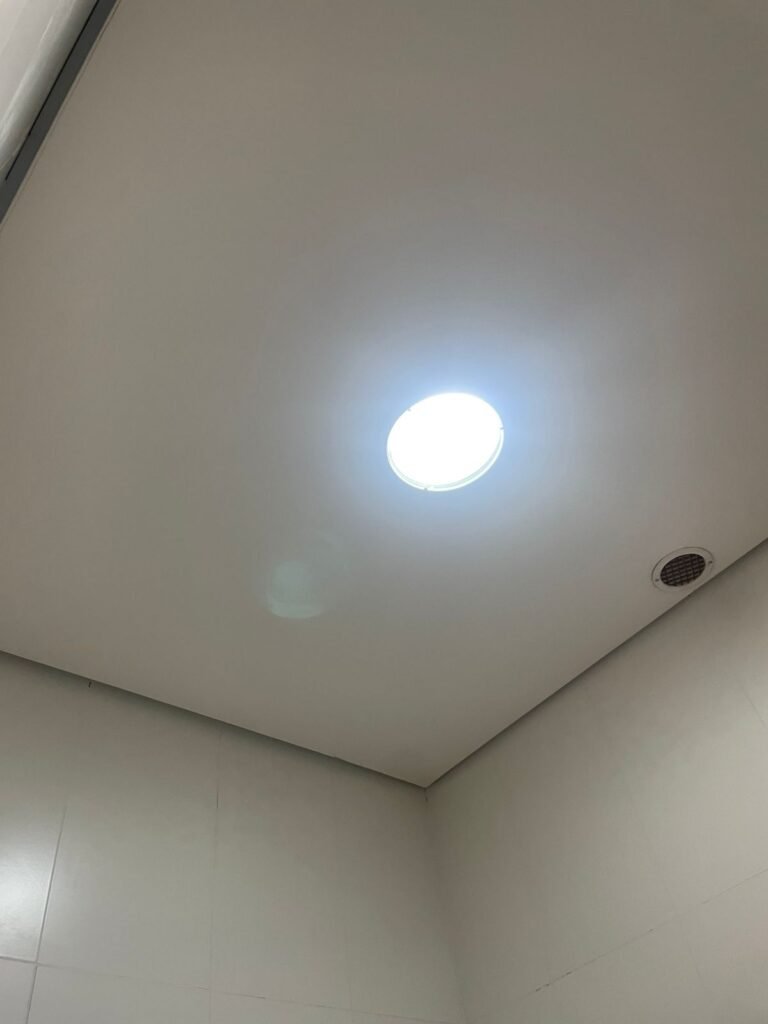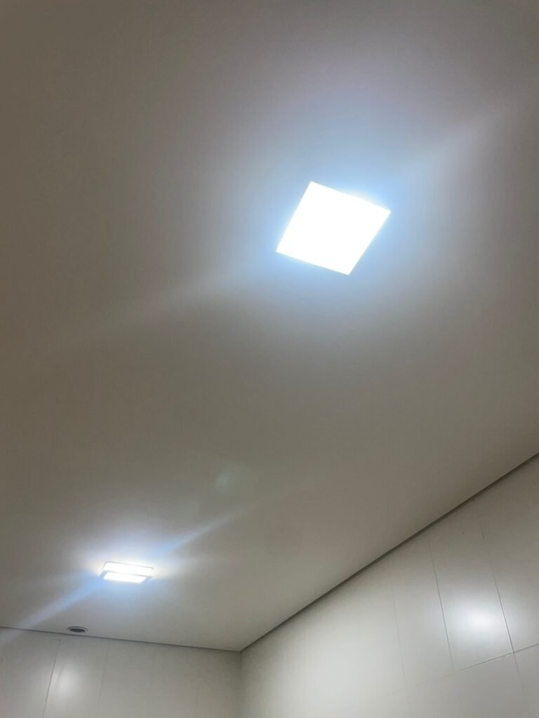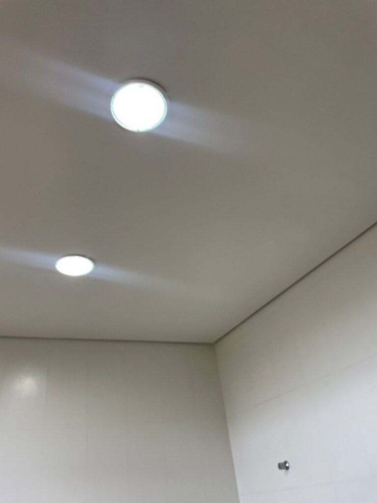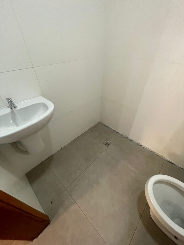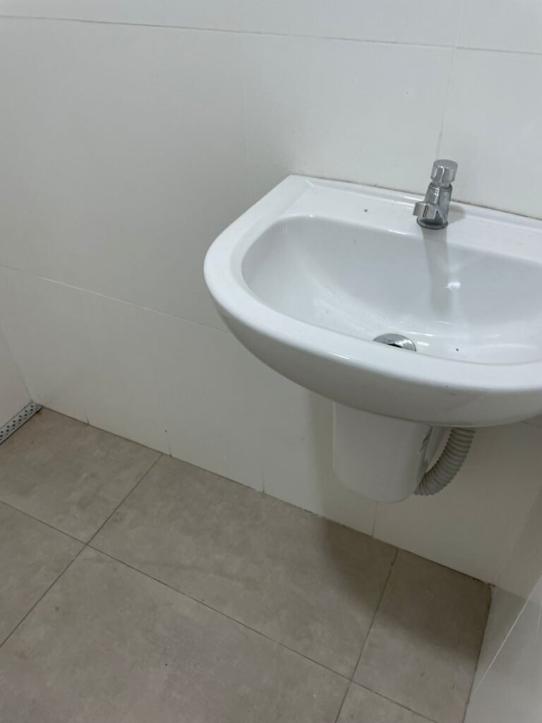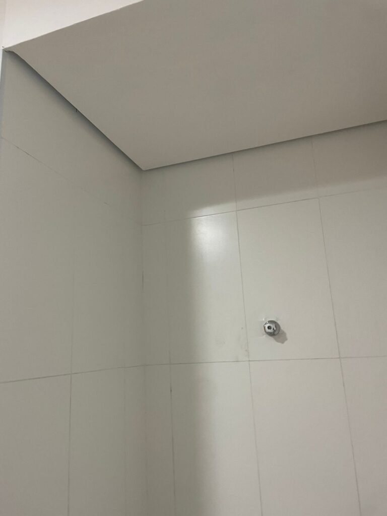 W.C FEMININO :- Porta de madeira envernizada e nova em ordem, fechadura e chaves em ordem, piso porcelanato em ordem, pia mármore em ordem, 02 cubas cerâmica branca Deca em ordem, 02 torneiras Celite em ordem, 02 sifão sanfonado universal em ordem, azulejo até o teto em ordem, 02 luminárias embutidas com lâmpada LED em ordem, 01 vitrô basculante com vidro blindex em ordem, trava em ordem, 02 Box com 02 portas em ordem, travas em ordem, 01 ralo tipo grade em ordem, 01 conjunto de vaso sanitário e caixa acoplada de descarga em ordem, tampa de plástico em ordem, 02 registros com canopla em ordem, 01 chuveiro hydra DuchaSS em ordem, 01 interruptor danificado, espelho de luz em ordem.
