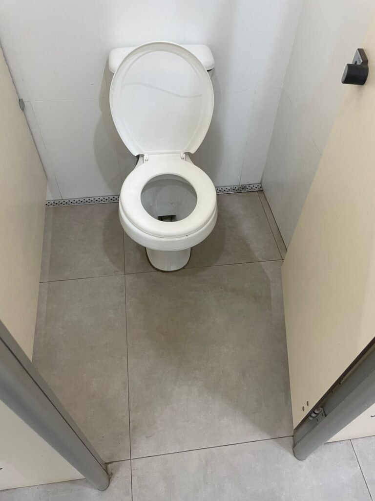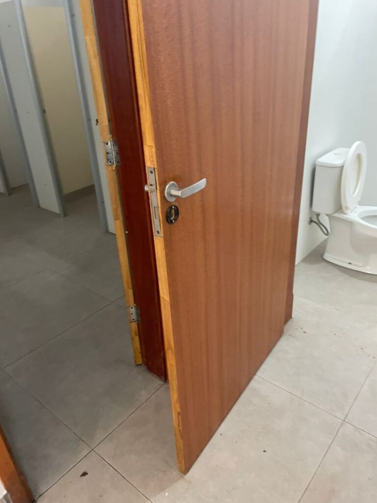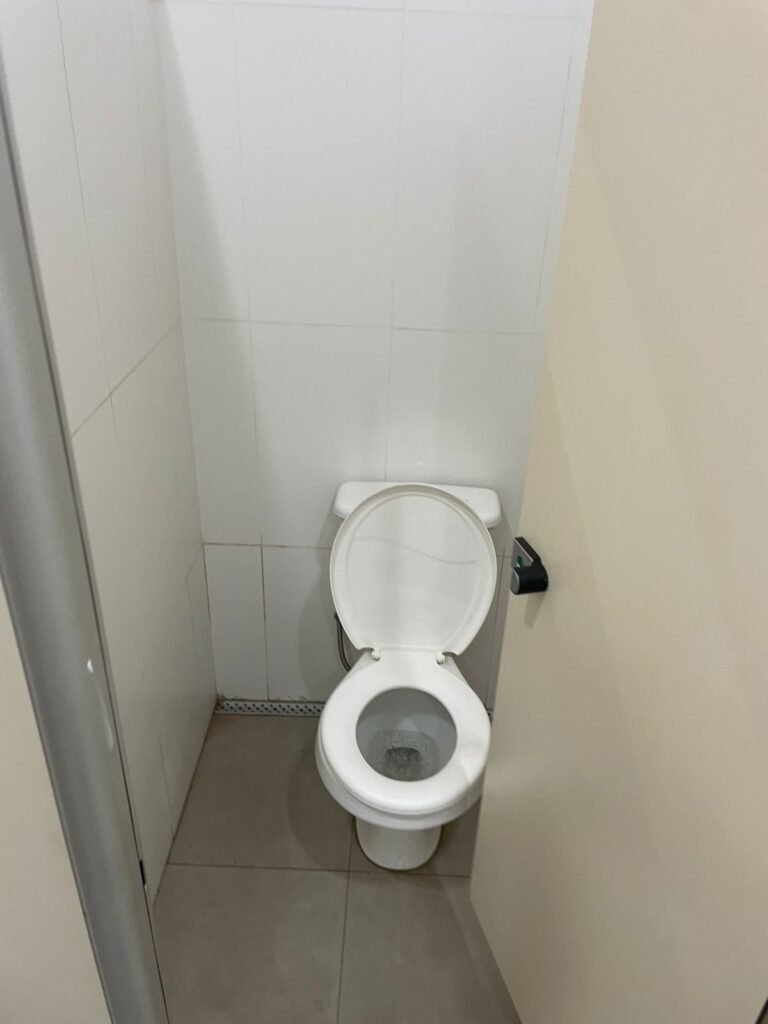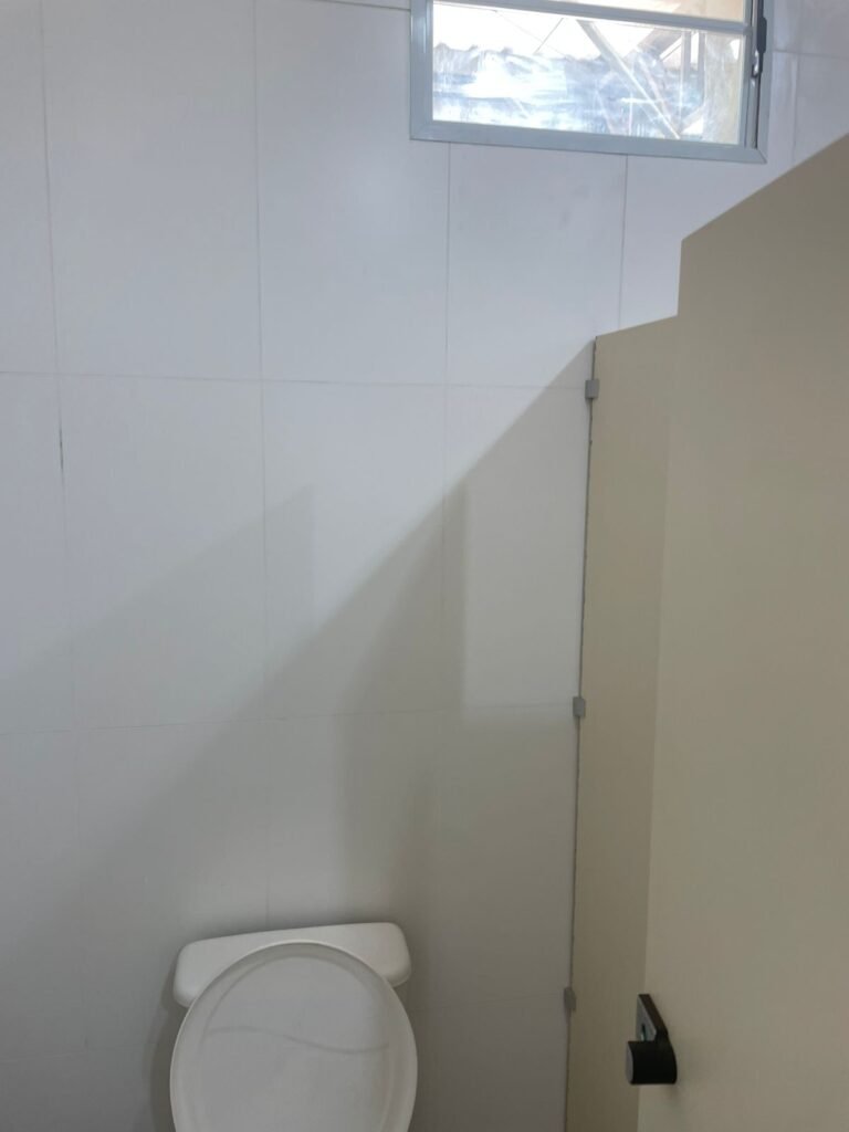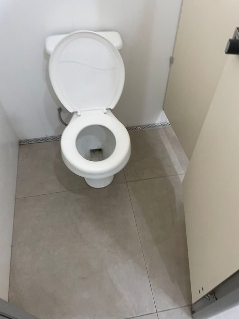 W.C FEMININO :- Porta de madeira envernizada e nova em ordem, fechadura e chaves em ordem, piso porcelanato em ordem, pia mármore em ordem, 02 cubas cerâmica branca Deca em ordem, 02 torneiras Celite em ordem, 02 sifão sanfonado universal em ordem, azulejo até o teto em ordem, 01 lustres embutidos com lâmpadas de LED em ordem, 03 lustres embutidos com lâmpadas de LED sem o prato, 02 vitrôs basculante com vidro blindex em ordem, trava em ordem, 03 Box com 03 portas em ordem, travas em ordem, 01 ralo tipo grade em ordem, 02 conjuntos de vaso sanitário e caixa acoplada de descarga em ordem, tampa de plástico em ordem, 01 registro com canopla em ordem, 01 vaso sanitário sem descarga, 01 chuveiro hydra duchaSS em ordem, 01 interruptor em ordem, espelho de luz em ordem, 03 divisórias com 03 portas em ordem, maçanetas em ordem.