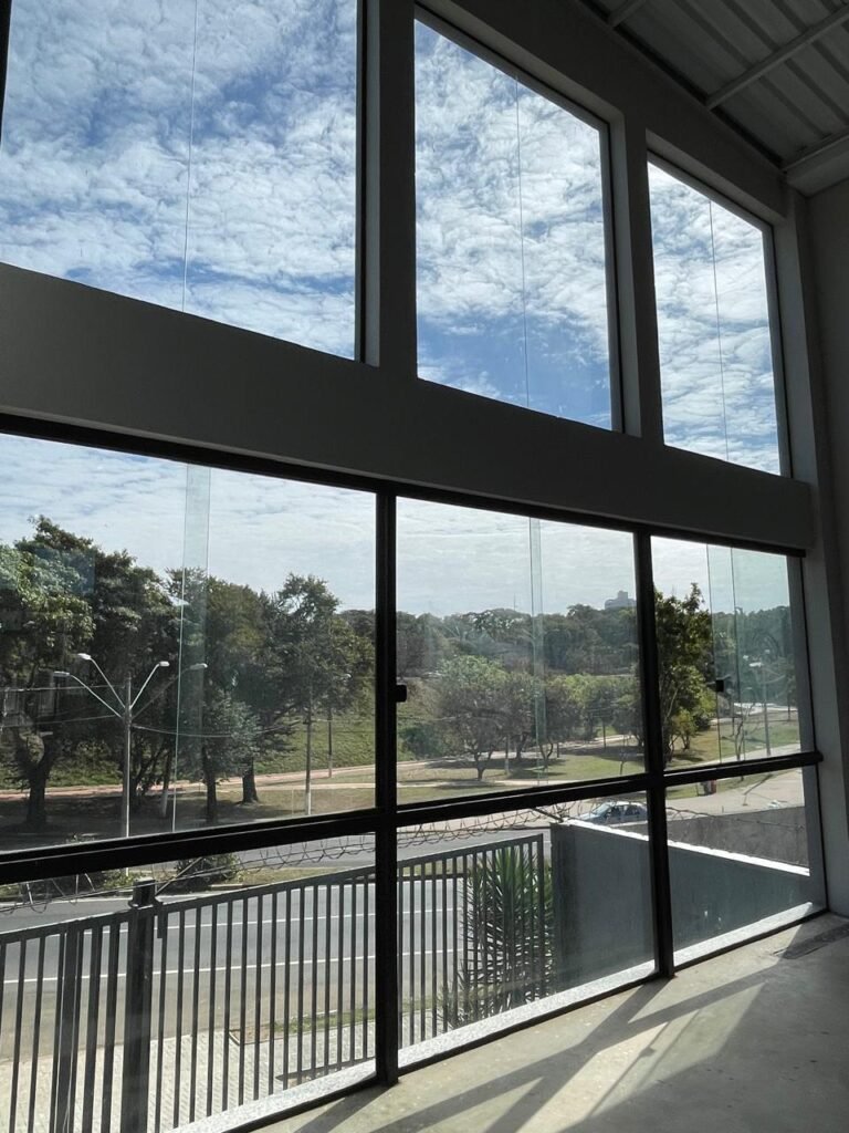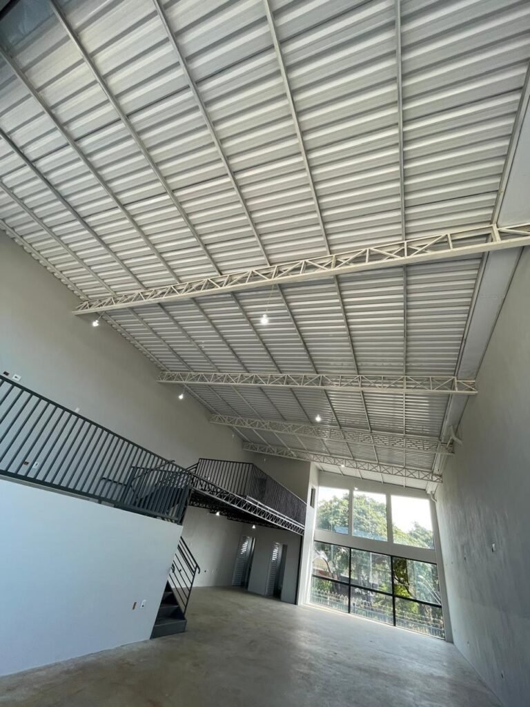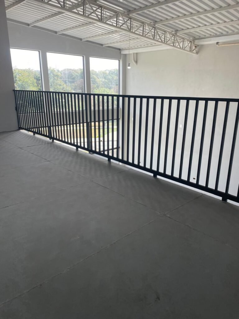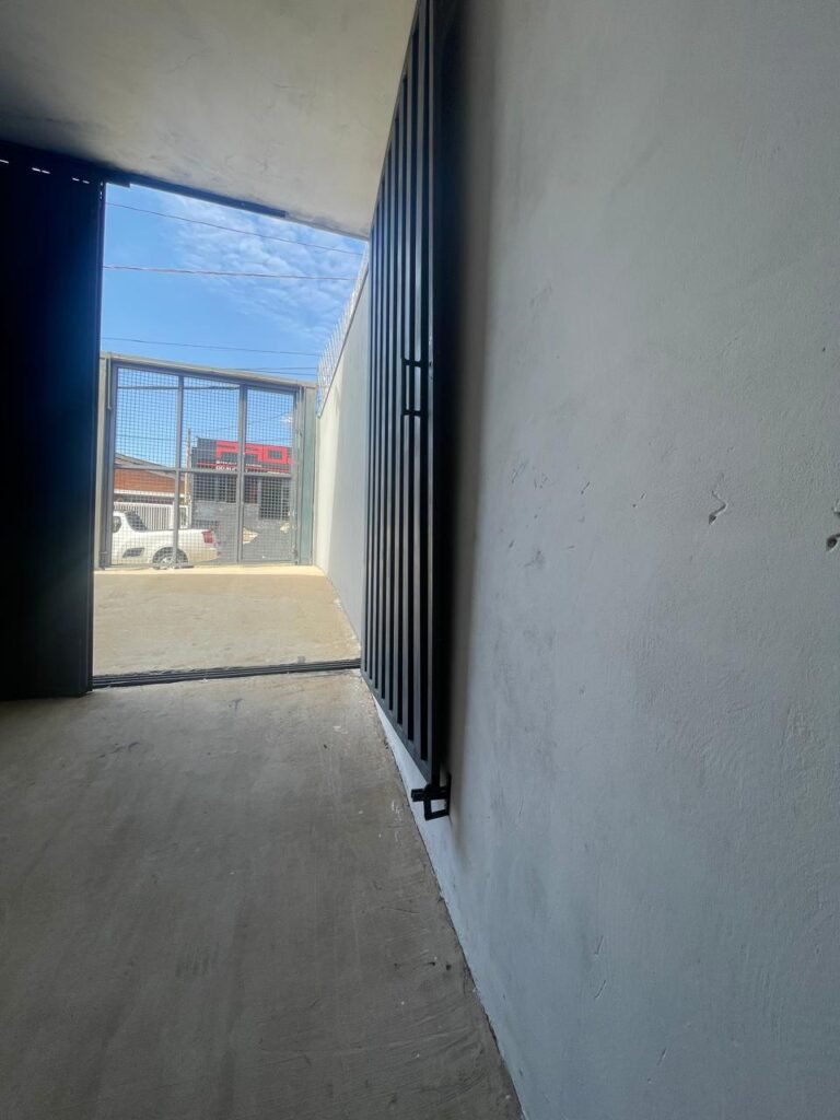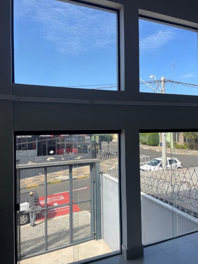GALPÃO-: 06 Portas deslizantes em vidro liso, transparente, temperado em ordem, 02 kits de puxadores na cor preto em ordem, 04 fechaduras pacres em ordem, marca Hela com chave, 17 vidros fixos, transparentes e temperados em ordem, 05 janelas deslizantes em ordem, ambas com 02 vidros lisos, transparentes e temperados em ordem e também com 01 fechadura em ordem, piso de concreto usinado com desgastes naturais, manchas, rachaduras pela extensão e restante em ordem, 01 ralo grelha de ferro em ordem, paredes com pintura látex nova, na cor branco gelo em ordem, 24 espelhos de luz marca Tramontina em ordem, sendo eles: 01 espelho com 06 interruptores, 13 tomadas duplas (110v/220v) e 09 espelhos cegos. 02 tampas de inspeção de plástico em ordem, 17 pré instalação de espelhos de luz, 06 lâmpadas de led em ordem, telhado revestido de telhas galvanizadas com pintura nova na cor branco em ordem, 01 escada de ferro com pintura nova na cor cinza em ordem, corrimões e guarda-corpos em ordem, com pintura nova na cor cinza em ordem.