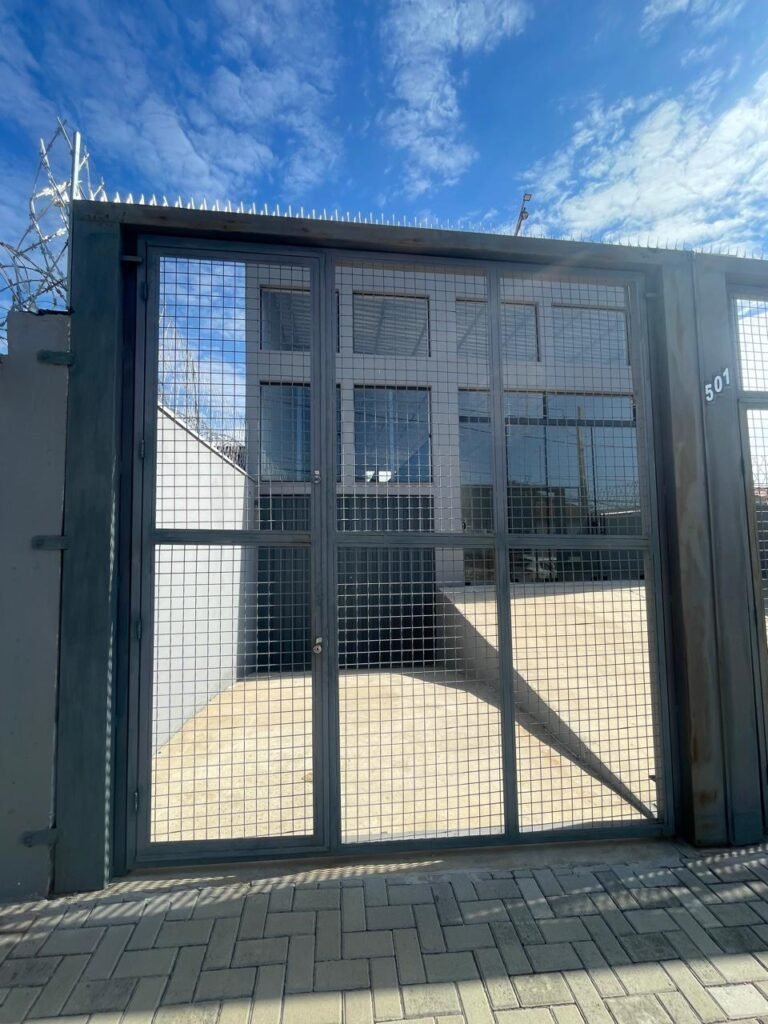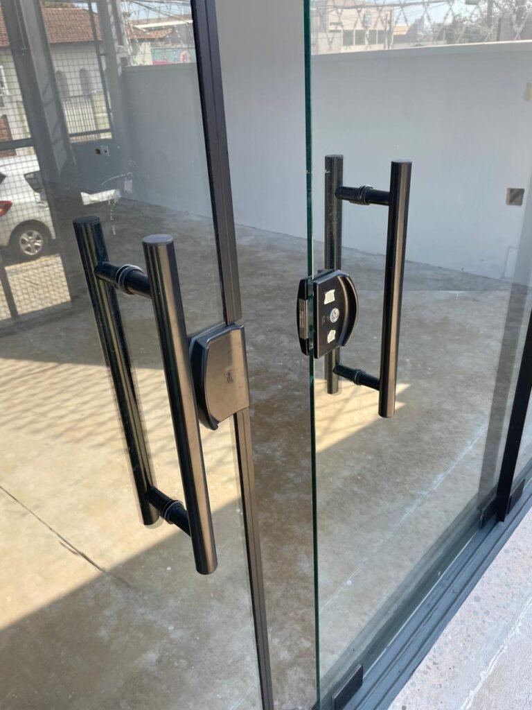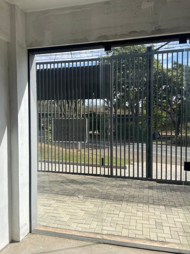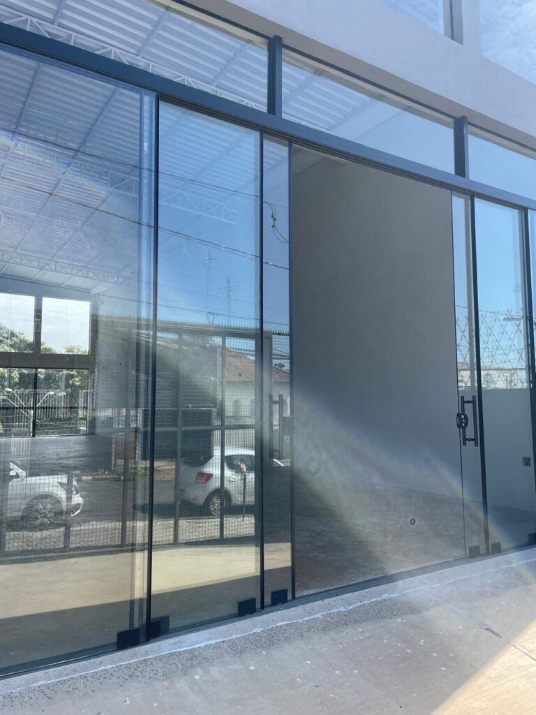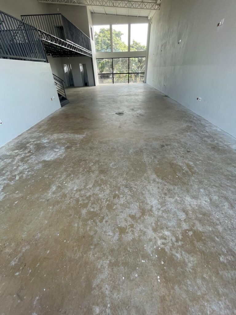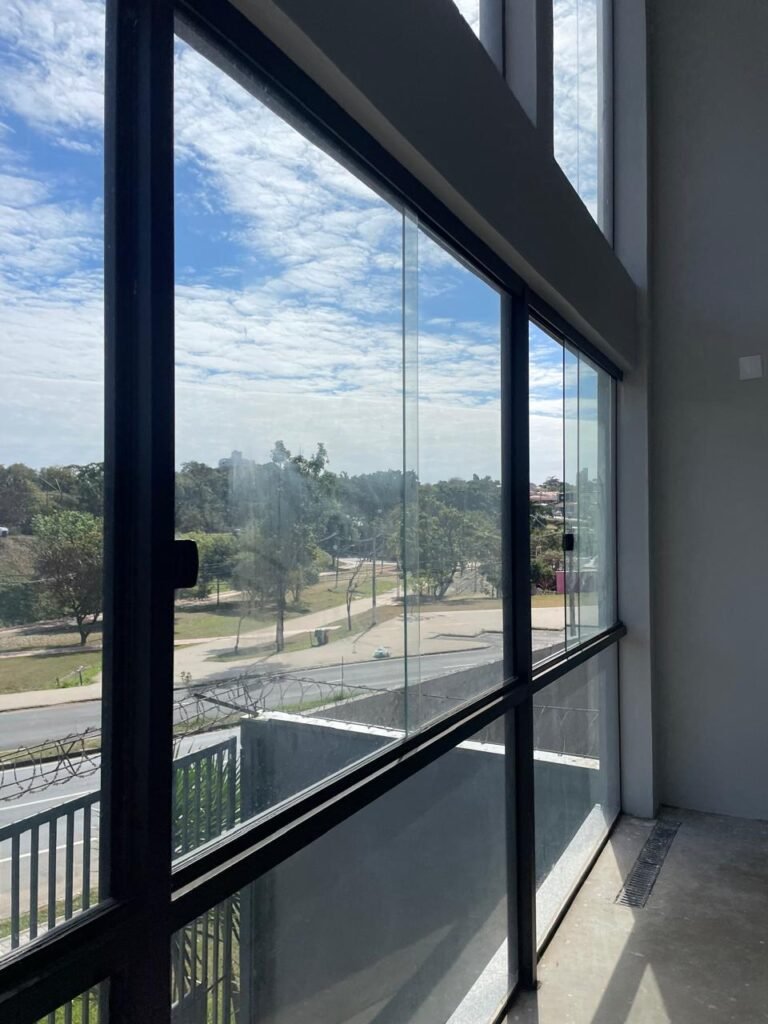 GALPÃO-: 06 Portas deslizantes em vidro liso, transparente, temperado em ordem, 02 kits de puxadores na cor preto em ordem, 04 fechaduras pacres em ordem, marca Hela com chave, 17 vidros fixos, transparentes e temperados em ordem, 05 janelas deslizantes em ordem, ambas com 02 vidros lisos, transparentes e temperados em ordem e também com 01 fechadura em ordem, piso de concreto usinado com desgastes naturais, manchas, rachaduras pela extensão e restante em ordem, 01 ralo grelha de ferro em ordem, paredes com pintura látex nova, na cor branco gelo em ordem, 24 espelhos de luz marca Tramontina em ordem, sendo eles: 01 espelho com 06 interruptores, 13 tomadas duplas (110v/220v) e 09 espelhos cegos. 02 tampas de inspeção de plástico em ordem, 17 pré instalação de espelhos de luz, 06 lâmpadas de led em ordem, telhado revestido de telhas galvanizadas com pintura nova na cor branco em ordem, 01 escada de ferro com pintura nova na cor cinza em ordem, corrimões e guarda-corpos em ordem, com pintura nova na cor cinza em ordem.