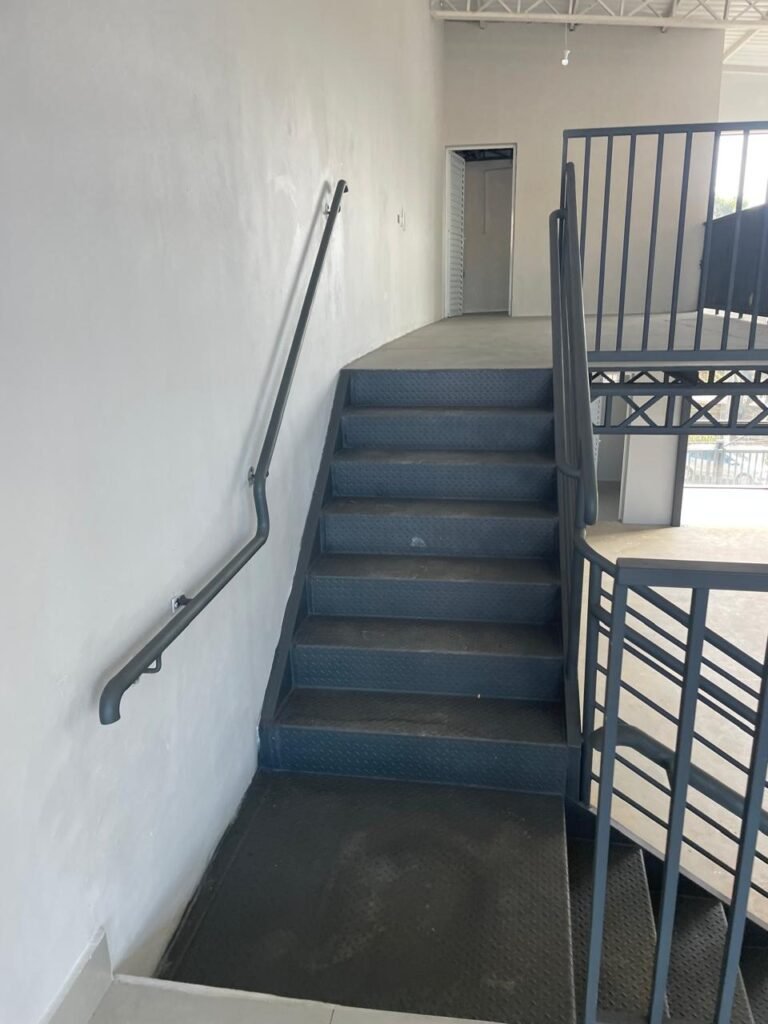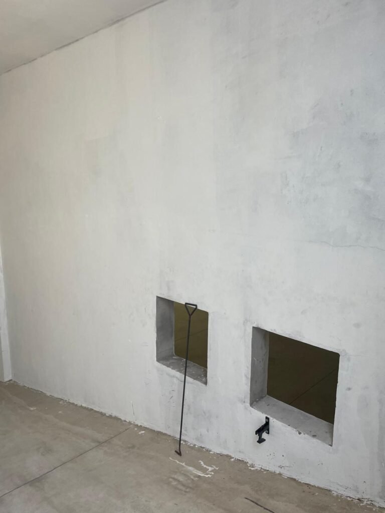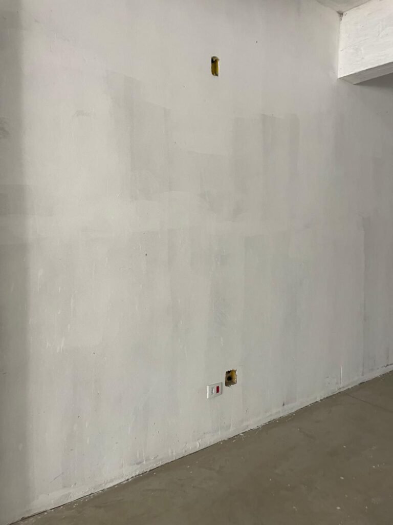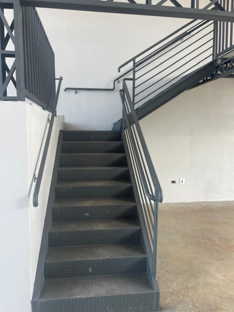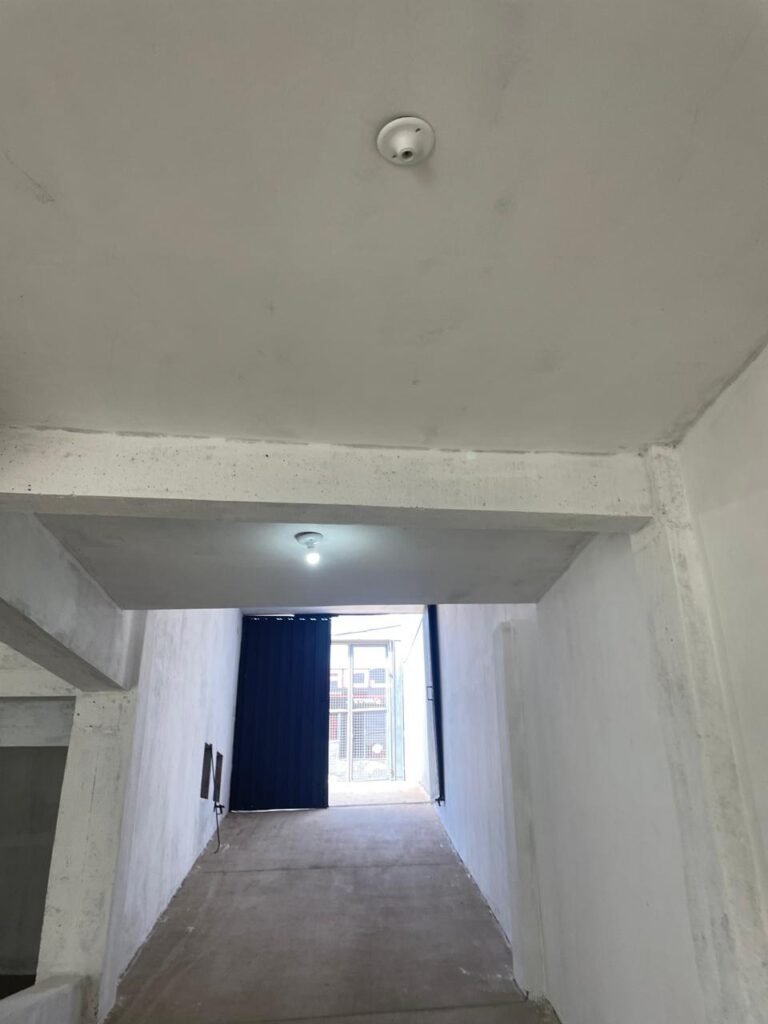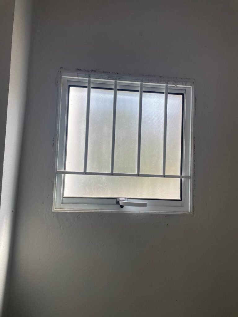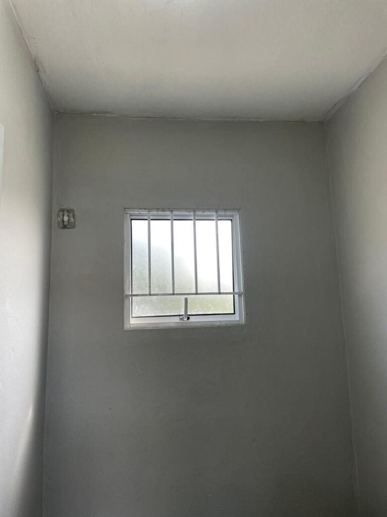 SALA MEZANINO-: 01 Porta de alumínio cor branco em ordem, com maçaneta e fechadura marca Stam em ordem, piso de concreto com pintura na cor cinza em ordem, 01 ralo plástico branco em ordem, 02 espelhos de luz marca Tramontina, sendo eles: 01 espelho com 01 interruptor e 01 espelho com 02 tomadas ( 110v/220v), 01 tampa de plástico de inspeção em ordem, 01 pré instalação de espelho de luz em ordem, paredes com pintura látex nova, na cor cinza em ordem, canos PVC com 01 válvula em ordem, estrutura de ferro em ordem com 01 caixa d’água marca Acqualimp 500l em ordem, 01 lâmpada LED em ordem, 01 janela deslizante em ordem, com 01 fechadura em ordem e 02 folhas de vidro liso, transparente e temperado com manchas de tinta e restante em ordem.