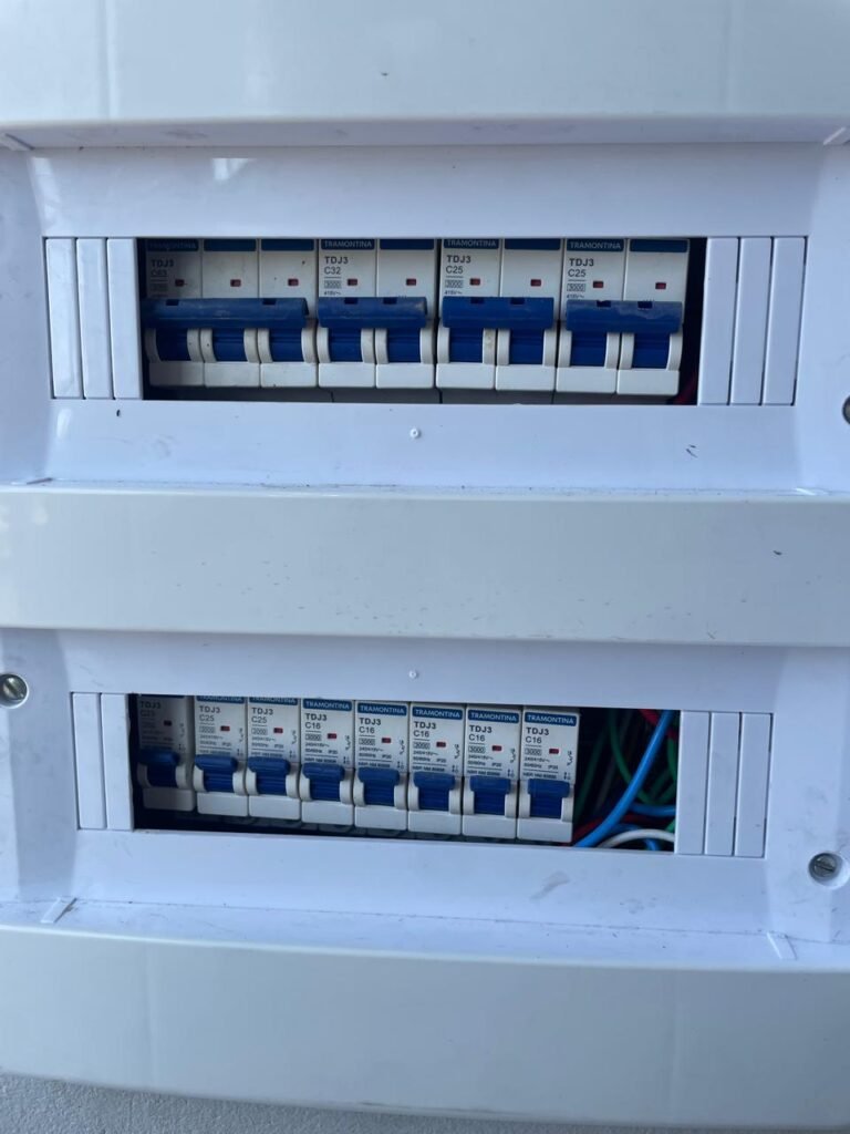 SUBSOLO-: 01 Portão de metalon com pintura nova na cor cinza com desgastes naturais e pigmentos de ferrugem, 01 puxador em ordem, 02 fechaduras ferrolho em ordem, 01 fechadura tetra em ordem e com chave, 02 travas de portão em ordem, piso em concreto usinado com manchas de tinta e restante em ordem, paredes e teto com pintura látex na cor branco, com desgastes naturais, manchas e restante em ordem, 08 espelhos de luz marca Tramontina, sendo eles: 01 espelho com 02 interruptores, 01 espelho com 01 interruptor, 01 espelho com 01 interruptor e com 02 tomadas (110v/220v), 05 espelhos com 02 tomadas (110v/220v), 10 pré instalações de espelhos de luz. 04 lâmpadas de led em ordem, 03 bocais sem lâmpada, 01 bocal com 01 lâmpada LED danificada, 01 válvula de registro em ordem, quadro de distribuição de disjuntores com 02 tampas, marca Lexman em ordem, disjuntores Tramontina e Soprano em ordem, 01 quadro de inspeção marca WEG em ordem, 05 portas de vidro deslizantes em ordem, com esquadrias e trilhos em ordem, com 01 fechadura marca Piller em ordem e com chave, 01 ralo em inox, 01  ralo grelhas de ferro em ordem.