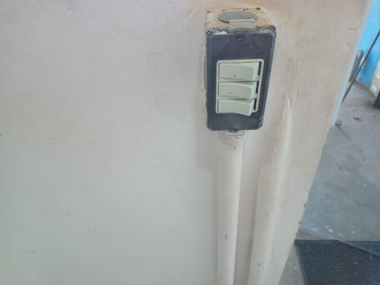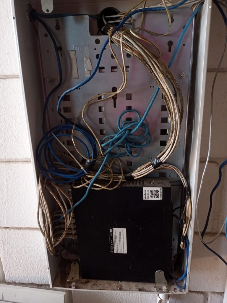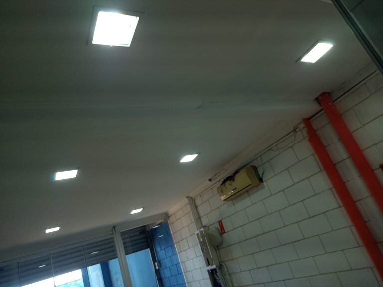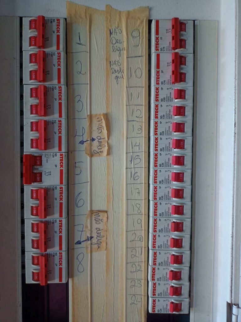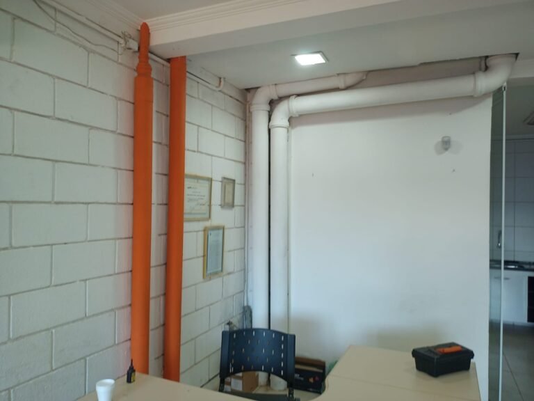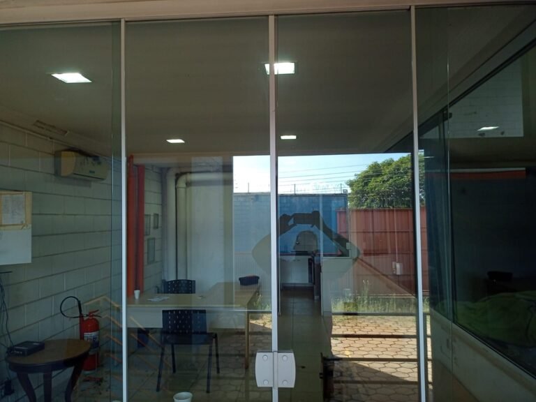 ESCRITÒRIO 01:- Paredes de blocos à vista com pintura na cor branca em ordem, teto de gesso com gola de gesso em ordem, revestimento de massa corrida na cor branca em ordem quadro de energia jamed com Stecck SD80A. 3P, 08 folhas de vidro temperado transparente em ordem, 02 portas de vidros temperado transparente em ordem, 06 luminárias com 12 lâmpadas em ordem, 03 interruptores com 01 espelho em ordem, 02 pontos de tomada com 04 tomadas em ordem, tubulação de cano PVC 150 à vista na parede em ordem.