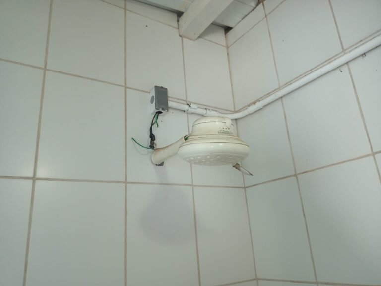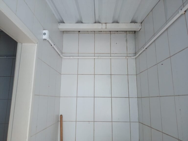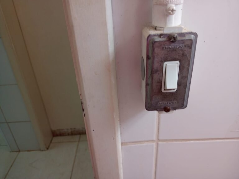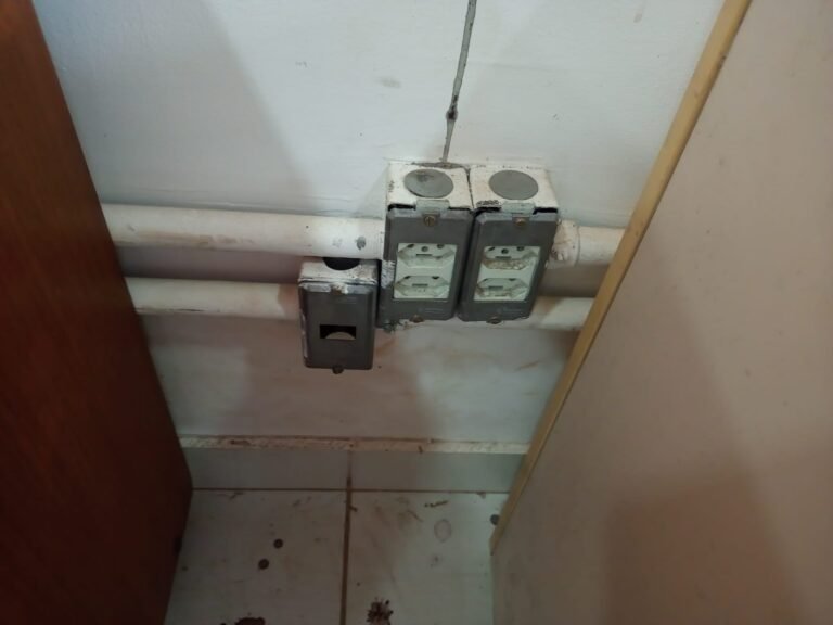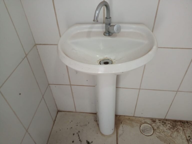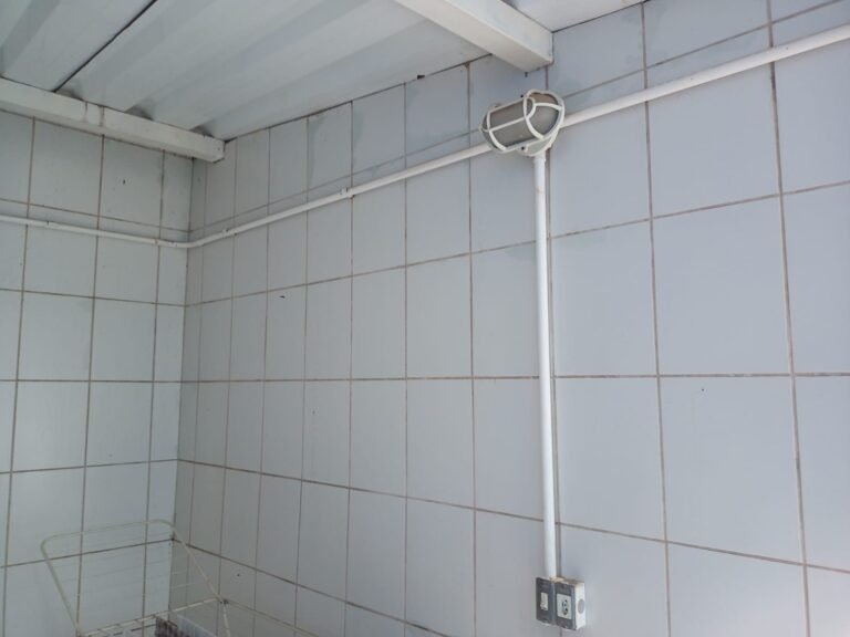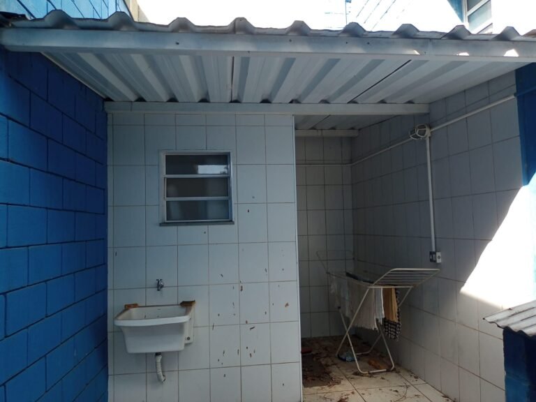 ÁREA DE SERVIÇO:- Telhado com pintura na cor branca em ordem com estrutura metálica em ordem, 01 tanque cor branca incepa em ordem, 01 torneira deca de alumínio, 01 ralo com tampa em ordem, paredes de azulejo na cor branca em ordem, 01 tomada com 01 interruptor em ordem, 01 banheiro com porta de madeira na cor branca em ordem, 01 lavabo com torneira inox em ordem, 02 ralos em ordem, 1 vaso sanitário com caixa acoplada em ordem, 01 chuveiro Lorenzetti em ordem, 01 registro em ordem, 01 vitrô basculante de alumínio com 03 vidro em ordem, 02 tampa de ferro de água fluviais, 01 ar condicionado Electrolux em ordem.