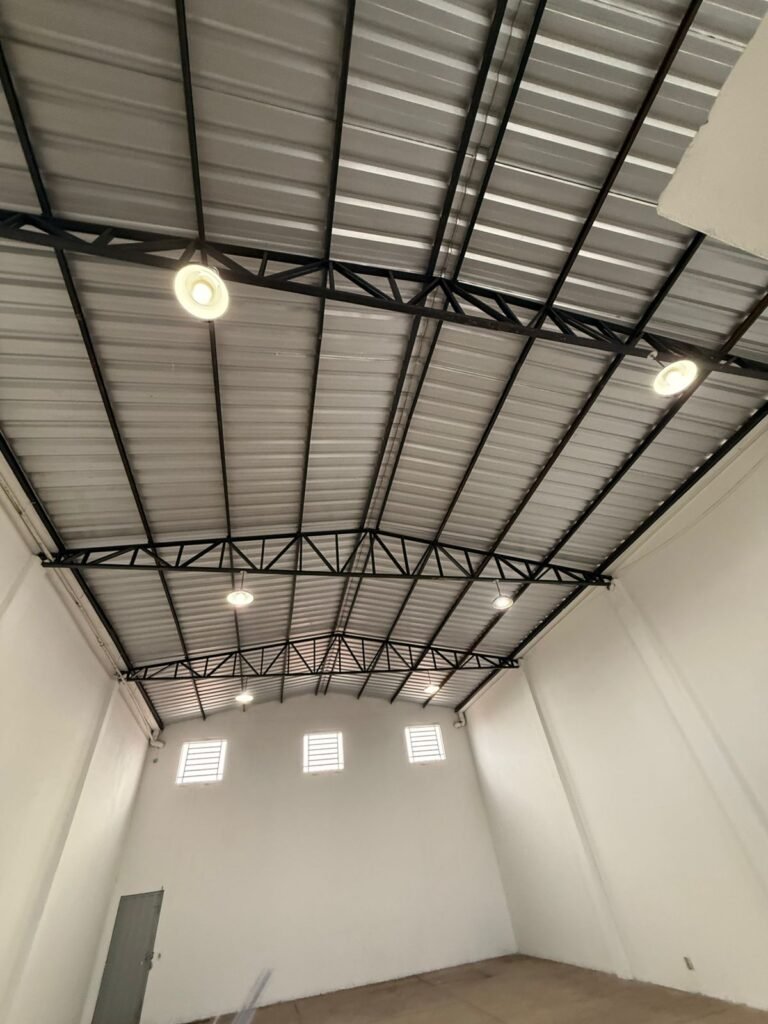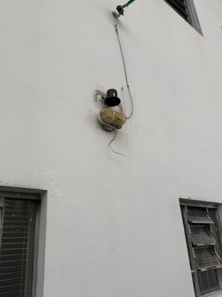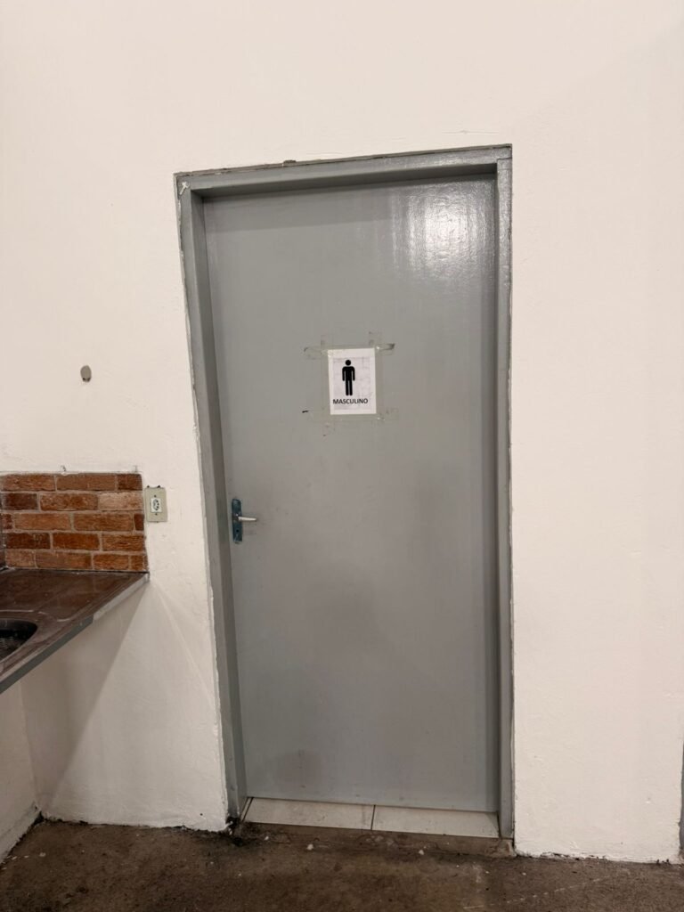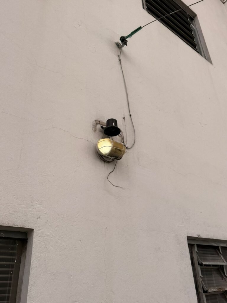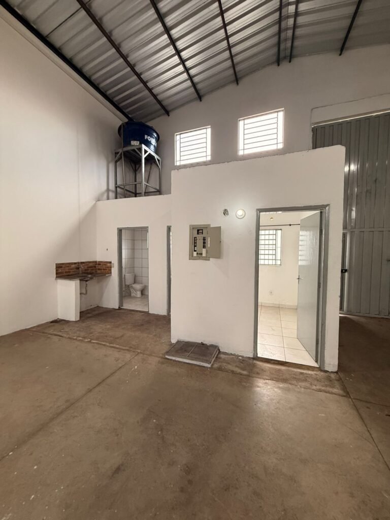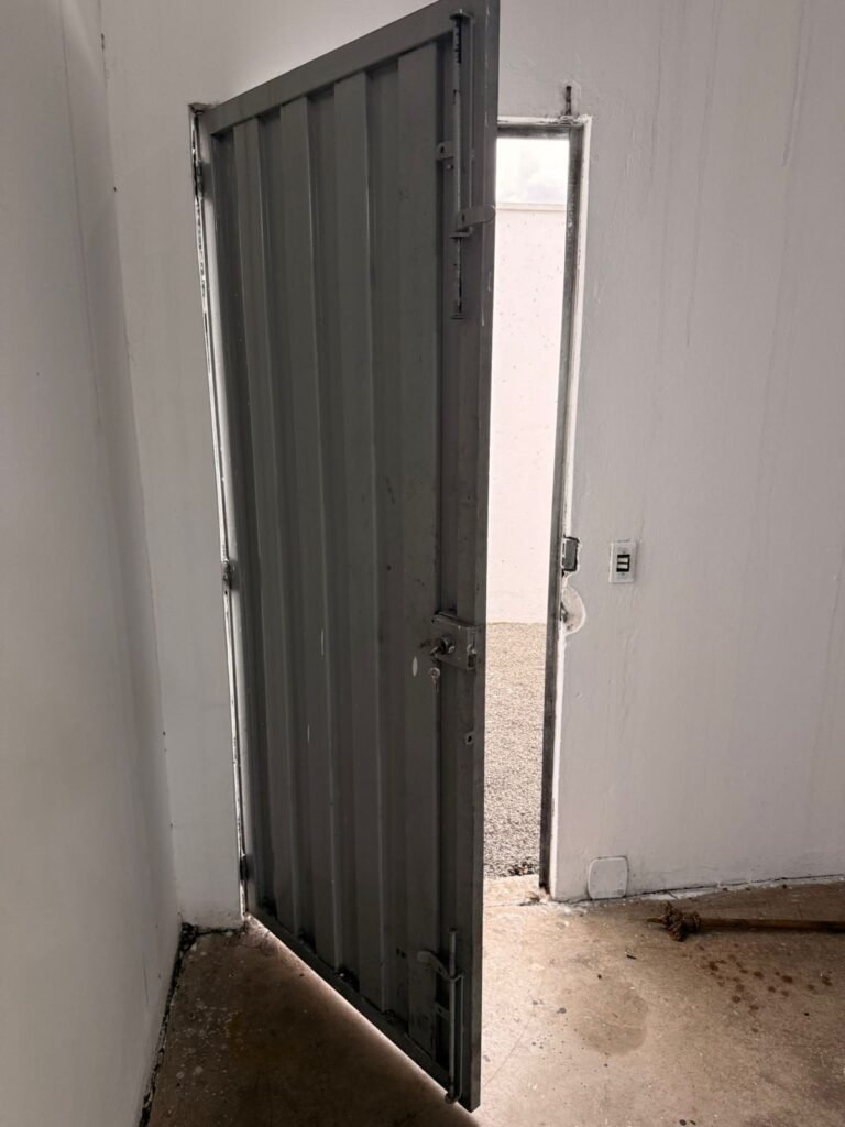 BARRACÃO-: 01 portão de ferro com pintura na cor cinza com desgastes naturais, com 01 porta social embutida, com 01 fechadura Start com chave em ordem, veda Portão em ordem, 03 fechaduras de empurrar, e 01 trinco para cadeado, piso de concreto usinado com manchas pela extensão, paredes com pintura nova na cor branco em ordem com pequenas manchas de infiltração e restante em ordem, 10 espelhos de luz sendo eles : 02 com 02 interruptores, 04 com 02 tomadas (110/220), 01 espelho cego, 01 com 01 tomada e 01 de campainha. 01 tampa de inspeção de elétrica em ordem, 01 caixa de distribuição marca Cemar, com tampa em ordem, disjuntores sendo eles: 01 marca Steck SD-63C70, 07 marca Alumbra 03 C32/2, 01 C32/1, 03 C25/2 e 01 marca Schneider K32A. 01 pia em inox, com 01 torneira em inox em ordem e com 01 sifão sanfonado vazando, telhado de estrutura de ferro com pintura na cor preto em ordem, telhas sanduíche novas e em ordem, 06 luminárias pendentes, 04 com lâmpadas led em ordem e 02 com lâmpadas incandescentes em ordem, 05 vitrôs basculantes com esquadrias de ferro com pintura na cor branco em ordem, fechadura em ordem e com 11 vidros canelados cada, alguns deles com manchas de tinta e restante em ordem, 01 caixa da água Fortlev em ordem, 01 porta social de ferro com pintura nova na cor cinza, com 02 fechadura de empurrar, com 01 fechadura start com chave em ordem, e 01 trinco para cadeado, 01 bocal com 01 lâmpada led em ordem.
