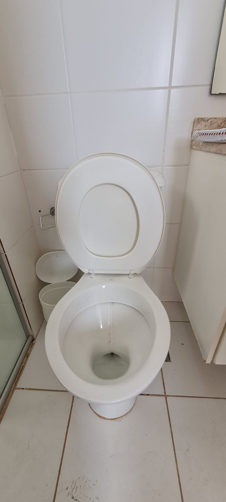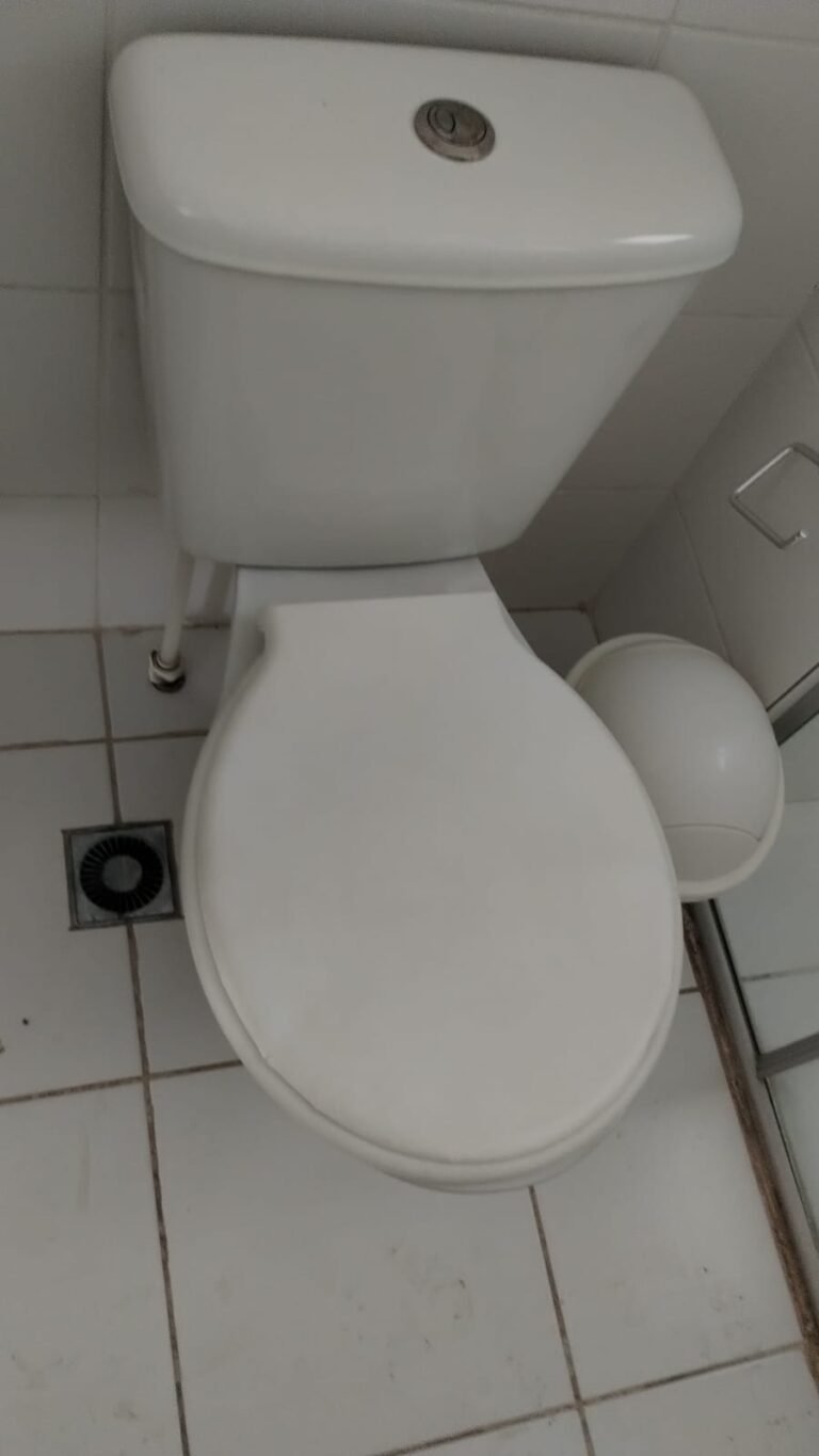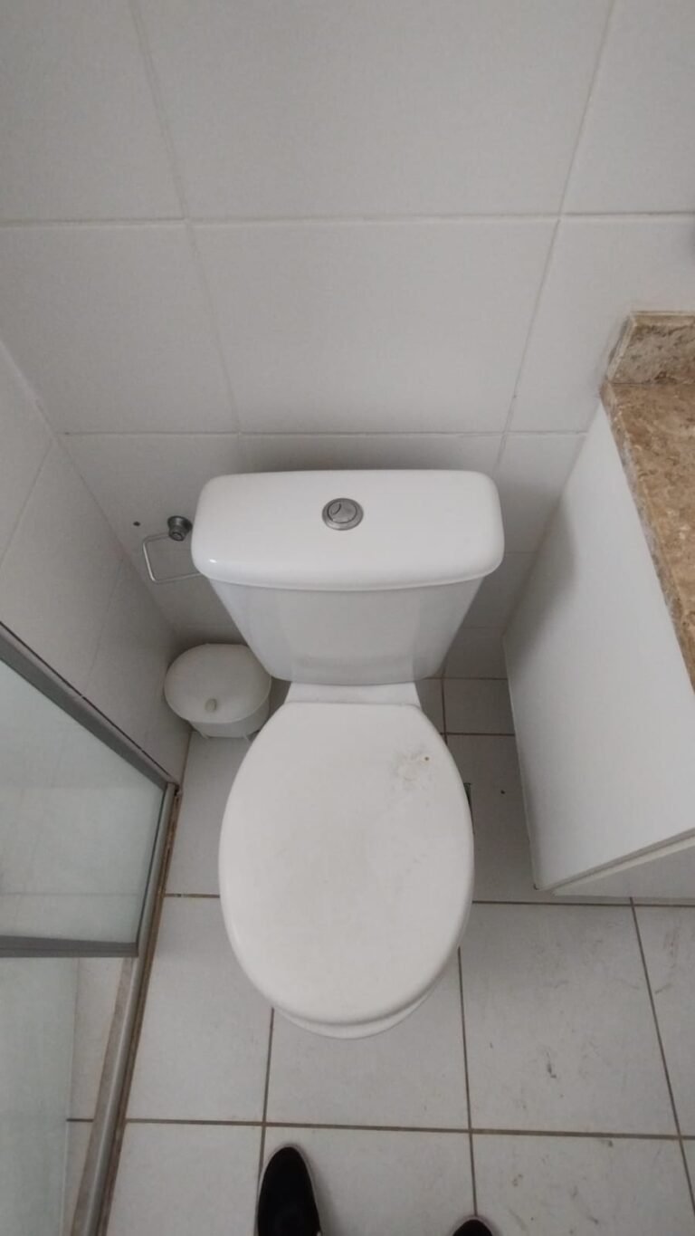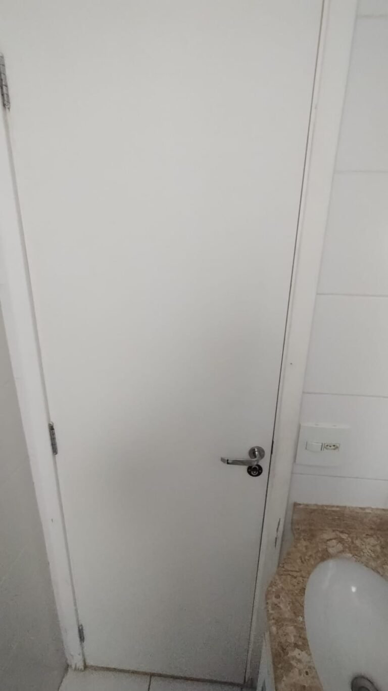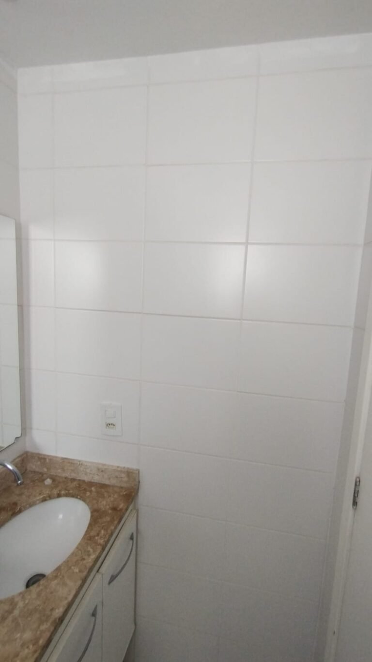 Banheiro Social:- Piso cerâmico na cor branco em ordem, 01 soleira em mármore travertino em ordem, paredes com azulejos ate o teto em ordem, teto com a pintura na cor branco em ordem, 01 porta de madeira com a pintura na cor branca com algumas manchas de sujeira e desgaste o restante em ordem, dobradiças em ordem, maçaneta em ordem, faltando a chave, guarnição em aos os lados a pintura na cor branco em ordem, 01 luminária plafon em ordem, 01 lâmpada de led em ordem, 01 gabinete de pia planejado com manchas de sujeira o restante me ordem, 01 porta em ordem, 01 puxador em ordem, 02 dobradiças pneumáticas em ordem, 01 pia em mármore Travertino com frontão em ordem, uma cuba cerâmica marca Deca em ordem, 01 válvula lavatório rachada o restante em ordem, 01 sifão desentupido em ordem, 01 torneira rosca marca Docol em ordem, 01 porta sabonete em ordem, 03 portas toalhas em ordem, 01 porta papel higiênico em ordem, 01 vaso sanitário cerâmica Deca com caixa acoplada em ordem, 01 kit tampa de vaso em ordem, 01 lixinho de banheiro com tampa em ordem, 01 chuveiro marca Deca em ordem, 04 registros Docol em ordem, 02 ralos desentupido em ordem, 01 Box blindex de abrir em ordem, 01 espelho quadrado com a lateral quebrada o restante em ordem, 01 vitrô basculante em alumínio escovado com vidro, pintura eletrostática na cor branco em ordem, sem o puxador o restante em ordem, 01 interruptor duplo com um modulo de luz e uma tomada com espelho em ordem.
