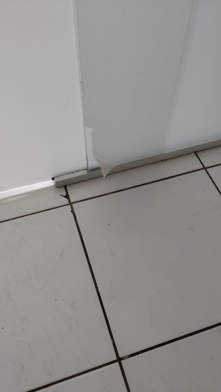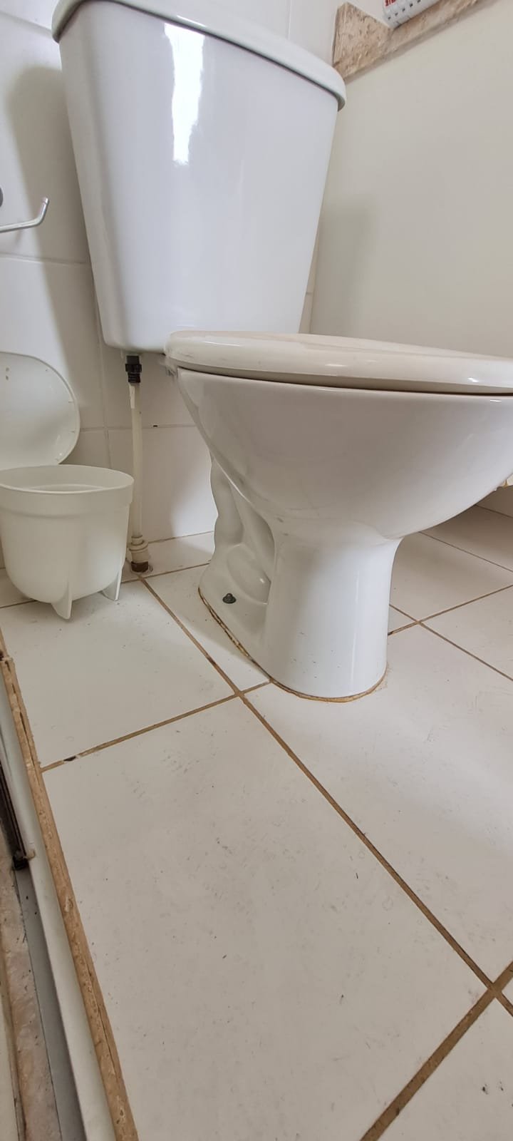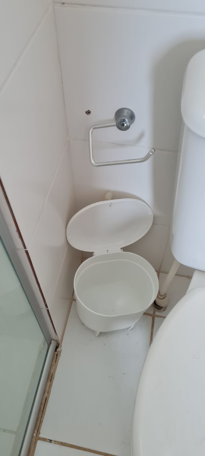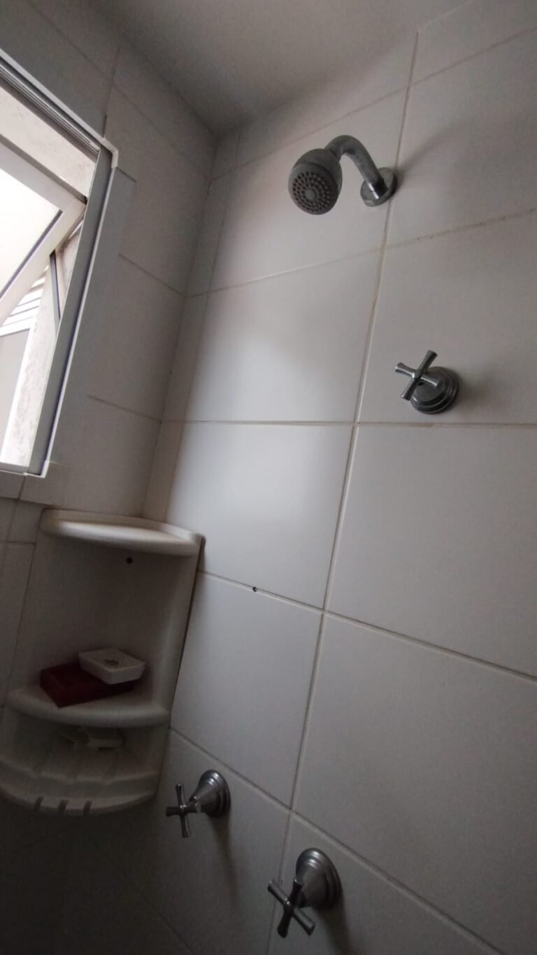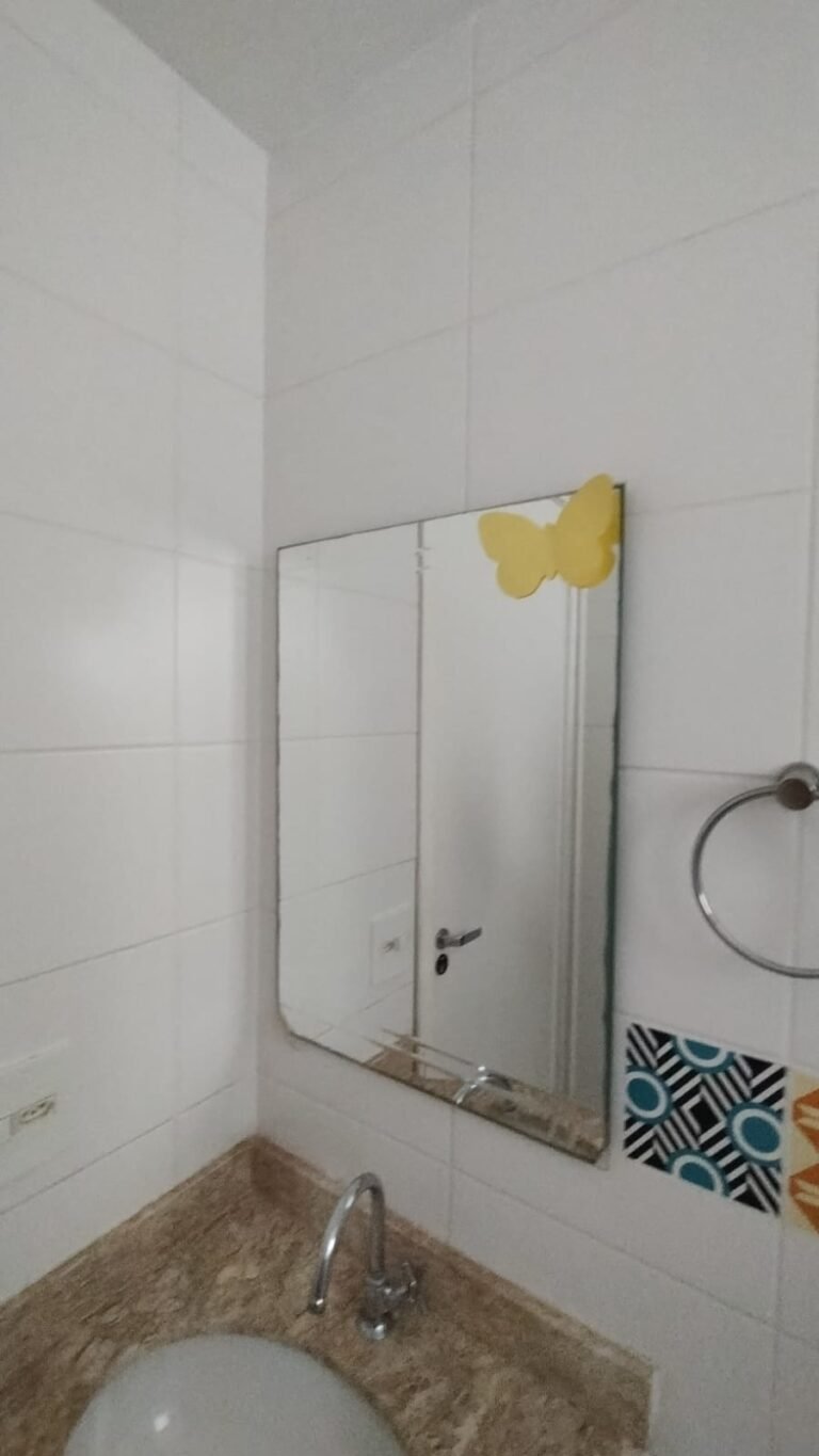 Banheiro Social:- Piso cerâmico na cor branco em ordem, 01 soleira em mármore travertino em ordem, paredes com azulejos ate o teto em ordem, teto com a pintura na cor branco em ordem, 01 porta de madeira com a pintura na cor branca com algumas manchas de sujeira e desgaste o restante em ordem, dobradiças em ordem, maçaneta em ordem, faltando a chave, guarnição em aos os lados a pintura na cor branco em ordem, 01 luminária plafon em ordem, 01 lâmpada de led em ordem, 01 gabinete de pia planejado com manchas de sujeira o restante me ordem, 01 porta em ordem, 01 puxador em ordem, 02 dobradiças pneumáticas em ordem, 01 pia em mármore Travertino com frontão em ordem, uma cuba cerâmica marca Deca em ordem, 01 válvula lavatório rachada o restante em ordem, 01 sifão desentupido em ordem, 01 torneira rosca marca Docol em ordem, 01 porta sabonete em ordem, 03 portas toalhas em ordem, 01 porta papel higiênico em ordem, 01 vaso sanitário cerâmica Deca com caixa acoplada em ordem, 01 kit tampa de vaso em ordem, 01 lixinho de banheiro com tampa em ordem, 01 chuveiro marca Deca em ordem, 04 registros Docol em ordem, 02 ralos desentupido em ordem, 01 Box blindex de abrir em ordem, 01 espelho quadrado com a lateral quebrada o restante em ordem, 01 vitrô basculante em alumínio escovado com vidro, pintura eletrostática na cor branco em ordem, sem o puxador o restante em ordem, 01 interruptor duplo com um modulo de luz e uma tomada com espelho em ordem.
