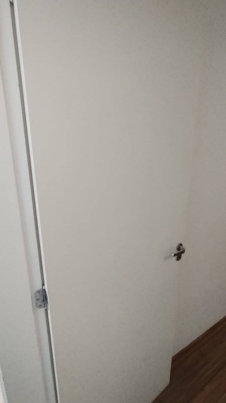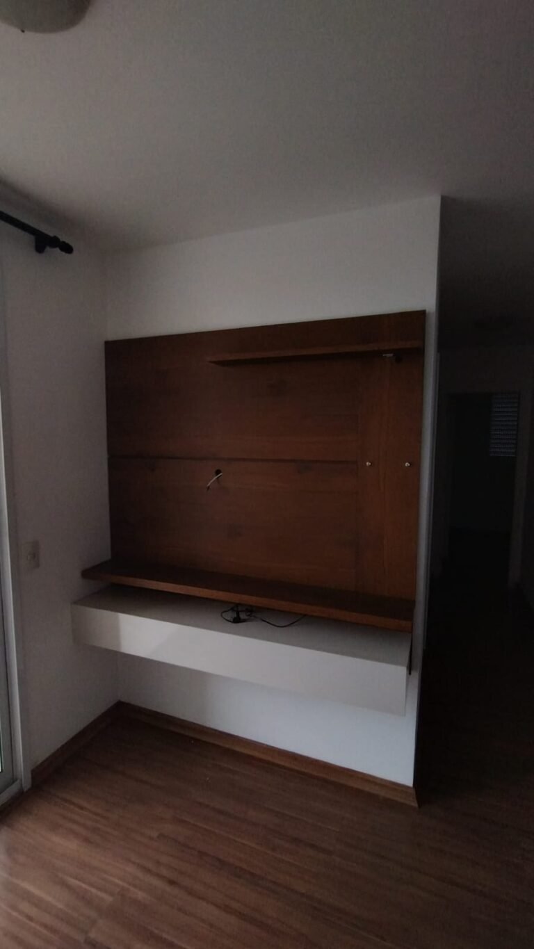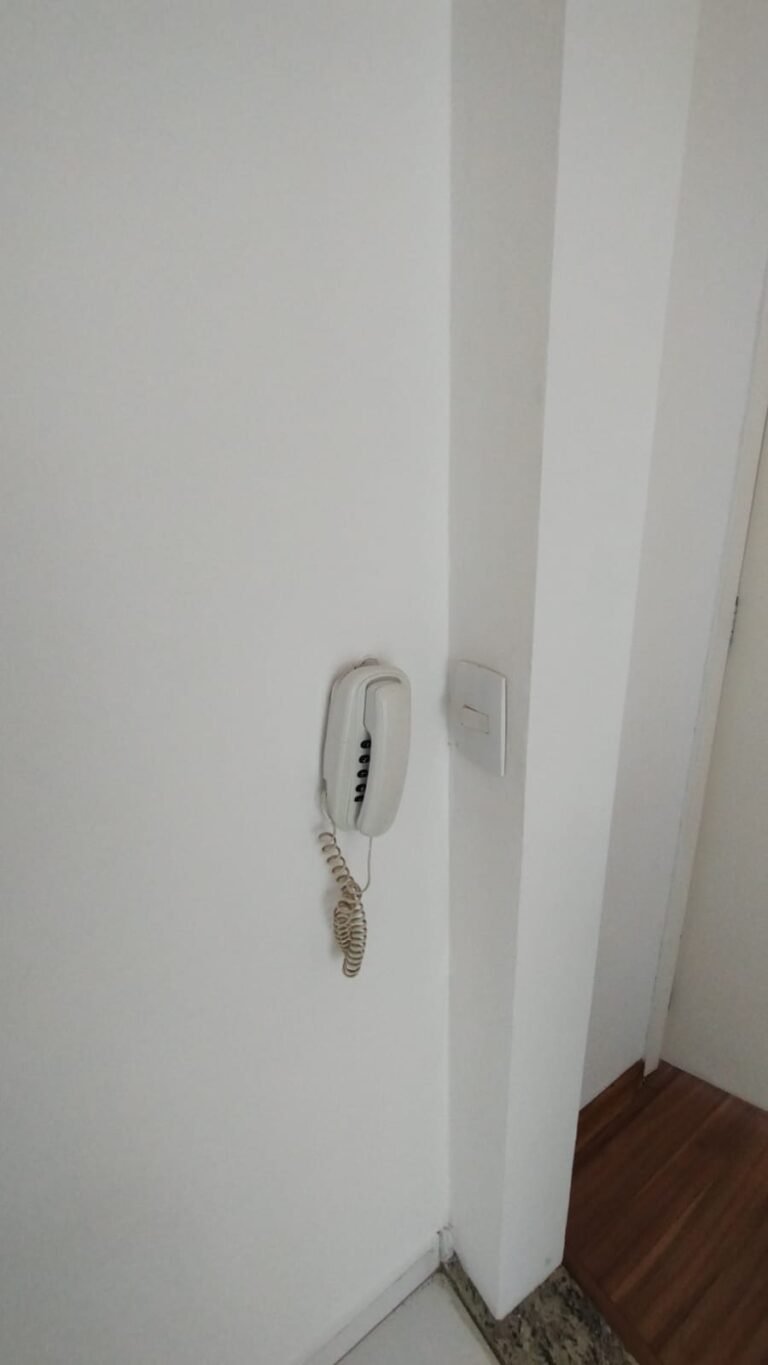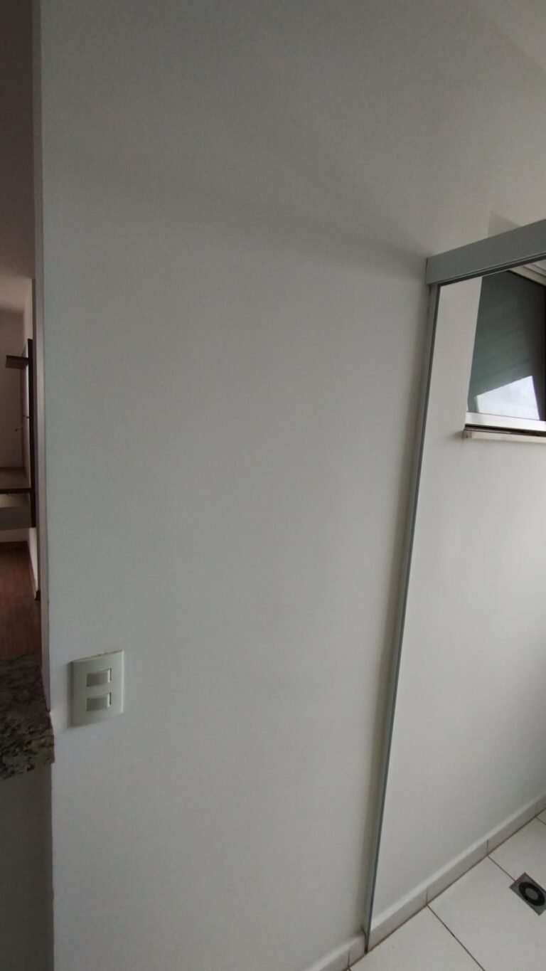 Sala:- Porta de madeira com a pintura na cor branco com prego na parte superior da porta restante em ordem, dobradiças em ordem, fechadura em ordem, chaves em ordem, guarnição em ambos os lados com a pintura na cor branco em ordem, paredes com a pintura na cor branco em ordem, 01 parede contendo papel de parede com a lateral lascada e parte inferior faltando um pedaço restante em ordem, teto com a pintura na cor branco em ordem, piso laminado de madeira em ordem, rodapés laminados de madeira em ordem, 01 plafon em ordem, 01 lâmpada de led em ordem, 01 plafon sem a tampa de vidro contendo 01 lâmpada de led o restante em ordem, 01 interfone em ordem, 01 campainha em ordem, 01 interruptor com dois módulos de luz com espelho em ordem, 01 interruptor de luz com três módulos de luz com espelho em ordem, 01 tomada com espelho em ordem, 01 interruptor com modulo de saída para cabo com espelho em ordem, 01 tomada dupla com dois módulos de energia com espelho em ordem, um interruptor com um modulo para cabo e um cego com espelho em ordem, 01 interruptor para sacada com modulo de luz com espelho em ordem, 01 varão para cortina na cor mogno em ordem, 01 porta chaves em ordem, 01 rack de madeira com uma gaveta na cor laca com alguns lascos o restante em ordem, contendo duas dobradiças fixas em ordem, 01 pistão pneumático em ordem.