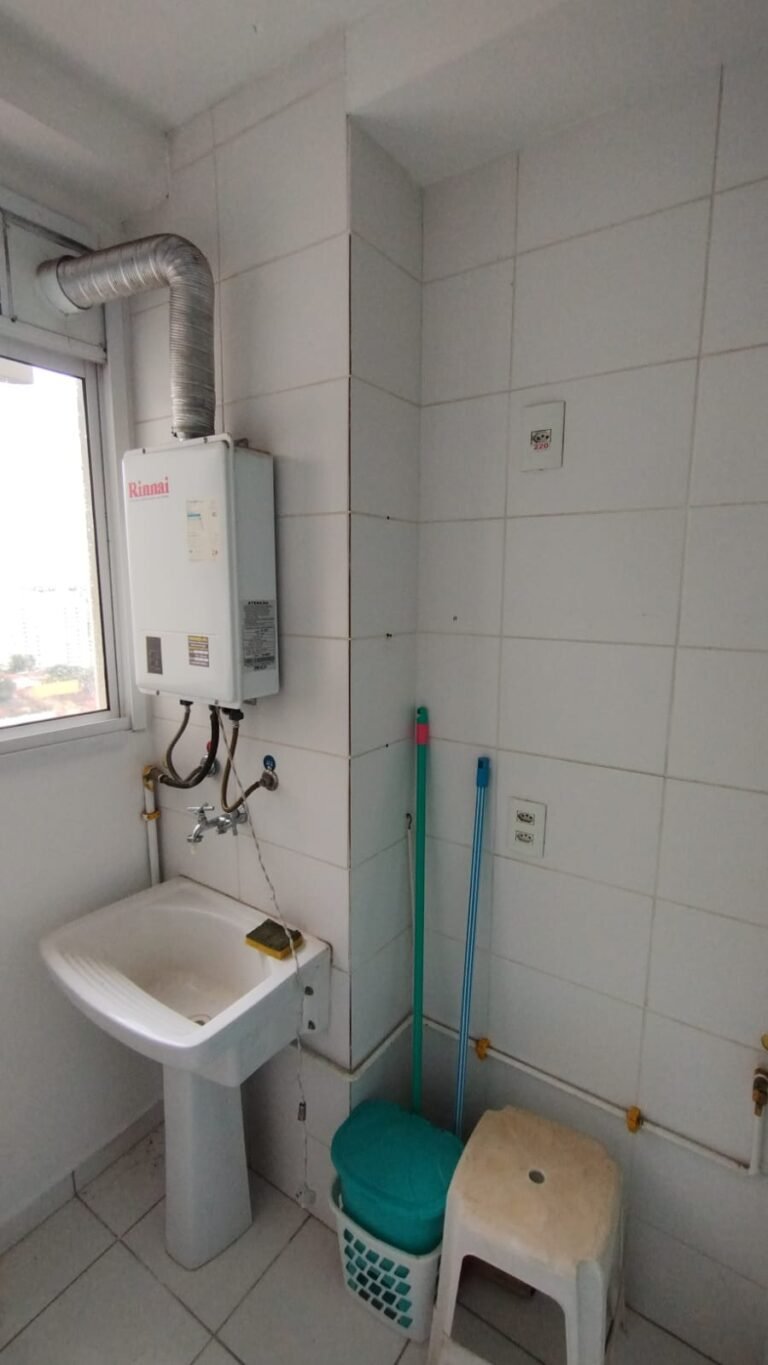 Lavanderia:- Piso cerâmico na cor branco contendo 05 peças com ferrugem, 01 peça trincada o restante me ordem, 01 porta blindex contendo duas folhas sendo uma fixa e outra de correr com insulfilme soltando na parte inferior o restante em ordem, 01 parede com azulejo ate o teto em ordem, paredes com a pintura na cor branco em ordem, teto com a pintura na cor branco em ordem, 01 luminária plafon em ordem, 01 lâmpadas de led em ordem, 01 tanque cerâmico com coluna marca Deca em ordem, 01 torneira de rosca dupla tanque e maquina e ordem, 01 aquecedor marca Rinnai em ordem, 01 mangueira de gás encanado em ordem, 01 janela de correr em alumínio escovado com a pintura eletrostática na cor branco em ordem, contendo duas folhas de vidro de correr em ordem.