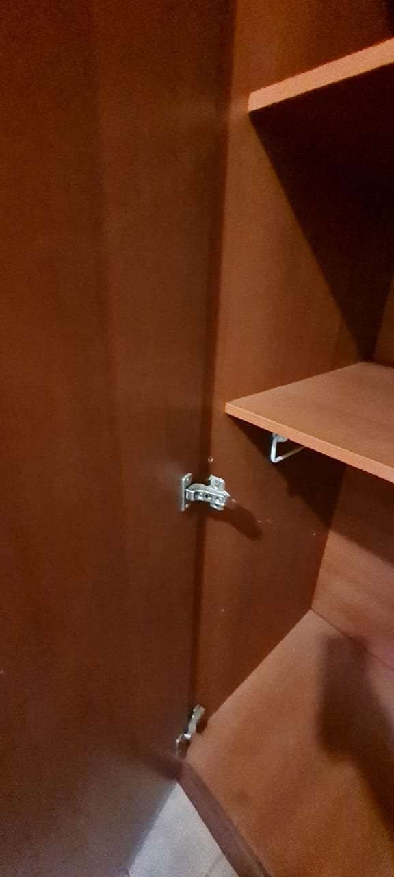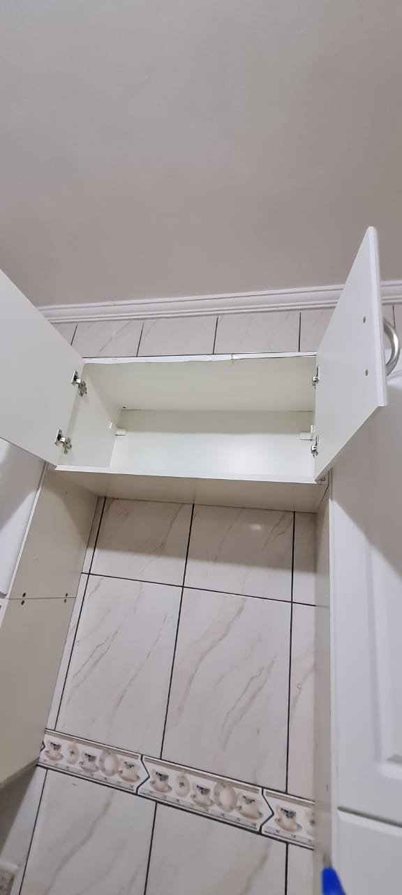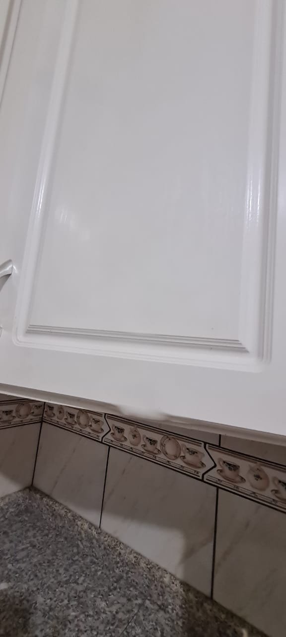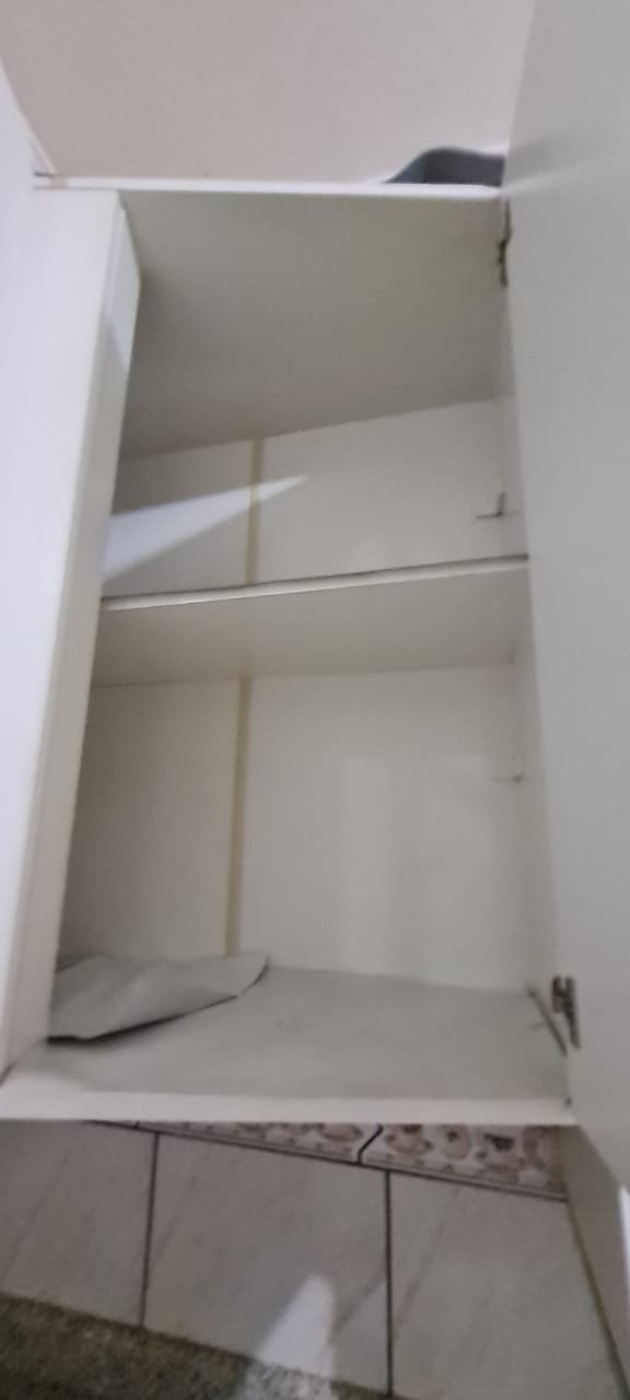 Cozinha:- Fechadura porta quebrada sem miolo da parte de dentro, maçaneta solta, sem a chave da porta, teto sujo com manchas falta pintura, 02 porta do armário descascando, armário sujo, lâmpada da cozinha queimada.
