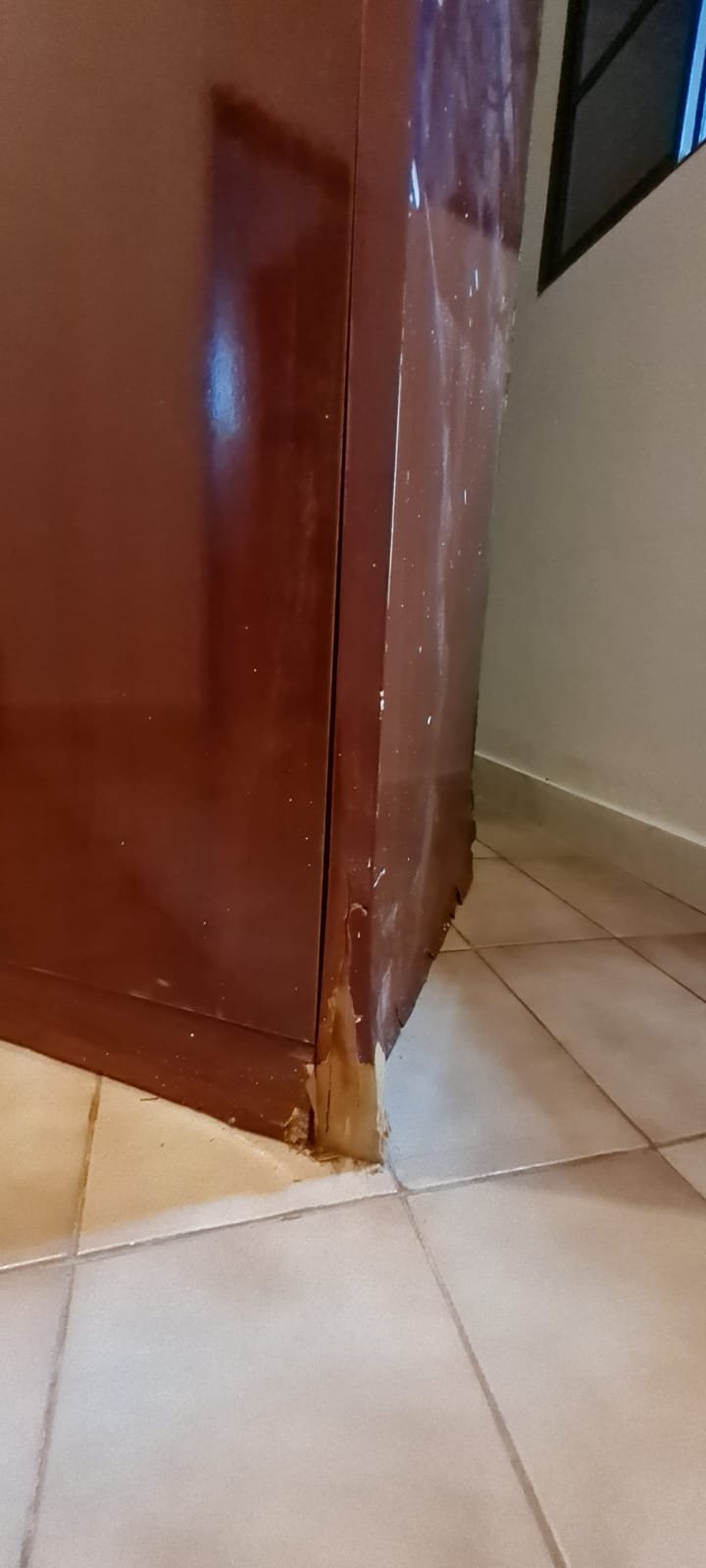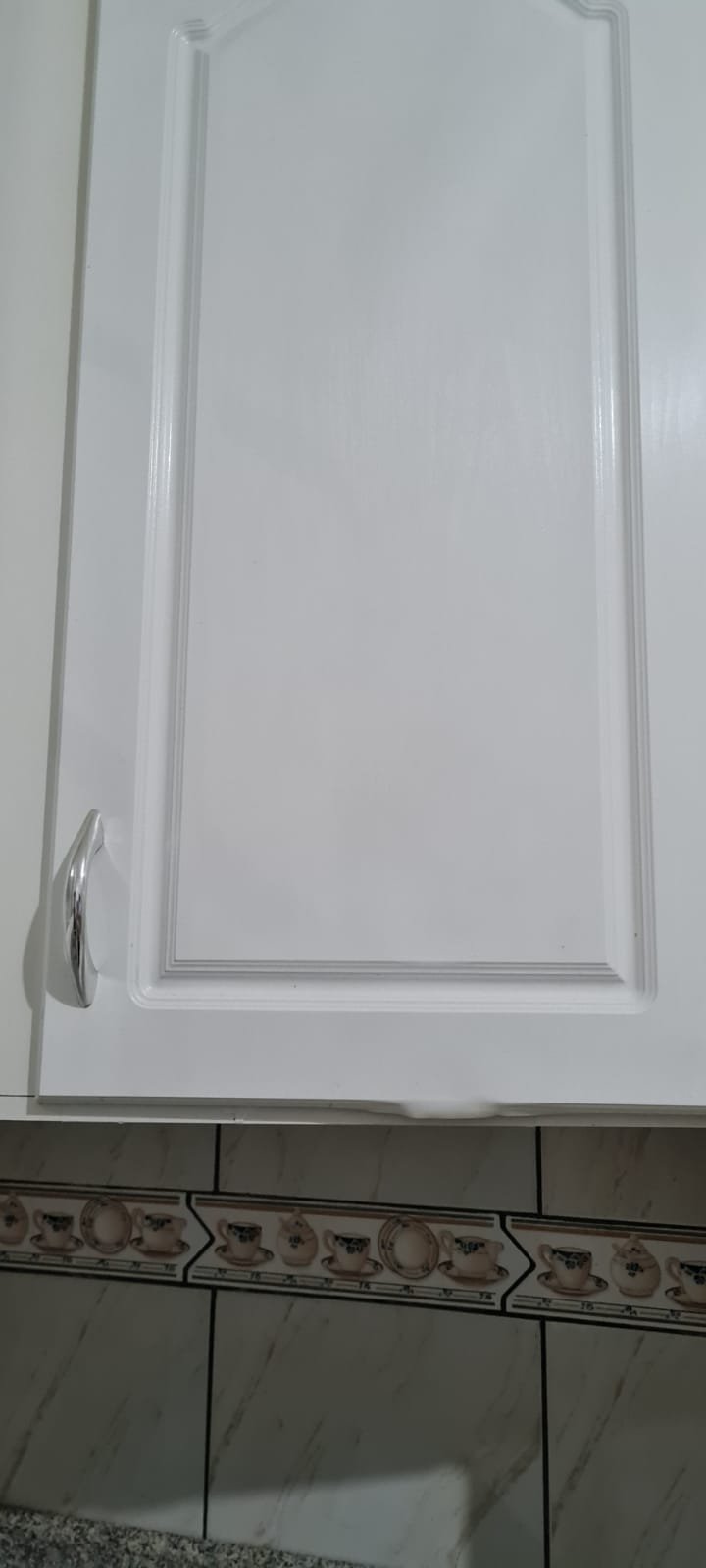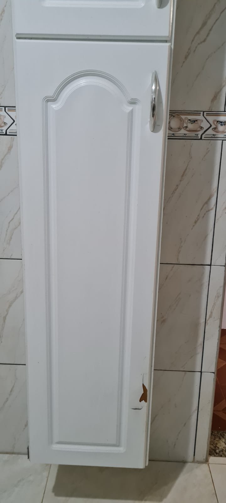 Cozinha:- Fechadura porta quebrada sem miolo da parte de dentro, maçaneta solta, sem a chave da porta, teto sujo com manchas falta pintura, 02 porta do armário descascando, armário sujo, lâmpada da cozinha queimada.