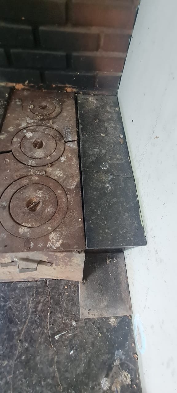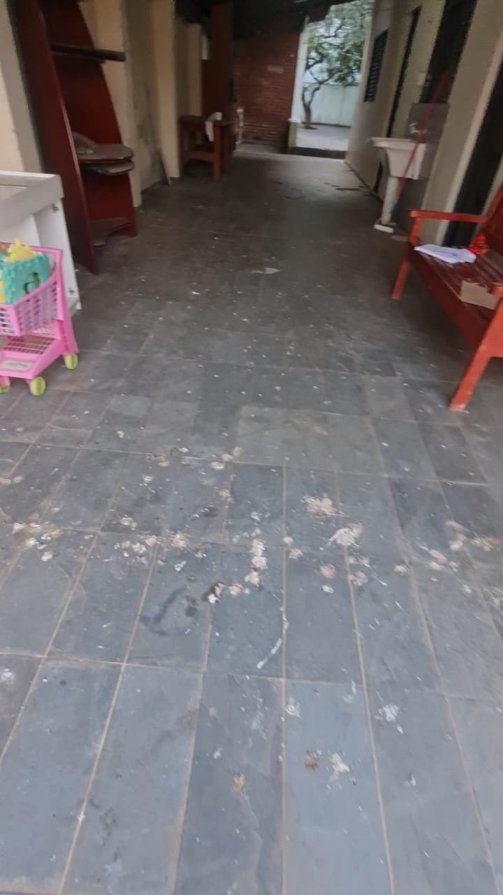 Fachada:- Cadeado do portão social sem a Chave, pedras Miracema da escada com mancha,