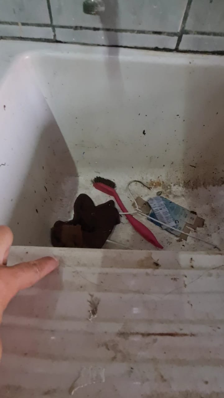 A casa encontra-se extremamanete suja, com resíduos de lixo de banheiro, cabelos, sabonetes, desacordo com a vistoria de entrada.