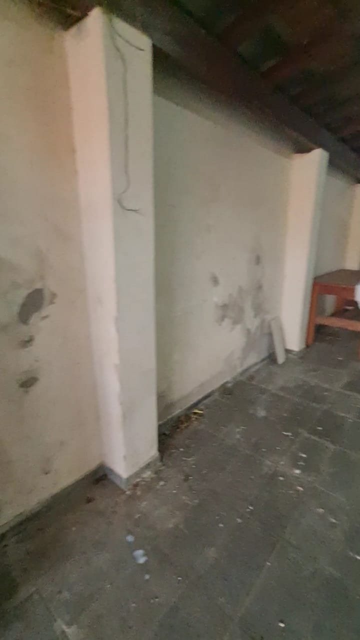 Edícula:- Paredes sujas sem pintura, ambiente sujo, 01 torneira de rosca com reparo quebrado, porta sanfonada quebrada, vaso sem a tampa, curva do chuveiro trincada, chuveiro vasando, livros e caixas espalhados, 01 botijão de gás, escada de alumínio, faltando 01 espelho de luz, geladeira.