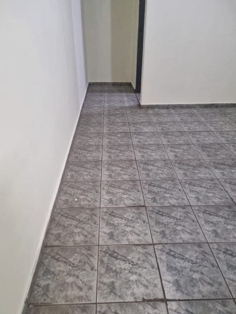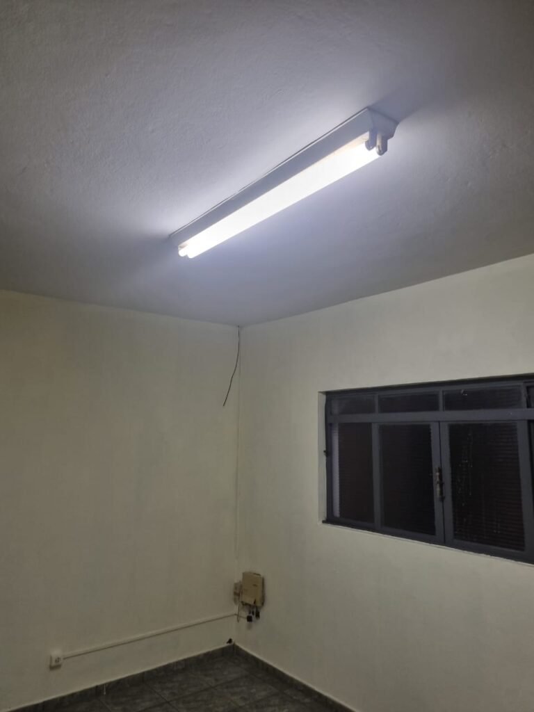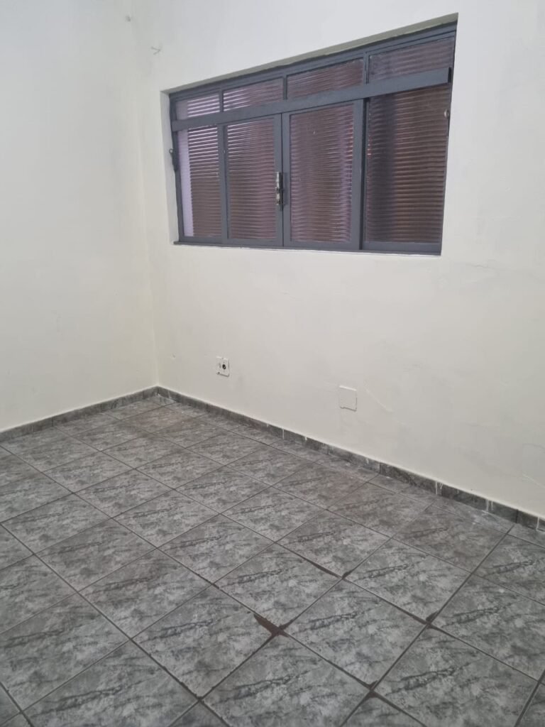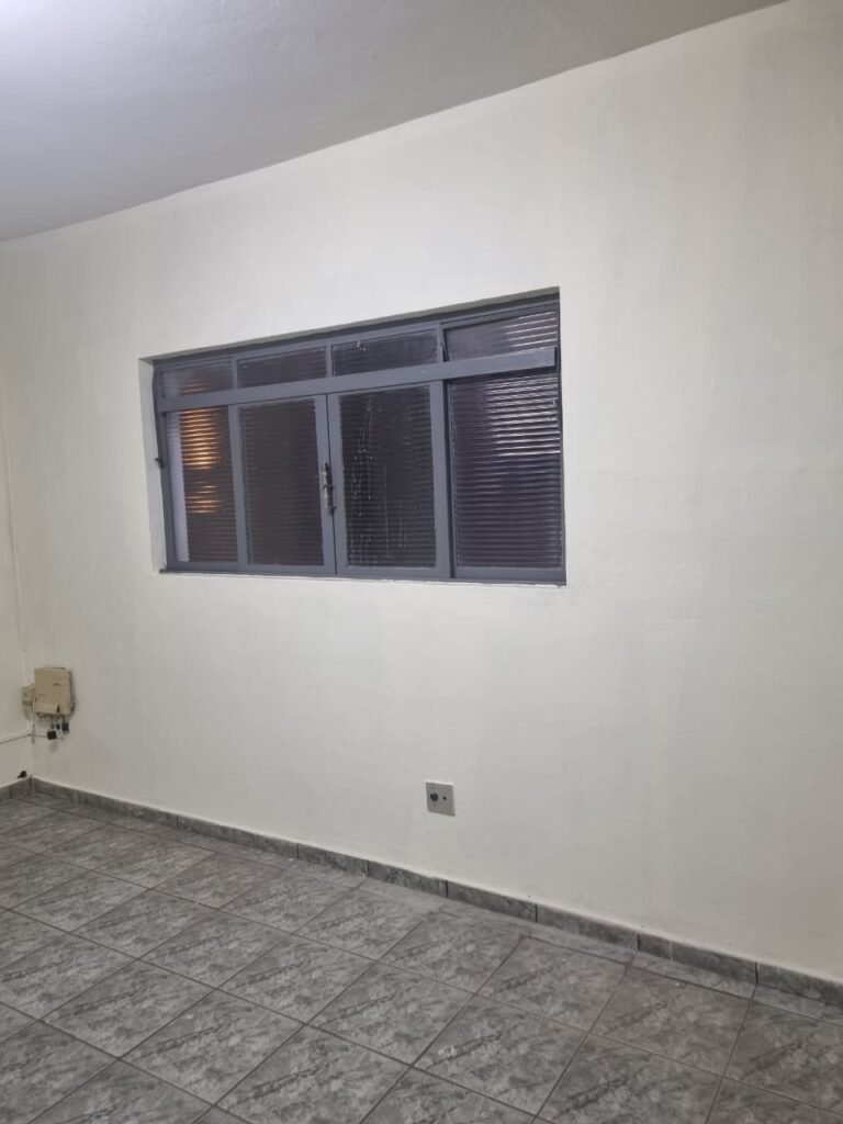 SALA 01:- Piso cerâmico na cor cinza em ordem, paredes com pintura látex nova na cor creme em ordem, teto com pintura látex nova na cor branco neve nova em ordem, 01 luminária dupla com 02 lâmpadas fluorescentes em ordem, 05 tomadas, 01 interruptor em ordem, vitrô de correr com pintura nova na cor cinza em ordem, 08 vidros canelados em ordem, 01 vidro blindex fumê em ordem, divisória de concreto sem porta somente batente de madeira na cor cinza em ordem, porta de entrada amassada e com pintura nova na cor cinza em ordem.