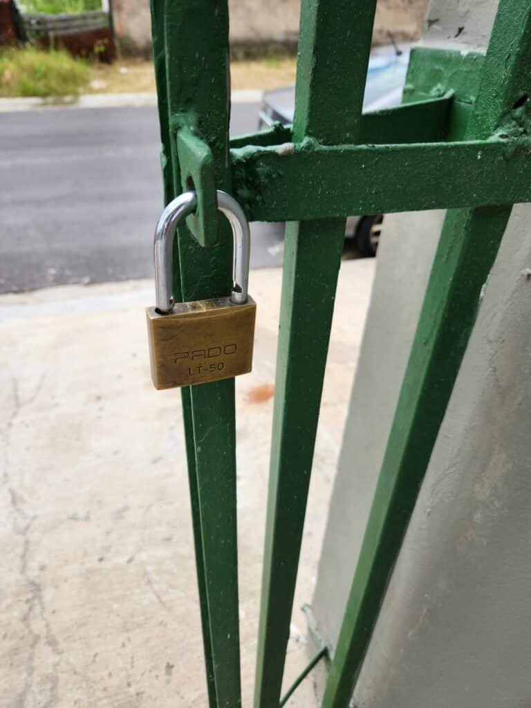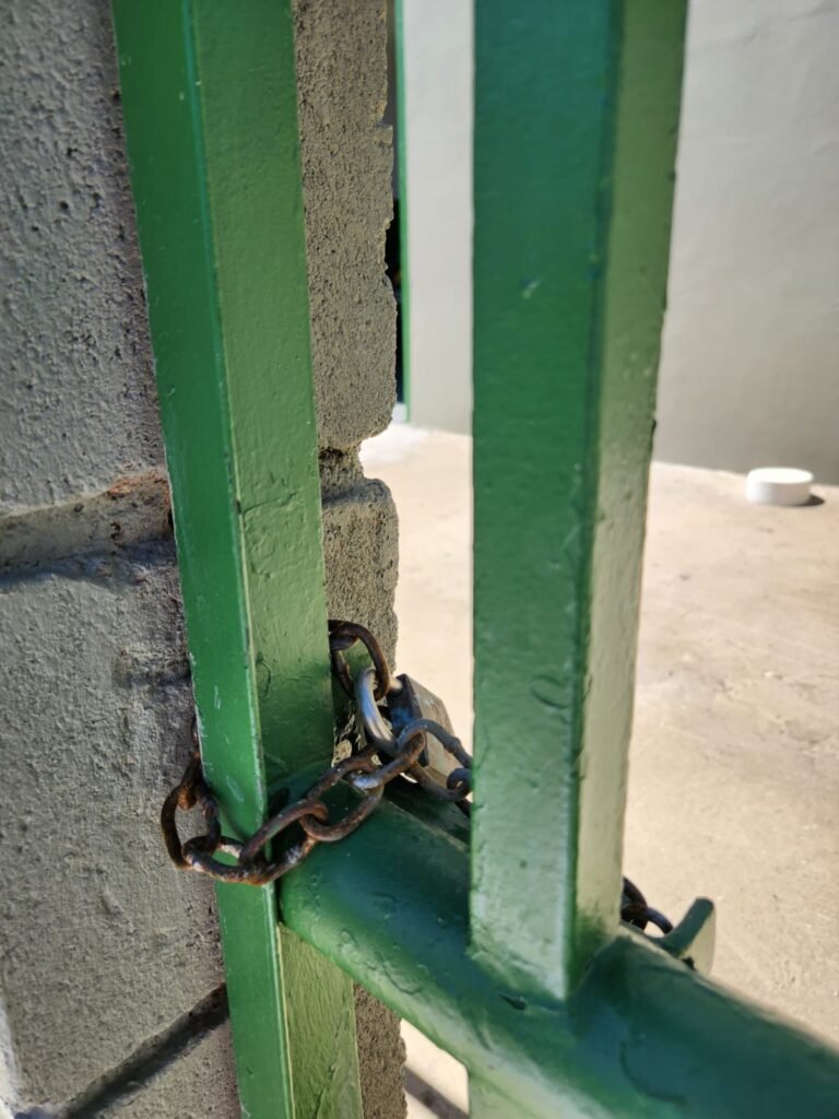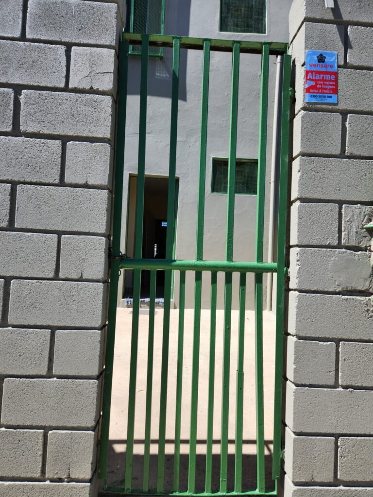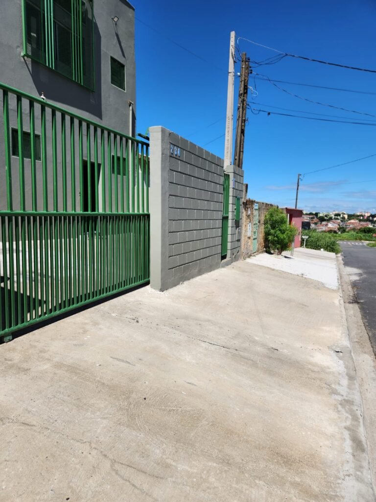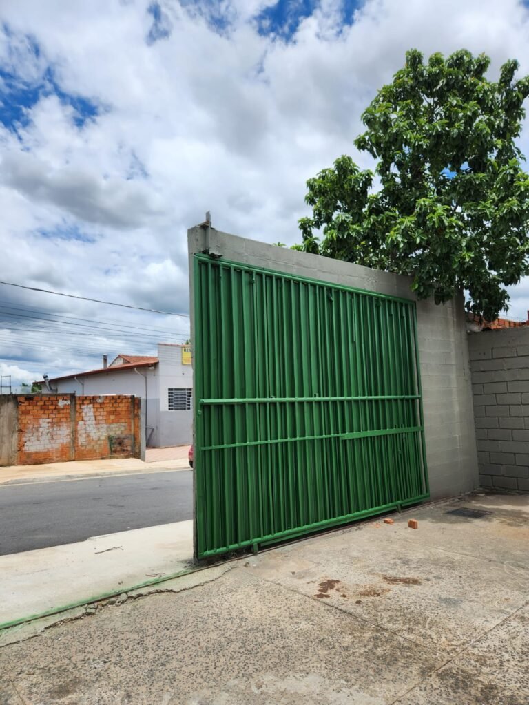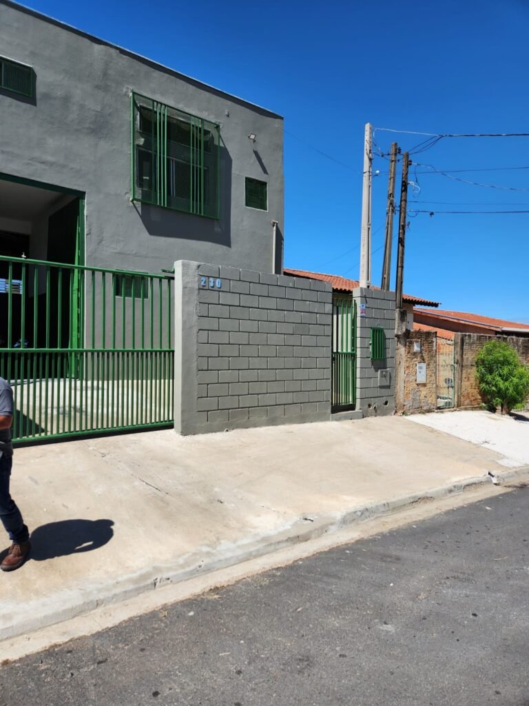 FACHADA:- Calçada piso concreto desempenado sem pintura com algumas manchas em ordem, muros com blocos aparente e pintura nova em tinta piso na cor concreto  em ordem, portão de ferro deslizante com pintura nova na cor verde  em ordem, 01 cadeado Pado e 02 chaves em ordem, travas e roldanas em ordem, número 230 fixado no muro em ordem, portão social de ferro com pintura nova na cor verde em ordem, com corrente e cadeado Pado e 02 chaves em ordem, poste padrão CPFL e relógio medidor em ordem,  caixa padrão SANASA e medidor em ordem, 01 torneira de jardim em ordem, 01 jardineira sem plantas, 01 ponto para tomada, 05 vitrôs com grade com pintura nova na cor verde, porta de entrada de ferro com pintura nova na cor verde em ordem, fechadura e maçanetas em ordem,  chave tetra em ordem, portão de ferro de 02 abas com pintura na cor verde em ordem, 02 cadeados e chaves em ordem  travas e dobradiças em ordem, 02 refletores de led novos em ordem.