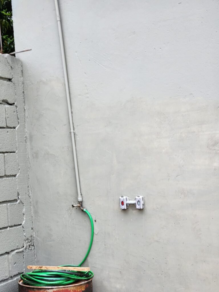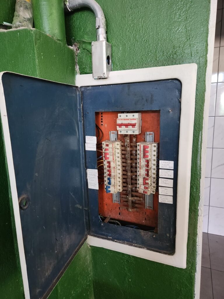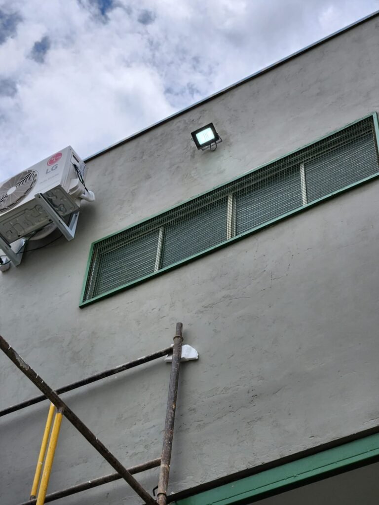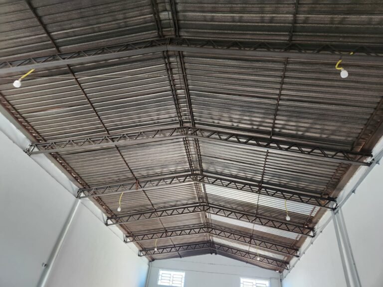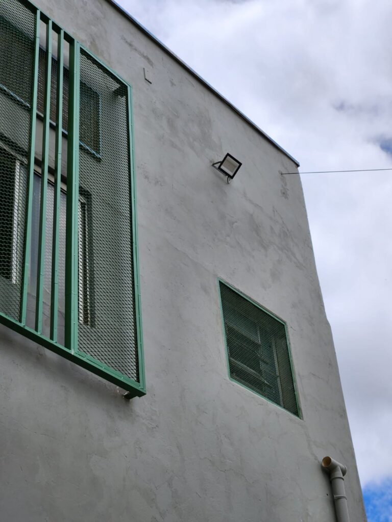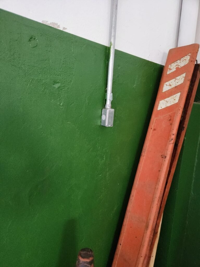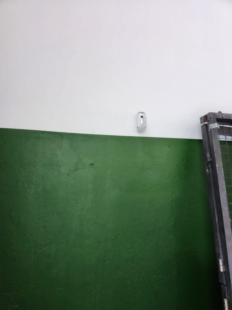 GALPÃO:- Piso concreto com irregularidade e com pintura nova com tinta piso na cor cinza em ordem, paredes barrado com pintura nova na cor verde em ordem e restante com pintura nova na cor branco neve em ordem, encanamento agua pluvial das calhas canos PVC 100mm com pintura nova barrado na cor verde e restante na cor branco, eletro tubos aparente na cor cinza com 02 espelhos para passagem de fios, 08 tomadas em ordem, 05 sendo 110 v e 03 sendo 220 v, 10 espelhos de luz de luz sendo que 03 são cegos e 01 esta com pintura na cor verde, 06 lâmpadas led em ordem, 06 coduletes para passagem de fios para as lâmpadas, 02 vitrôs com 19 vidros canelados cada em ordem, 01 portão deslizante de ferro com pintura nova na cor verde, travas e roldanas em ordem, 01 cadeado Pado e chave em ordem, telhado com estrutura metálica com pintura na cor preto em ordem, telhas galvanizadas em ordem, 01 tanque com coluna cerâmica branca, 01 torneira bica em ordem, 01 caixa de disjuntores com tampa na cor branco com 14 disjuntores em ordem sendo 01 Steck SD 100A 3P, 01 Steck SD C50 3P, 02 Steck SD C25 2P, 01 Steck SD C20 1P, 01 Streck SD C32 2P, 03 Steck 2P sem indentificação, 02 FD C16 2P, 01 Steck SD C25 1P, 02 Steck SD 1P sem identificação, 02 portas de madeira com pintura nova na cor branco sem guarnições restante em ordem, maçanetas e fechaduras em ordem, 01 porta de ferro com pintura nova na cor branco em ordem, maçaneta em ordem, sem fechadura, 02 ralo com grelha de ferro em ordem.
