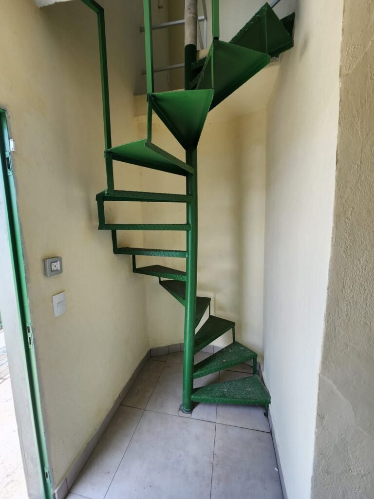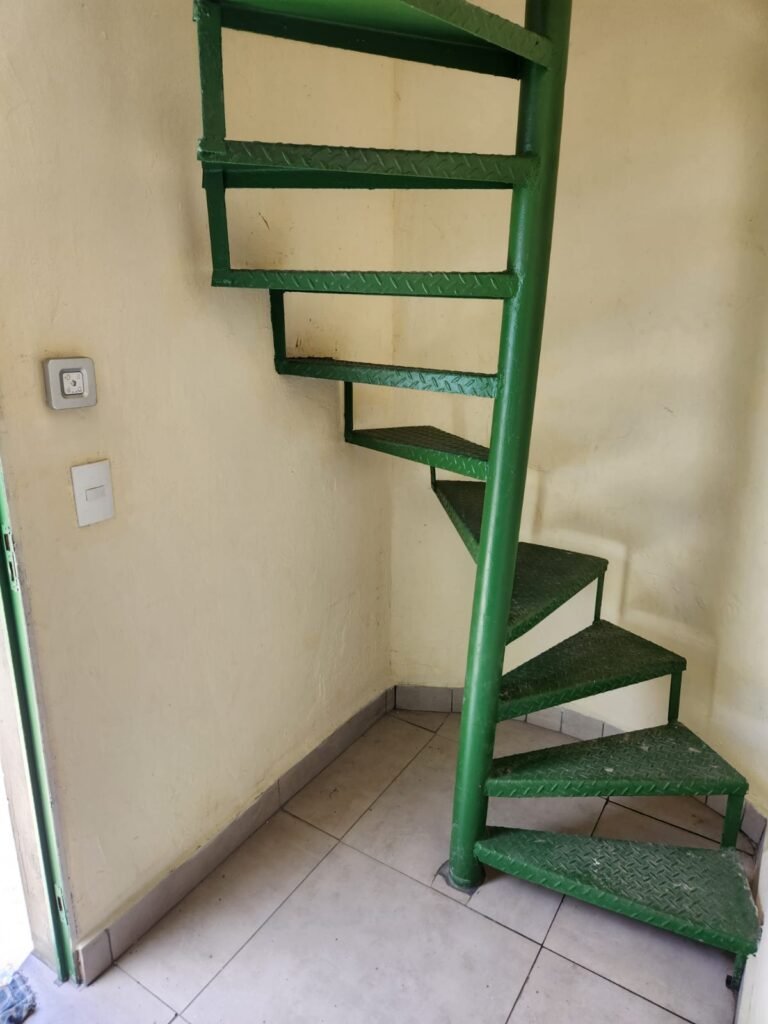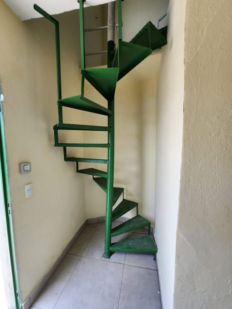 ESCADA caracol de ferro com pintura nova na cor verde, sem corrimão.