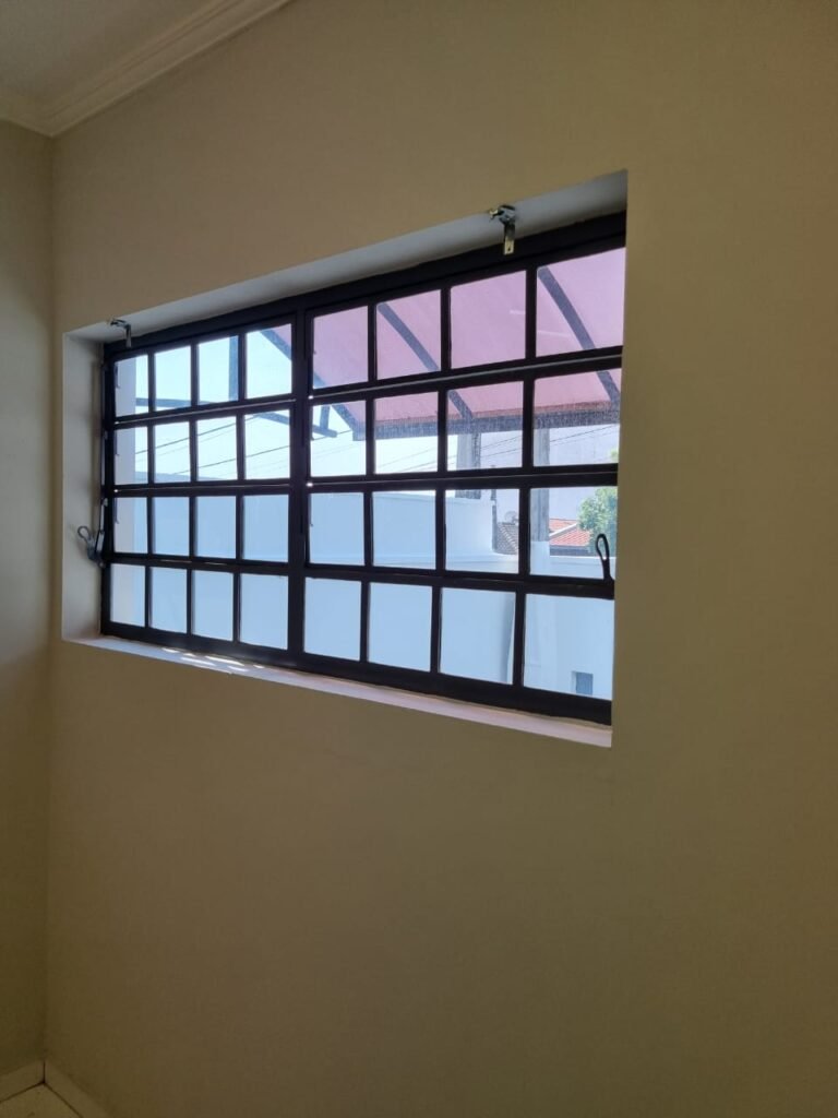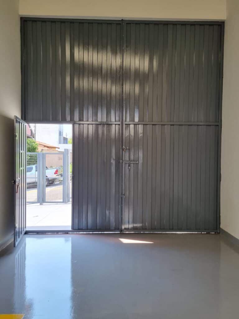 GARAGEM:- Piso de concreto com pintura na cor cinza pintura nova em ordem, 01 torneira de jardim e 01 registro em ordem, paredes laterais e fachada do barracão com reboco e pintura nova na cor branco em ordem, porta social de chapa dobrada com pintura nova na cor cinza em ordem, fechadura e chaves em ordem, portão para caminhão com 02 folhas de chapa dobrada com pintura nova na cor cinza em ordem, 01 folha de metalon com pintura nova na cor cinza em ordem, 02 toldos de metalon e acrílico fumê em ordem, 01 vitrô de ferro na cor cinza com 32 vidros em ordem, 01 janela de alumínio com vidros fumê em ordem, 01 vitrô de ferro cinza com 09 vidros em ordem.