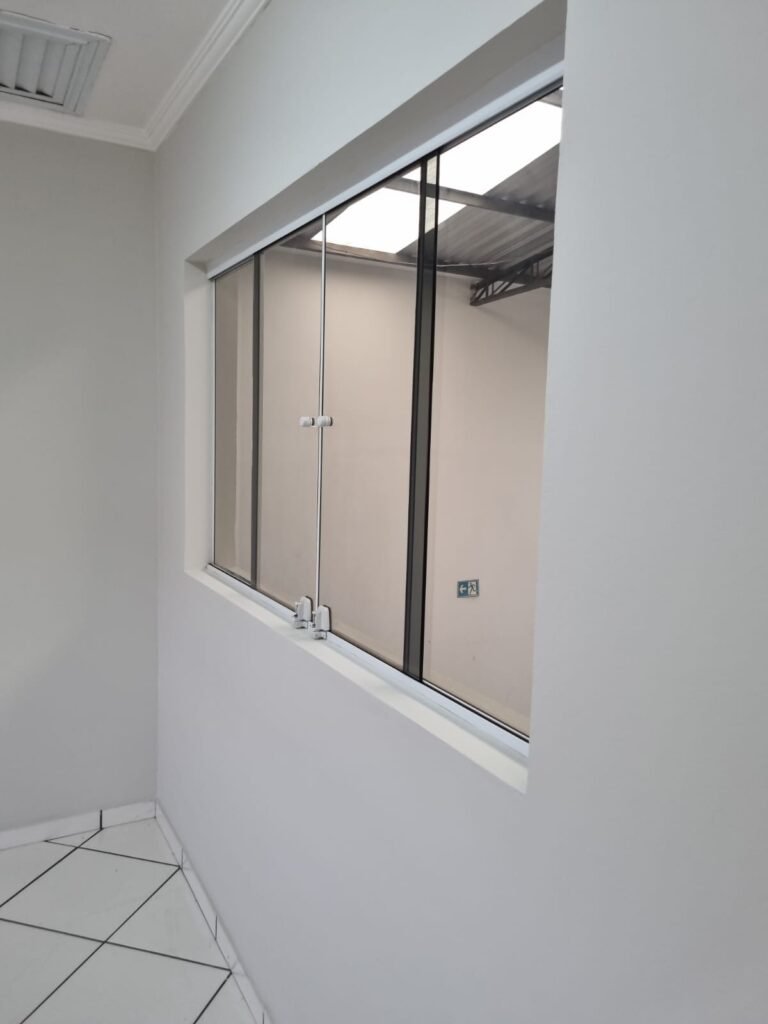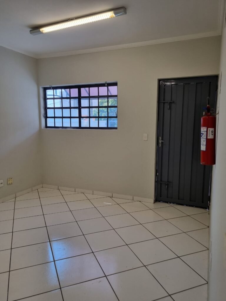 ESCRITÓRIO/RECEPÇÃO:- Piso frio cerâmico na cor branca em ordem, paredes com reboco e pintura nova na cor branca em ordem, teto com pintura nova na cor branco em ordem, gola de gesso com pintura nova na cor branco em ordem, 03 luminárias tubular em ordem, 03 lâmpadas led tubular em ordem, 01 sirene de alarme em ordem, 01 porta social de ferro cinza e 40 vidros em ordem, fechadura e chaves em ordem, 01 extintor pó químico em ordem.