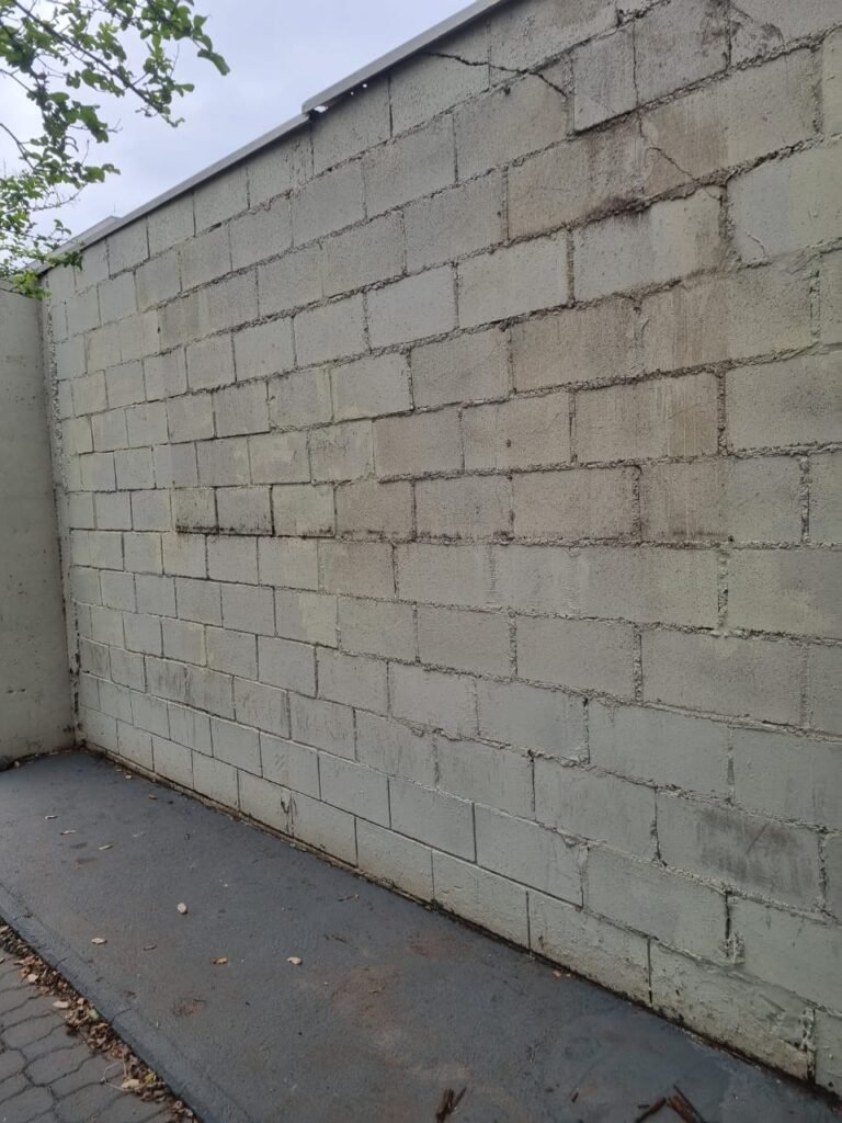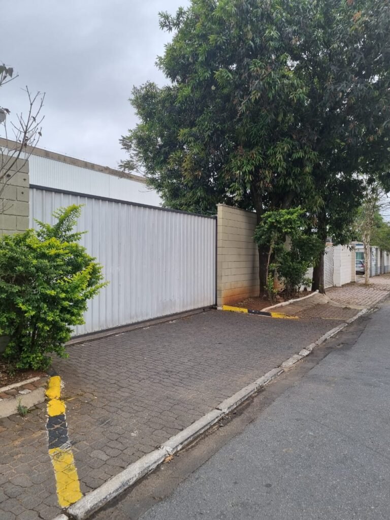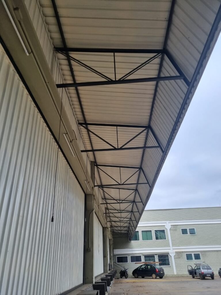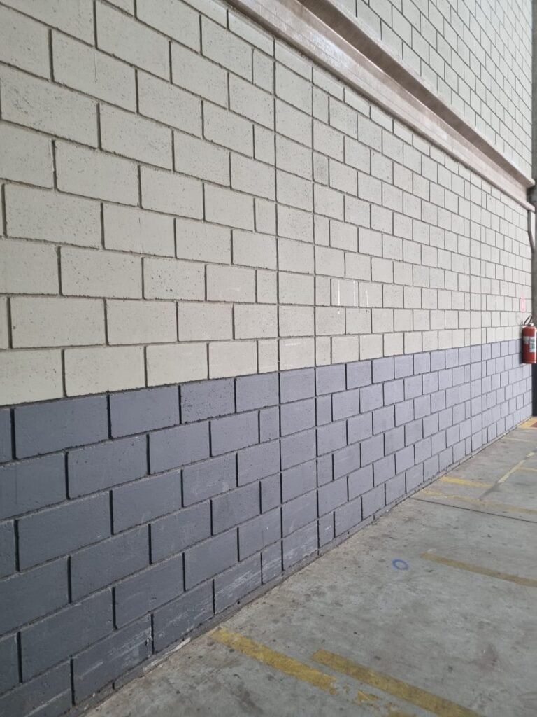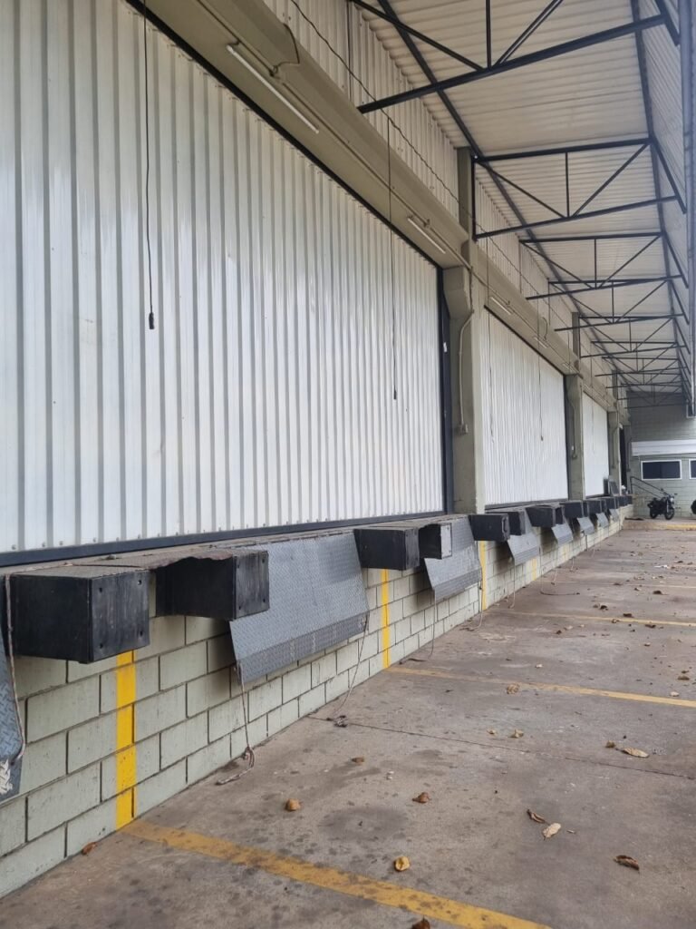 FACHADA:- Muros de blocos aparente com pintura na cor bege acinzentado em ordem, 03 portões deslizante de chapa galvanizadas com pintura na cor branco em ordem, roldanas em ordem, 12 trilhos para proteção dos portões com pintura na cor amarelo e preto em ordem, padrão de energia e água em ordem, 01 aparelho de interfone HDL em ordem, nº 460 fixado no muro em ordem, pátio piso concreto usinado com trincas e 09 demarcações de vagas com pintura na cor amarelo em ordem, 18 plataformas batedoras de ferro em ordem, escada de alvenaria com 03 degraus revestida com piso frio cerâmico em ordem, corrimão tubular com pintura na cor preto em ordem, entrada da guarita com piso frio cerâmico com trincas e guarda corpo com pintura na cor preto em ordem, fachada do administrativo com blocos aparente e pintura na cor bege acinzentado e colunas e vigas com pintura na cor branco neve em ordem, fachada do galpão com telhas galvanizadas com pintura na cor branco neve em ordem, para raio em toda a extensão do telhado em ordem, portão social com pintura na cor preto, fechadura elétrica HDL em ordem, 05 refletores de LED em ordem.