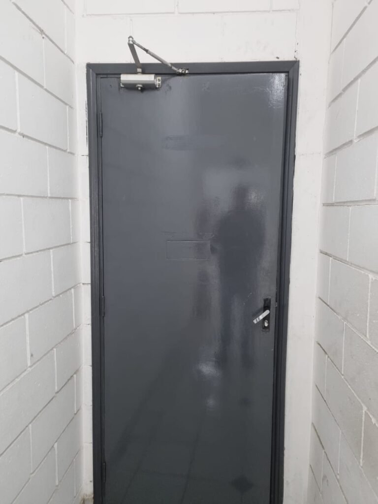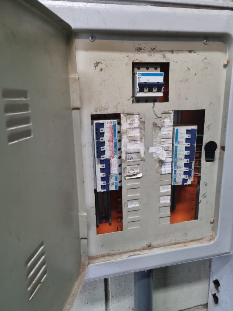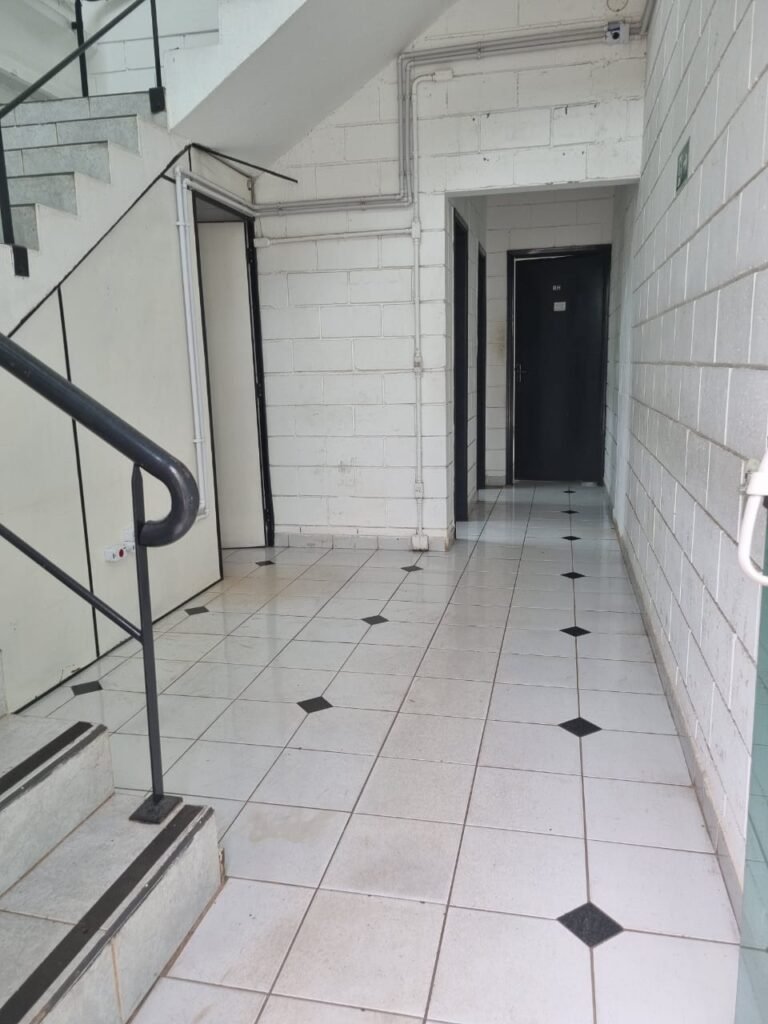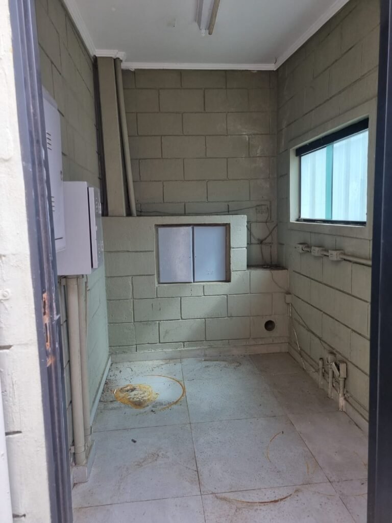 SALA ADMINISTRATIVA:- Piso frio cerâmico com manchas claras restante em ordem, paredes com blocos aparente e pintura na cor branco neve em com manchas, teto e gola de gesso com pintura na cor branco neve em ordem, 02 portas de madeira com pintura na cor preto em ordem, fechadura sem chave e maçanetas em ordem, porta de saída para o galpão com grade proteção em ordem, 02 Vitrô de correr com fechaduras e chaves em ordem, vidros blindex transparente em ordem, 02 persianas verticais quebradas, 02 extintores: 01 de pó químico 04 KG 20-B:C com recarregado em agosto/2023, 01 água 10 litros 2-A com recarregado em agosto/2023, 01 lâmpada de emergência, parte elétrica por conduletes, 02 luminárias duplas em ordem, 08 lâmpadas tubulares em ordem.