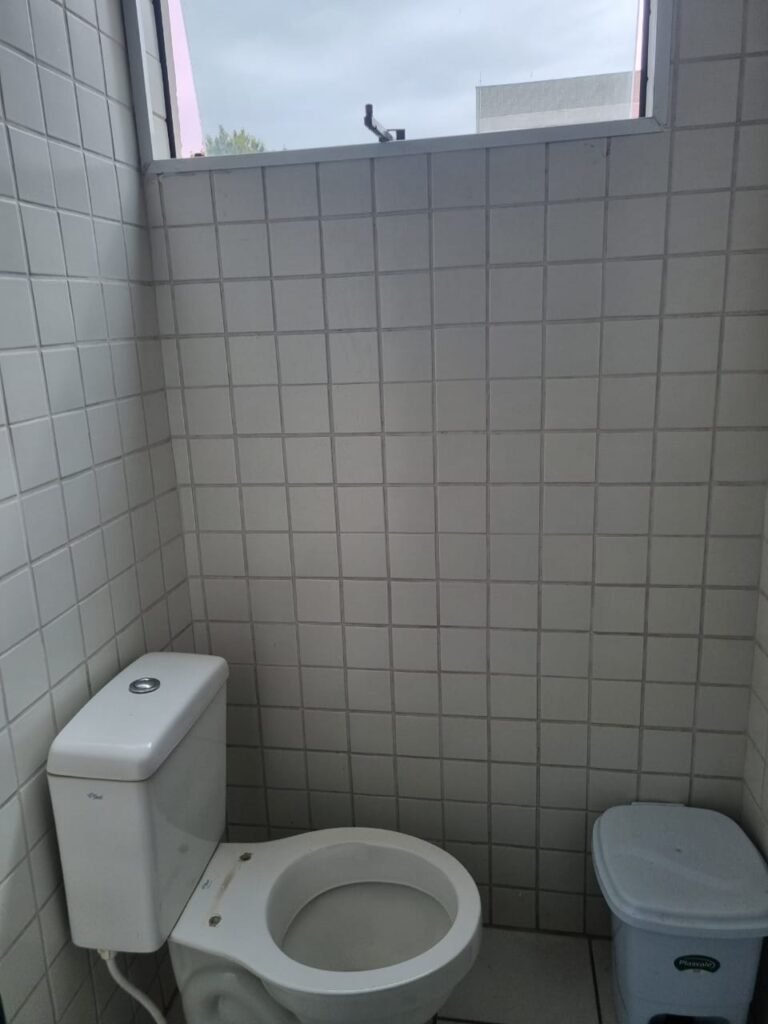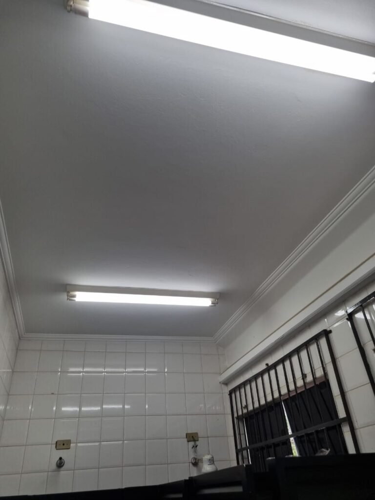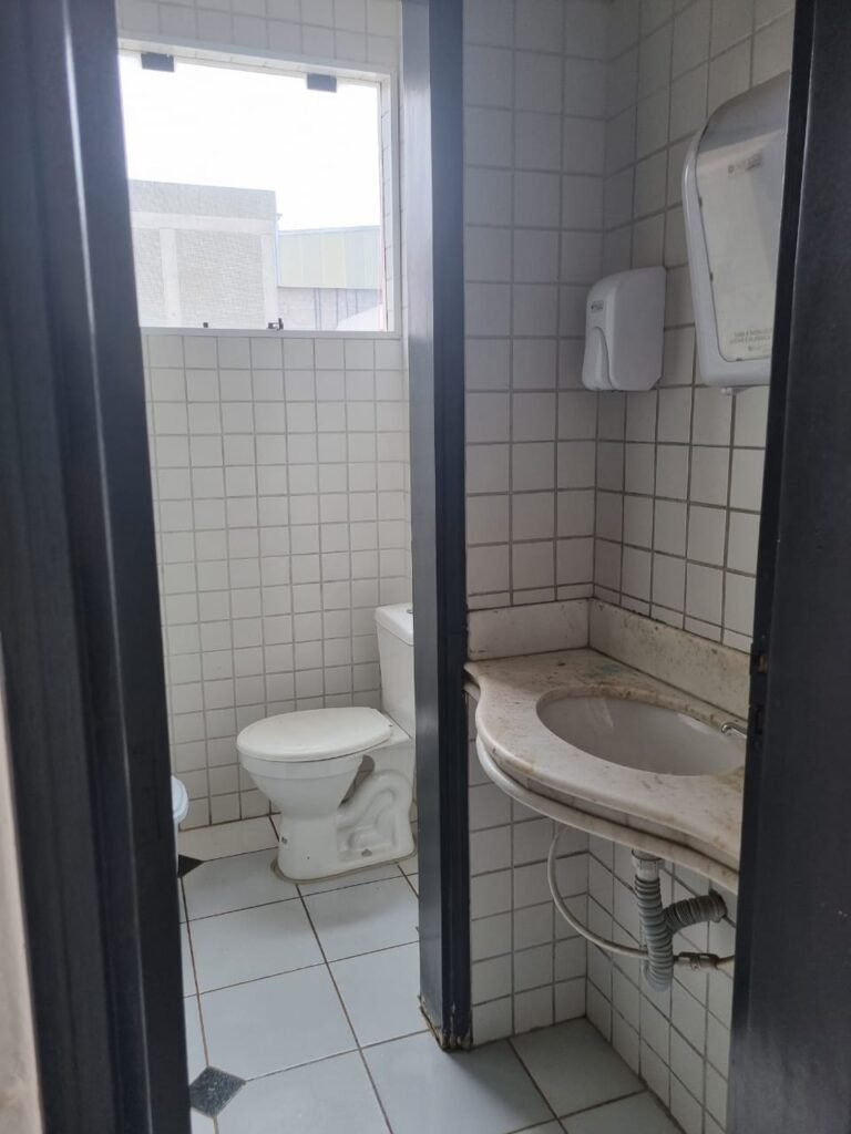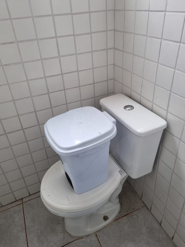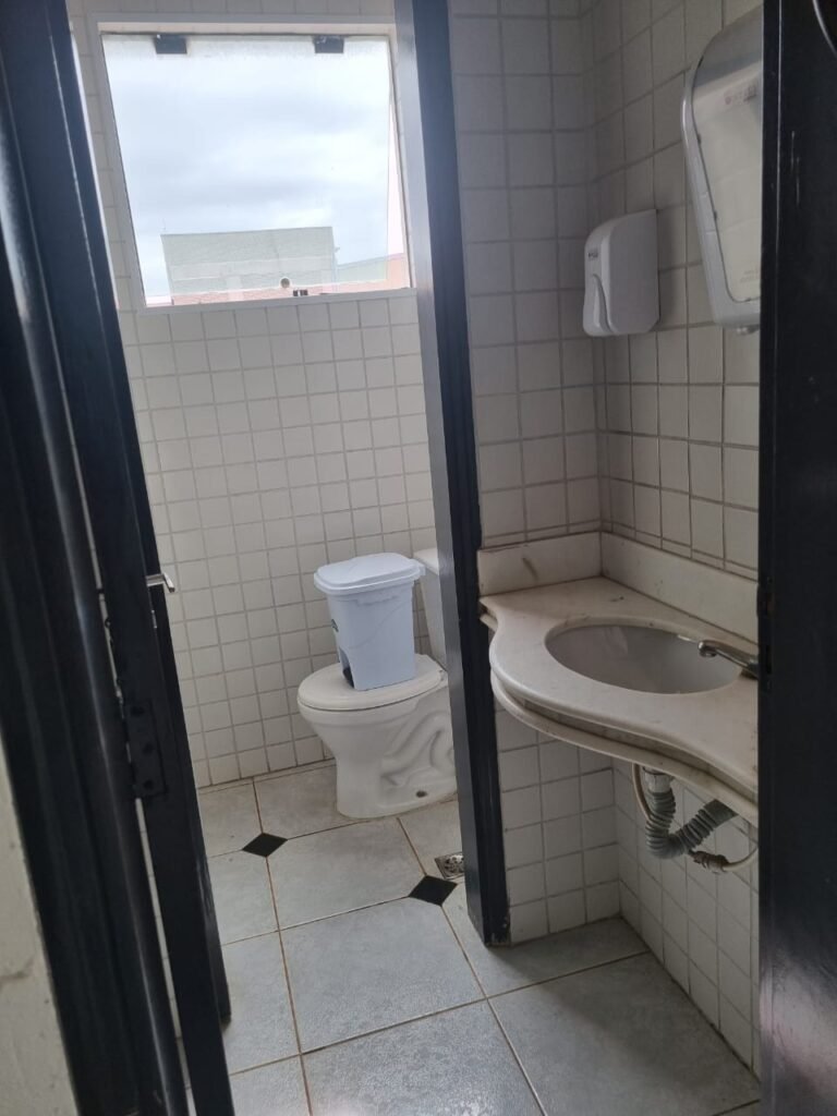 BANHEIRO FEMININO:- Piso frio cerâmico em ordem, paredes com pastilha cerâmica até o teto em ordem, porta de madeira com pintura em ordem, vitrô com puxador em ordem, vidro blindex em ordem, 02 luminárias duplas em ordem, 04 lâmpadas LED tubular em ordem, conjunto vaso sanitário e caixa acoplada de descarga cerâmica na cor branco em ordem, tampa do vaso sanitário de plástico em ordem, 02 espelhos de luz em ordem, 02 interruptores em ordem, 01 tomada em ordem, 01 ralo com tampa e desentupido, pia mármore branco em ordem, cuba cerâmica em ordem, torneira em ordem, sifão universal em ordem.