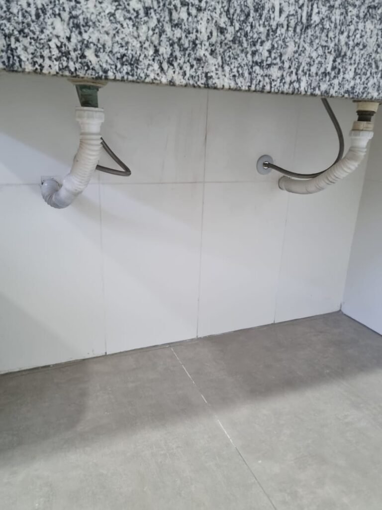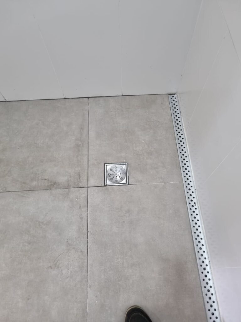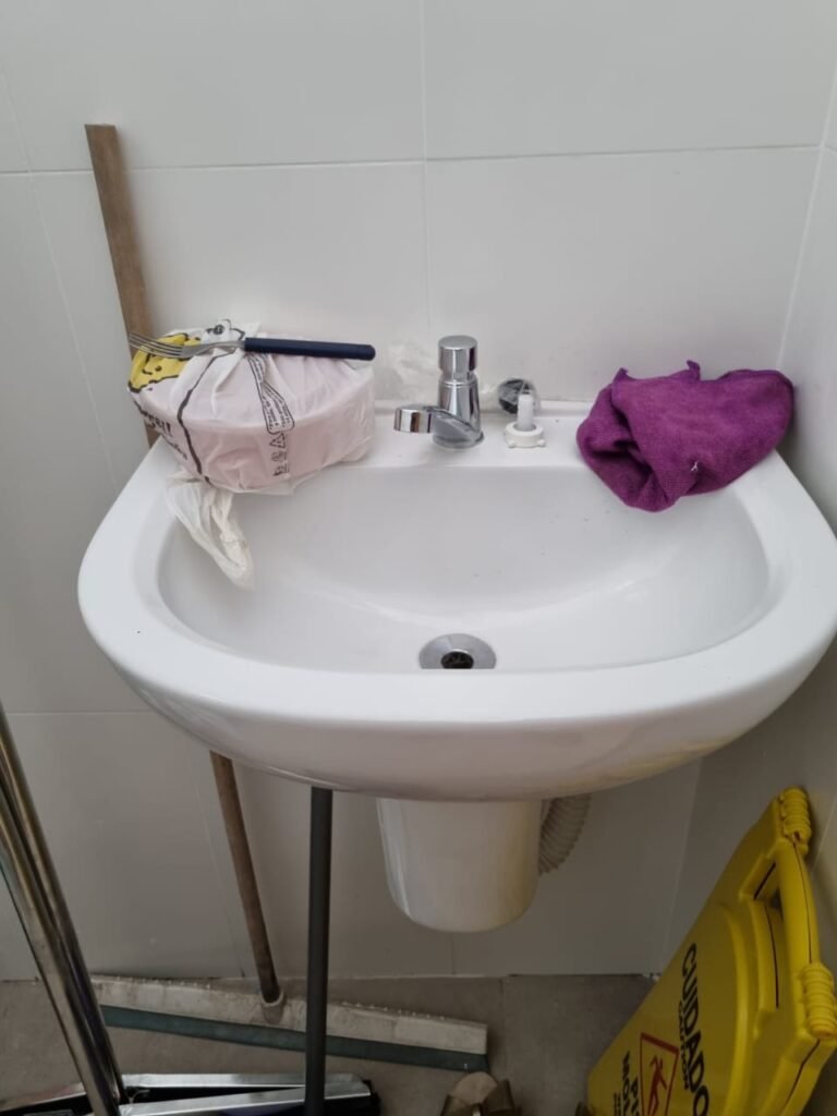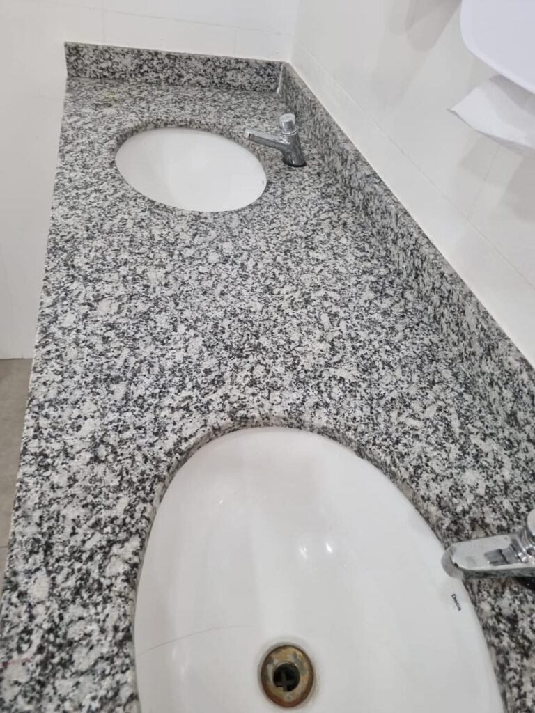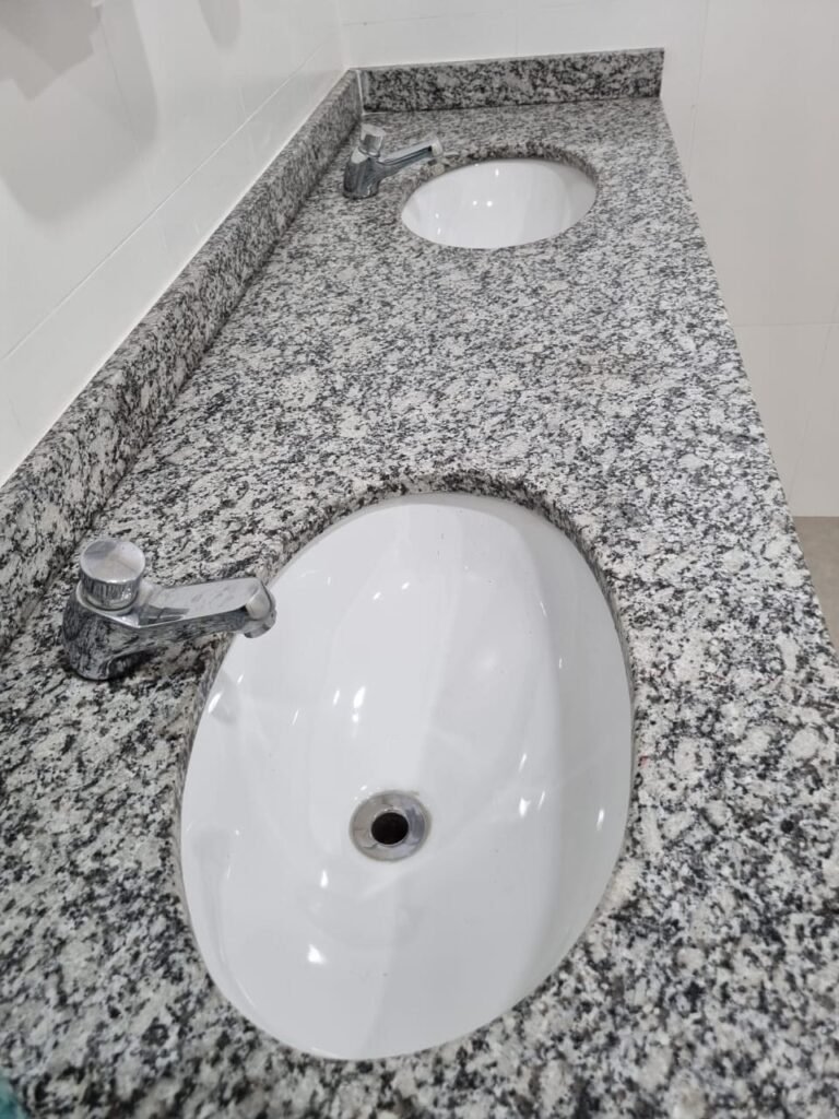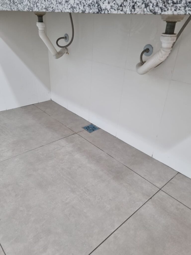 W.C MASCULINO:- Porta de madeira envernizada em ordem, maçanetas em ordem, fechadura e chave em ordem, piso porcelanato em ordem, azulejo até o teto, 01 mictório Deca cerâmica branca em ordem, descarga em ordem, pia mármore em ordem, 02 cubas cerâmica em ordem, 02 torneiras Celite, 02 sifão universal sanfonado em ordem, 02 divisórias com portas em ordem, maçanetas em ordem, 01 conjunto vaso sanitário e caixa acoplada descarga em ordem, tampa plástico em ordem, 01 chuveiro Lorenzetti Loren shower em ordem, 01 ralo tipo grelha em ordem.