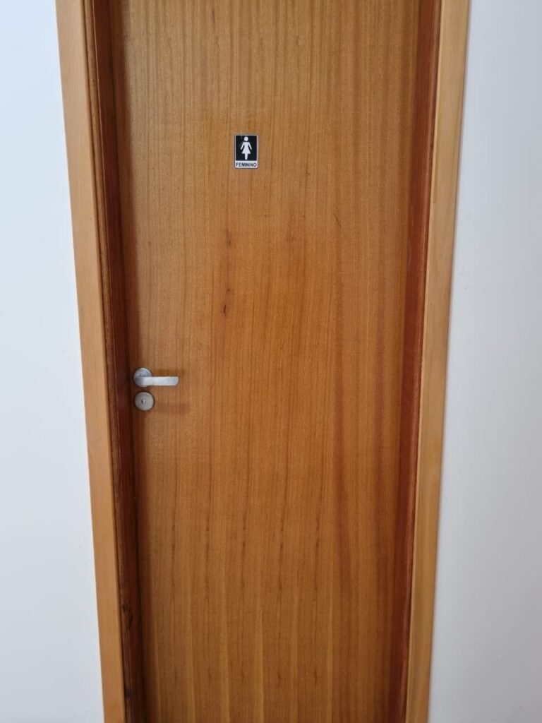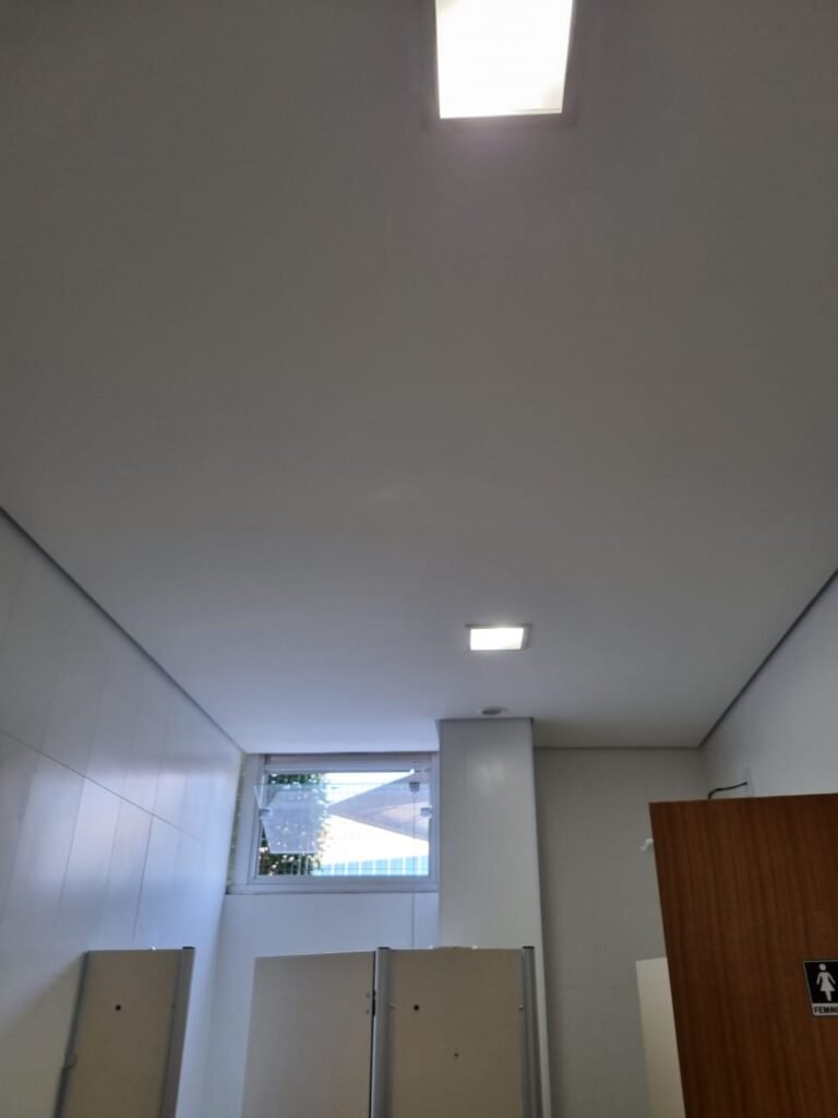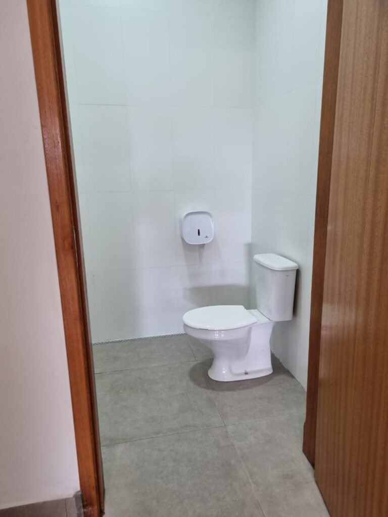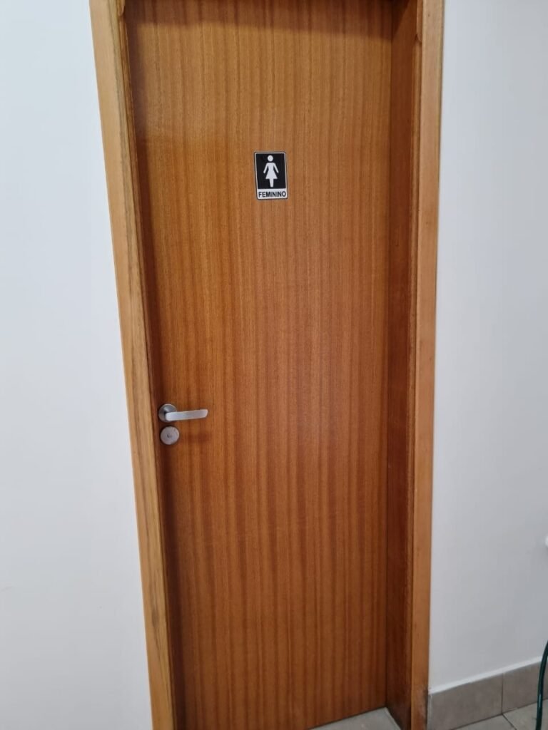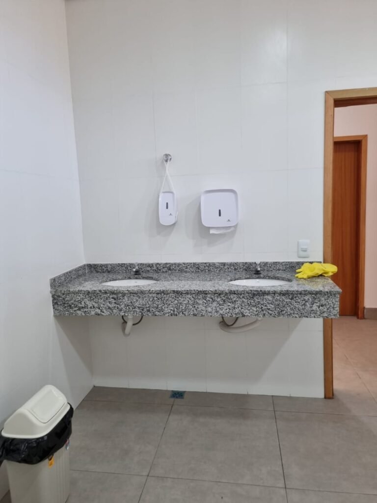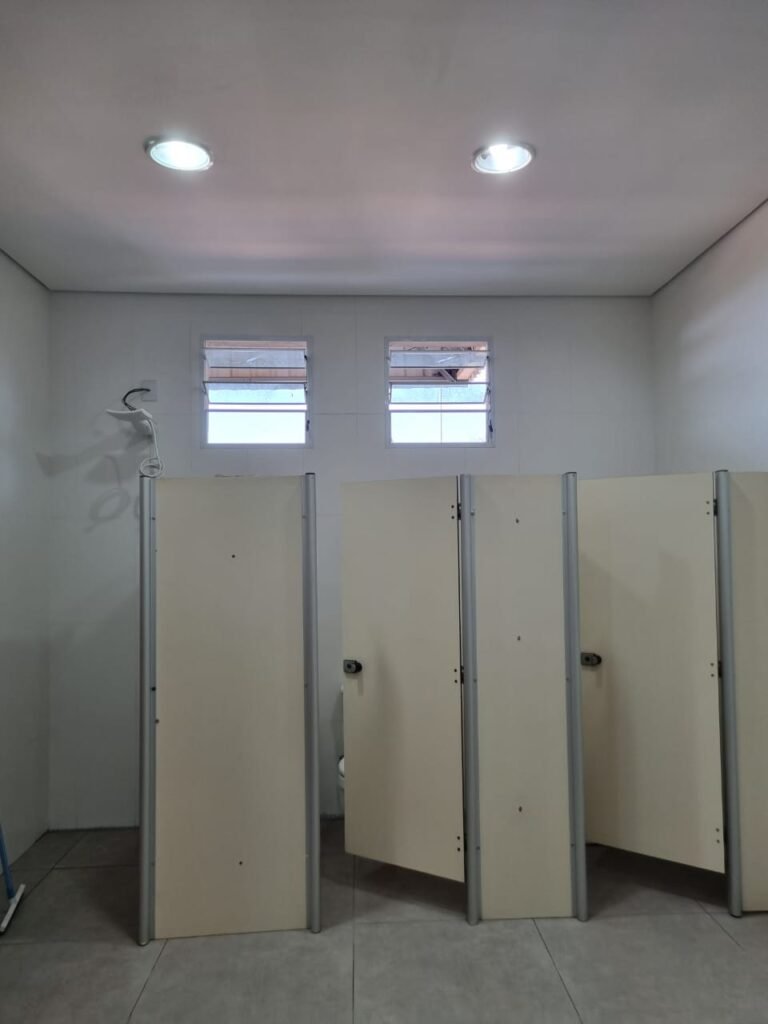 W.C FEMININO:- Porta de madeira envernizada e nova em ordem, fechadura e chaves em ordem, piso porcelanato em ordem, pia mármore em ordem, 02 cubas cerâmica branca Deca em ordem, 02 torneiras Celite em ordem, 02 sifão sanfonado universal em ordem, azulejo até o teto em ordem, 04 lustres embutidos com lâmpadas de LED em ordem, 02 vitrôs basculante com vidro blindex em ordem, trava em ordem, 03 Box com 03 portas em ordem, travas em ordem, 01 ralo tipo grade em ordem, 02 conjuntos de vaso sanitário e caixa acoplada de descarga em ordem, tampa de plástico em ordem, 02 registros com canopla em ordem, 01 chuveiro Lorenzetti Loren shower ultra em ordem, 01 interruptor em ordem, espelho de luz em ordem, 03 divisórias com 03 portas em ordem, maçanetas em ordem.