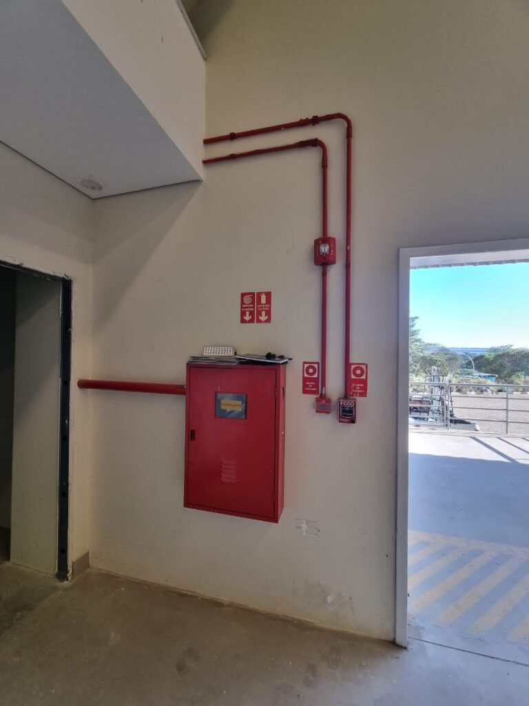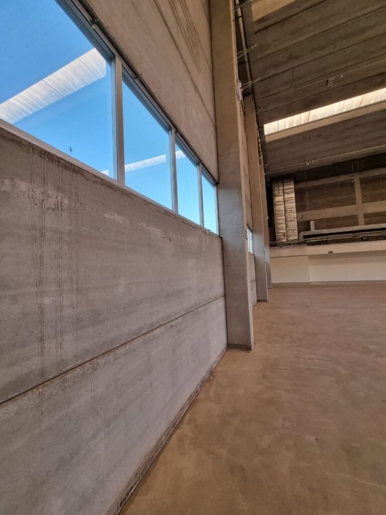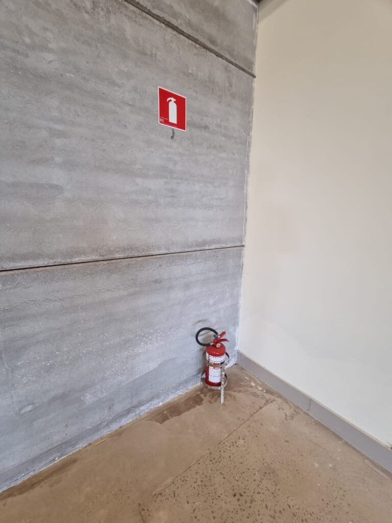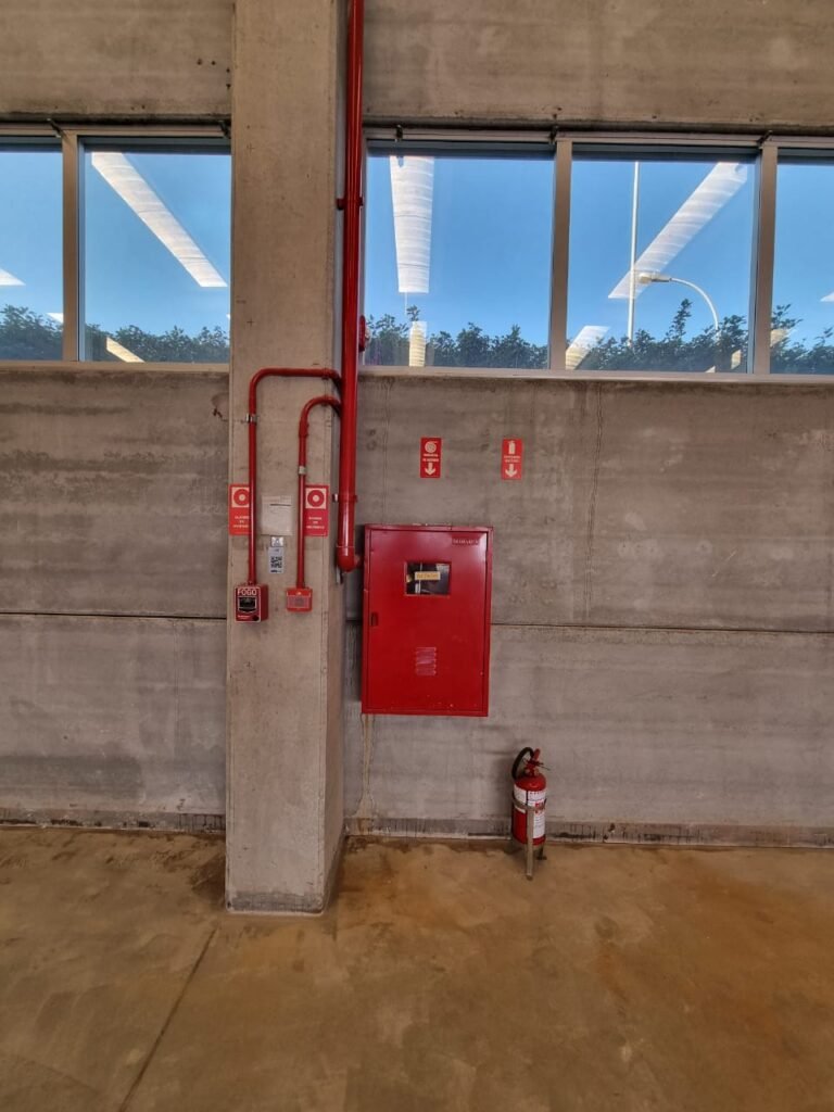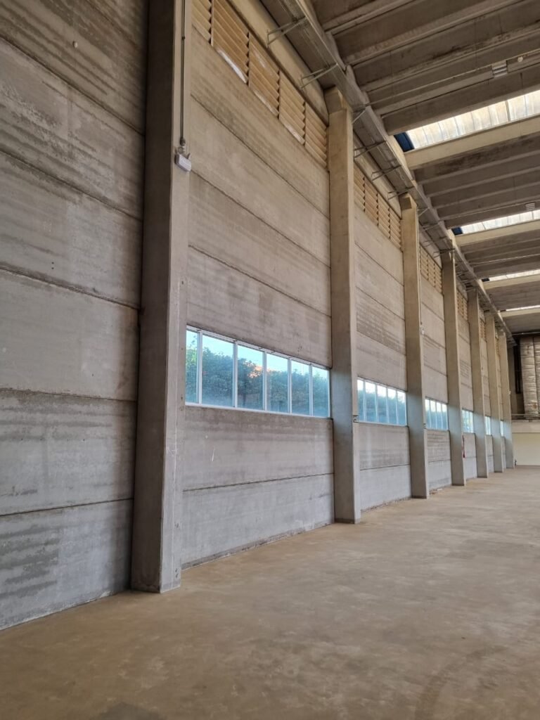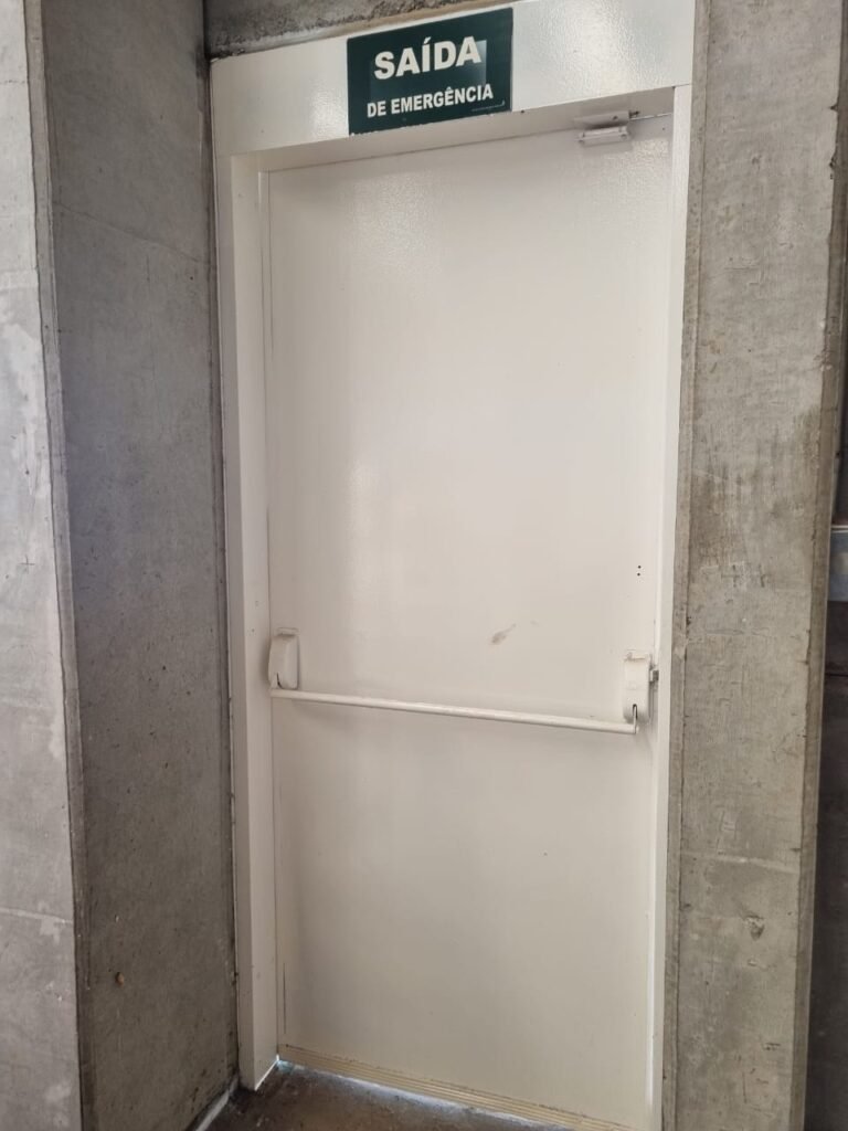 GALPÃO:- Piso concreto usinado e polido em ordem, paredes placas de concreto em ordem, 03 caixas de hidrante com mangueira, chave e bicos em ordem, 06 extintores em ordem sendo 02 água 10 lt 2-A e 04 pó químico 20 B:C, 12 lâmpadas emergência em ordem, 36 vidros lisos transparentes em ordem, 24 luminárias tripla em ordem, 07 portas automatizadas e motor e baterias em ordem, parede divisória com pintura nova na cor concreto, 01 porta de madeira envernizada, maçanetas em ordem, fechadura e chave Yale em ordem.