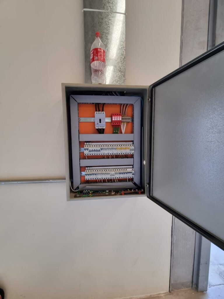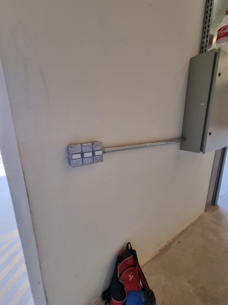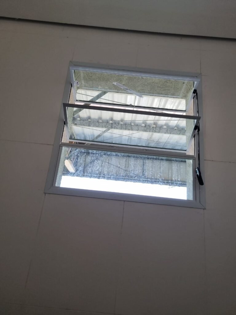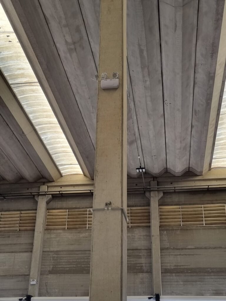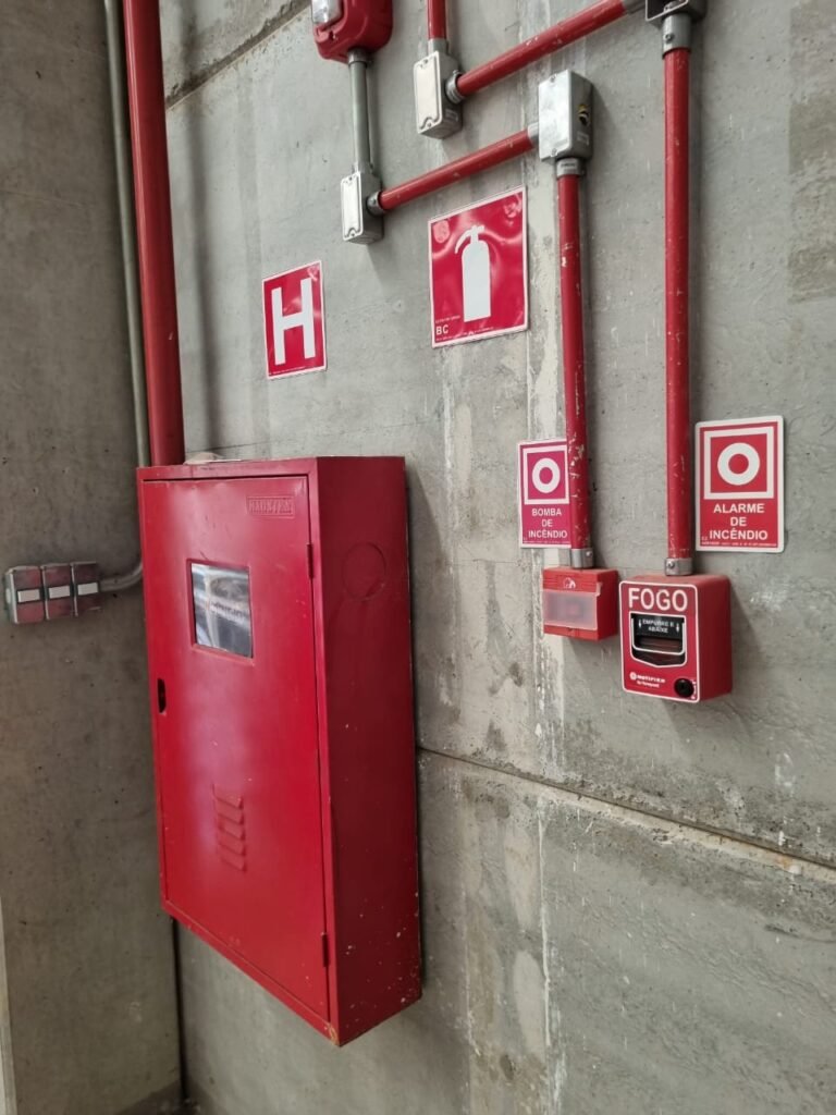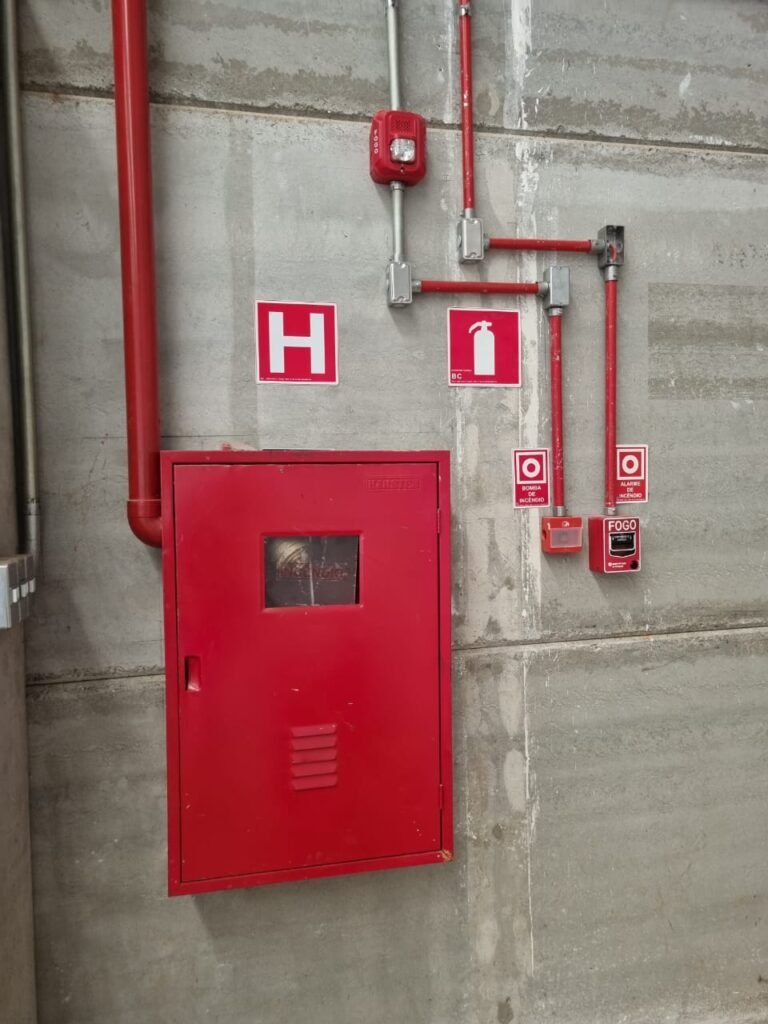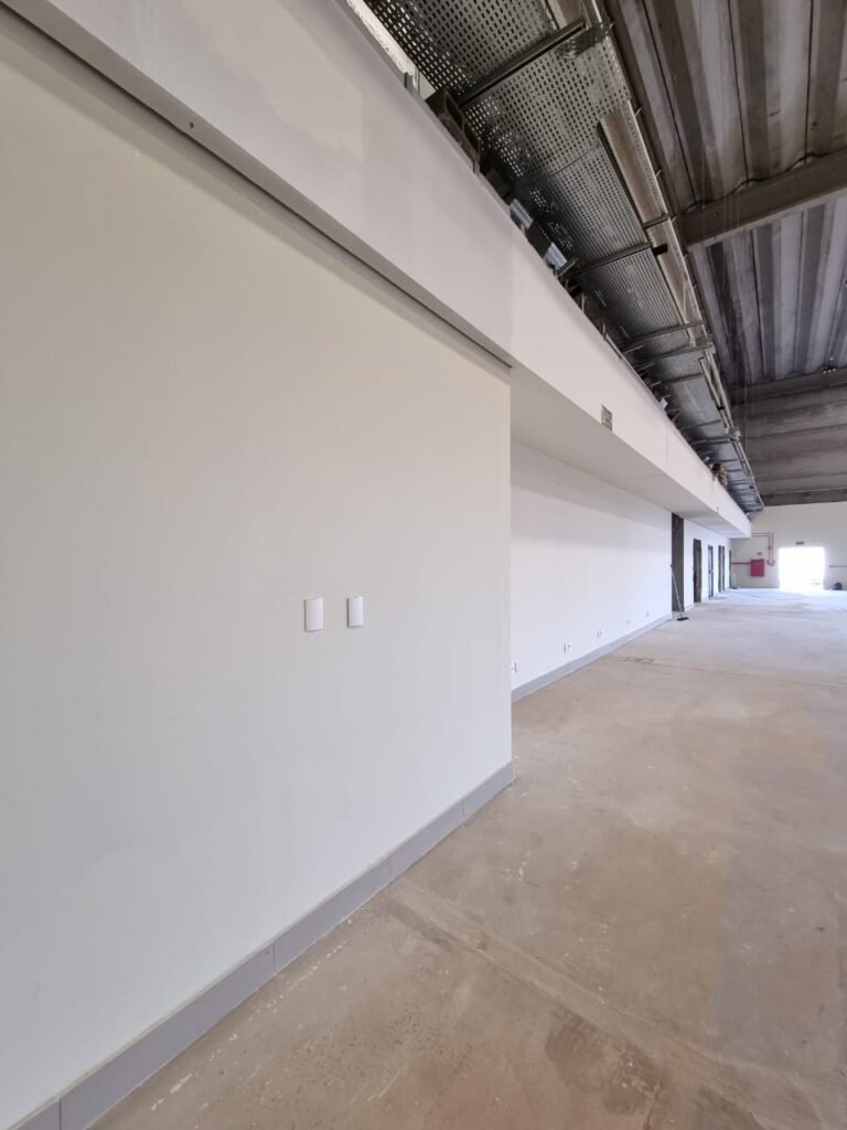GALPÃO:- Piso concreto usinado e polido em ordem, paredes placas de concreto em ordem, 03 caixas de hidrante com mangueira, chave e bicos em ordem, 06 extintores em ordem sendo 02 água 10 lt 2-A e 04 pó químico 20 B:C, 12 lâmpadas emergência em ordem, 36 vidros lisos transparentes em ordem, 24 luminárias tripla em ordem, 07 portas automatizadas e motor e baterias em ordem, parede divisória com pintura nova na cor concreto, 01 porta de madeira envernizada, maçanetas em ordem, fechadura e chave Yale em ordem.