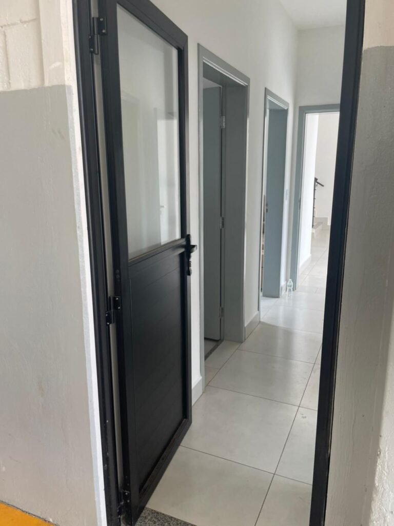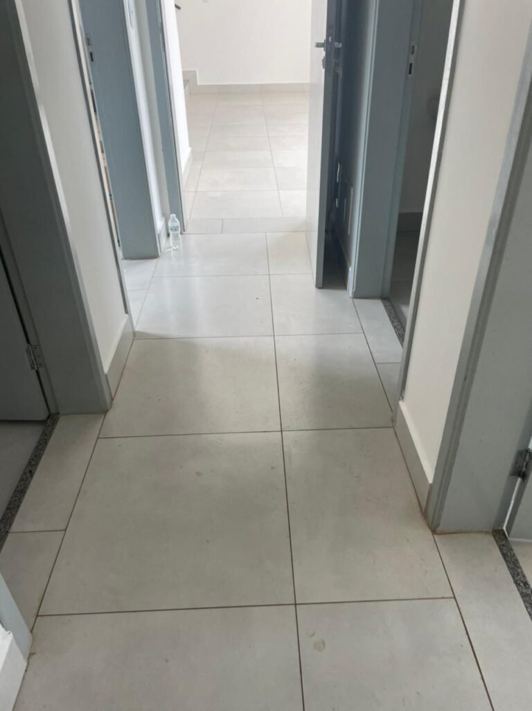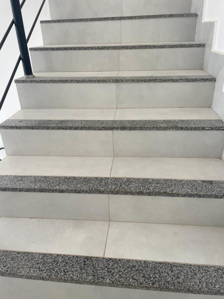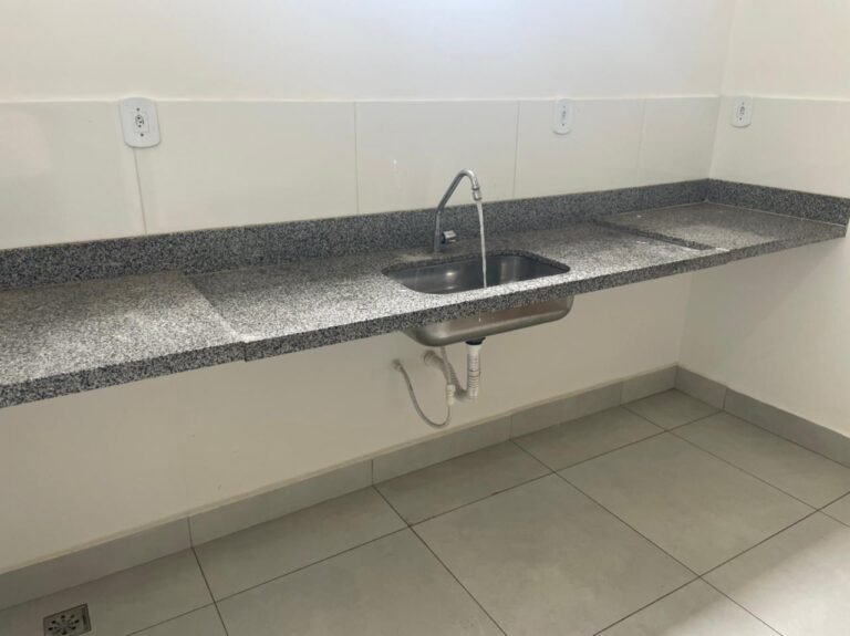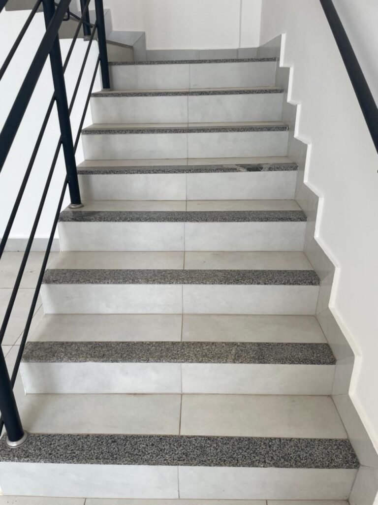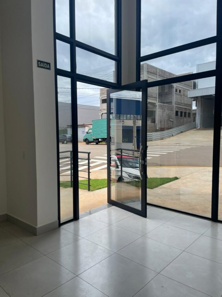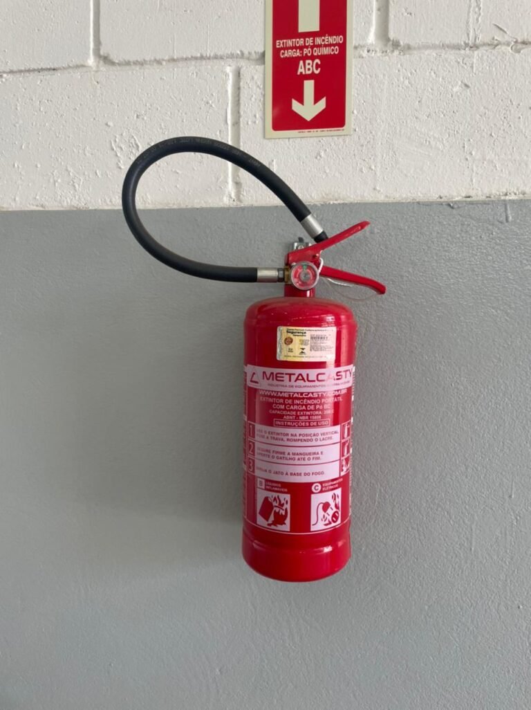 RECEPÇÃO:- Piso porcelanato cinza ordem, paredes com pintura na cor branca ordem, porta de acesso em vidro blindex preto, com puxadores e chave em ordem, 13 vidros blindex fume e esquadrias de Alumínio preto em Ordem, poço de elevador com porta de madeira e chave em ordem, um hidrante com mangueiras e botoeiras novas, Sistema de alarme de incêndio novo, 2 extintores da marca metalcasty de 6 kg carga pó em ordem, 2 lâmpadas led ordem, tomadas em ordem, escada de alvenaria para aceso ao escritório com revestimento em porcelanato e de mármore em ordem, corrimão e guarda corpo com pintura na com preto em ordem.
