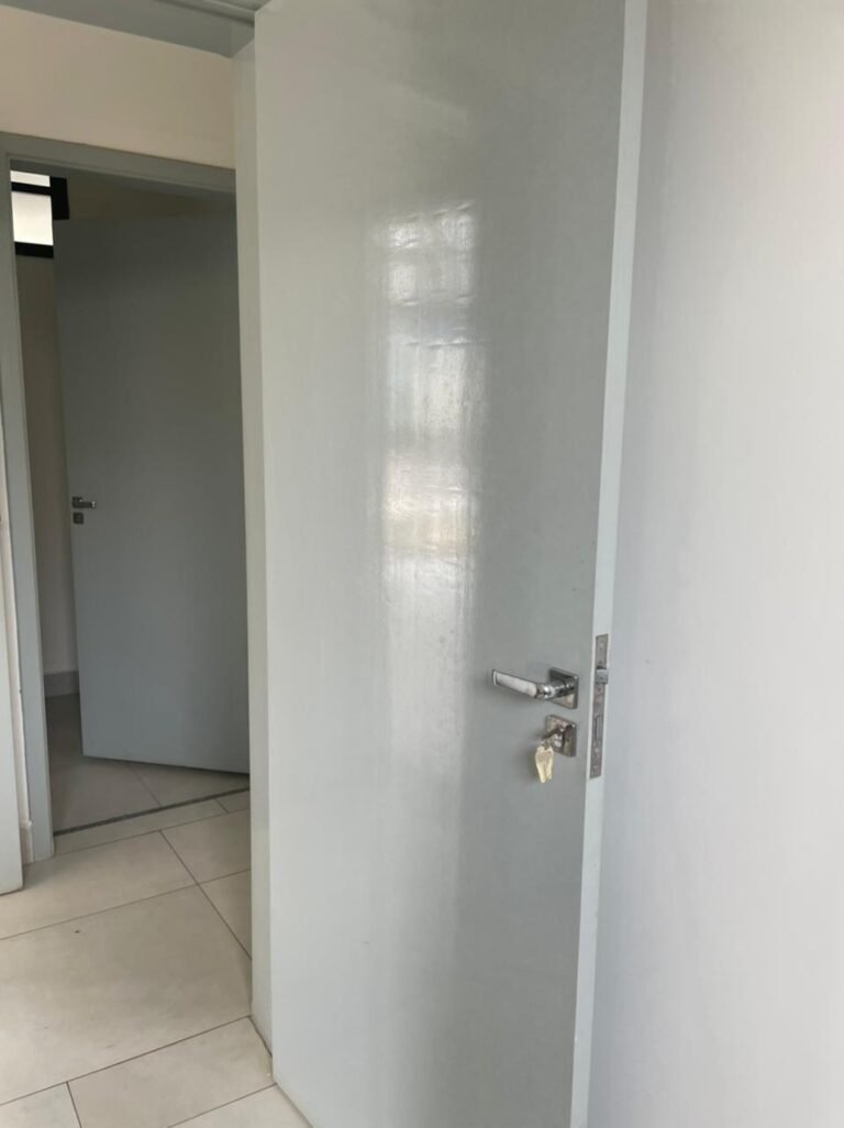 COZINHA:- Piso porcelanato cinza, paredes com pintura na cor cinza em ordem, 01 lâmpada de led, 01 vitrô de esquadria de alumínio com 02 vidros em ordem, pia de mármore grande com cuba de inox em ordem, torneira hidrolim em ordem, sifão em ordem, ralo com tampa em ordem, porta de madeira em ordem, maçanetas e chaves em ordem.