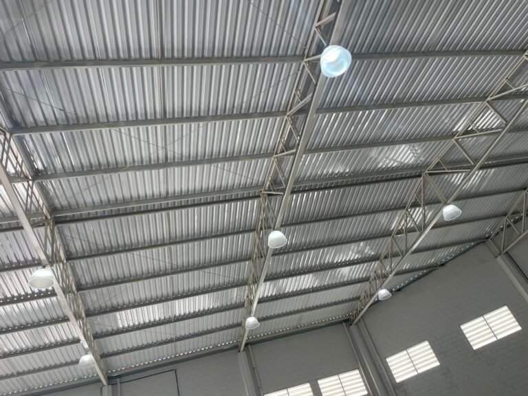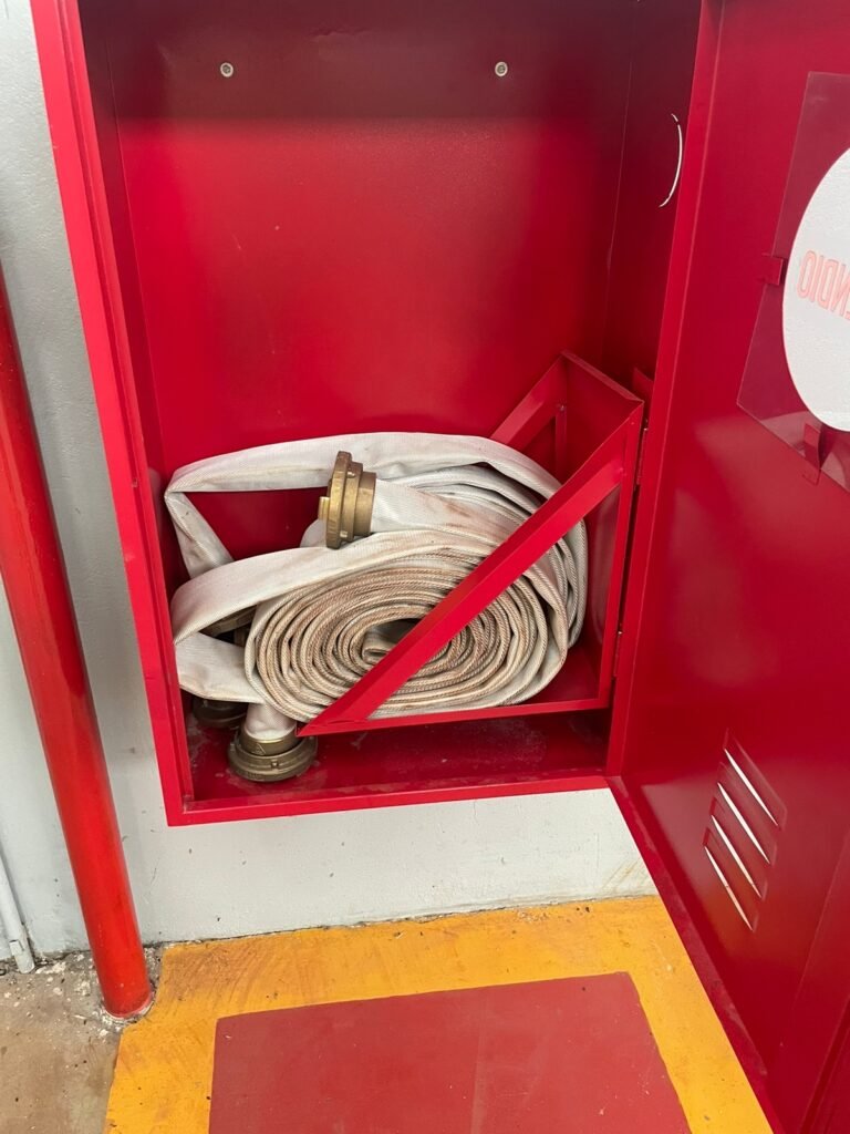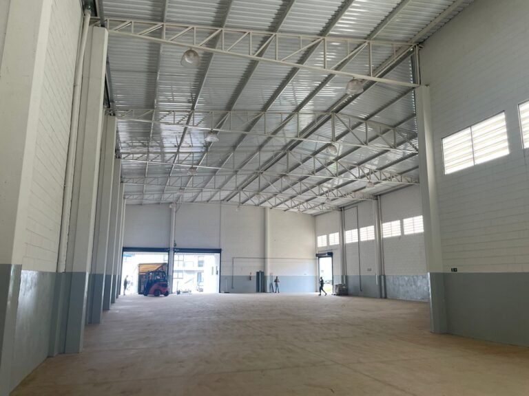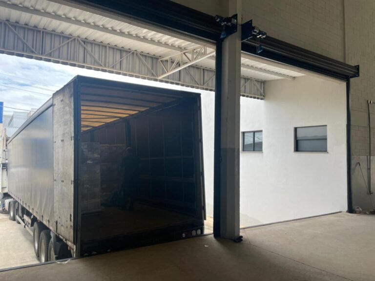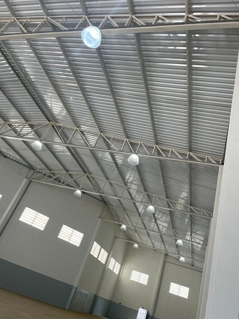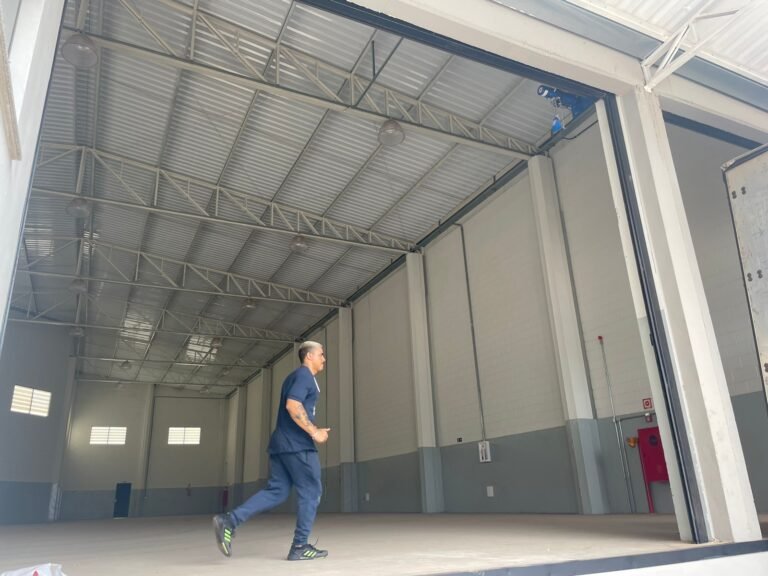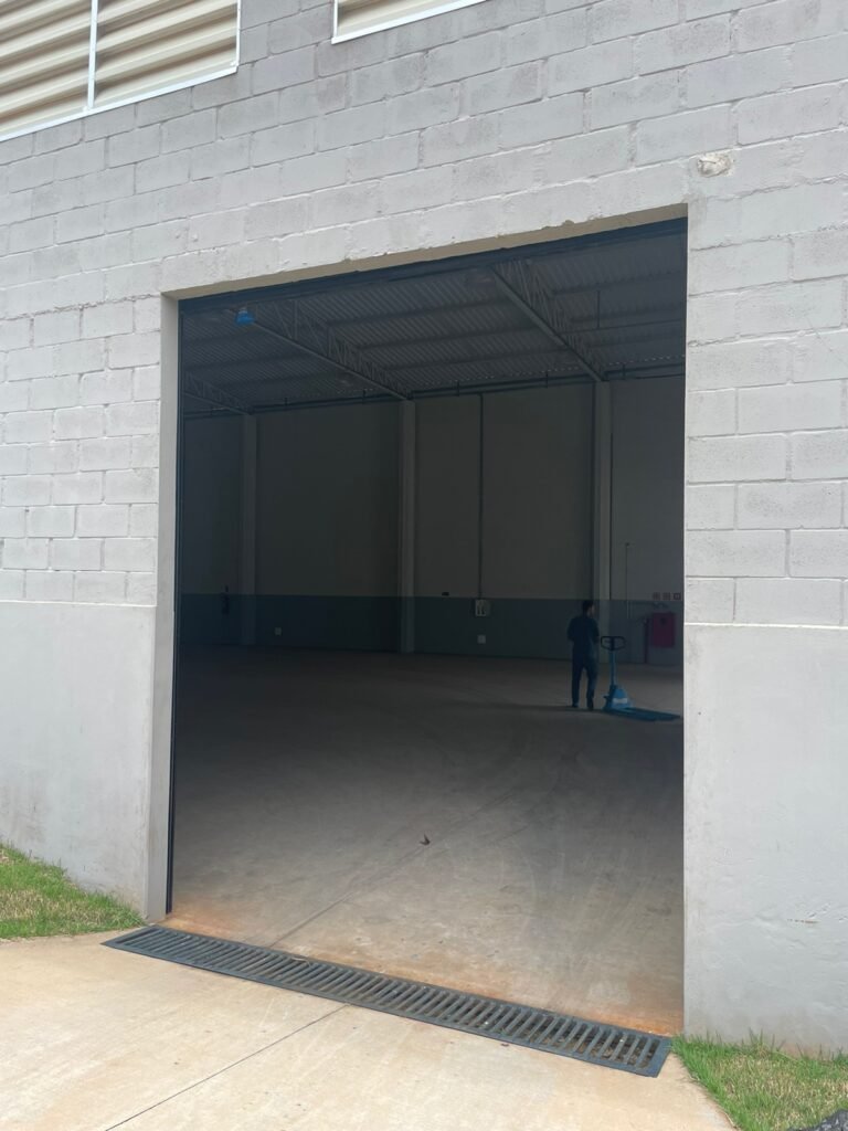 GALPÃO:- Porta lateral em chapa de aço automatizada em ordem, motor da marca matic em ordem, portas frontais de docas em chapa de aço automatizadas, motores da marca matic em ordem, piso concreto usinado em ordem, paredes com 1/3 da pintura na cor cinza e o restante na cor branco com bloco aparente, 16 janelas da acrílico ventilação lateral, telhado com telhas de chapa galvanizadas, 15 luminárias com lâmpada de led em ordem, 02 hidrantes ambos com mangueiras em ordem, 05 extintores em ordem sendo 04 de 6 kg carga de pó químico e 01 de 10 lt com carga d´água, porta de acesso aos fundos em chapa de ferro em ordem.