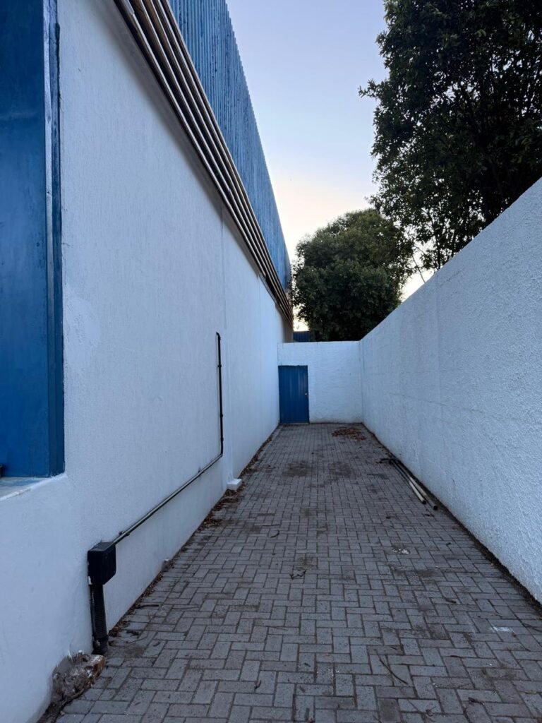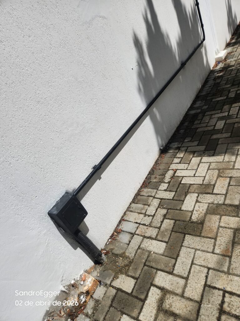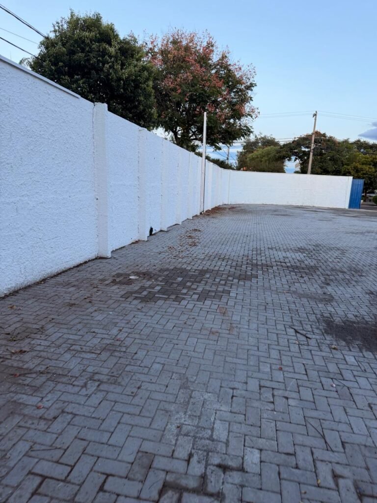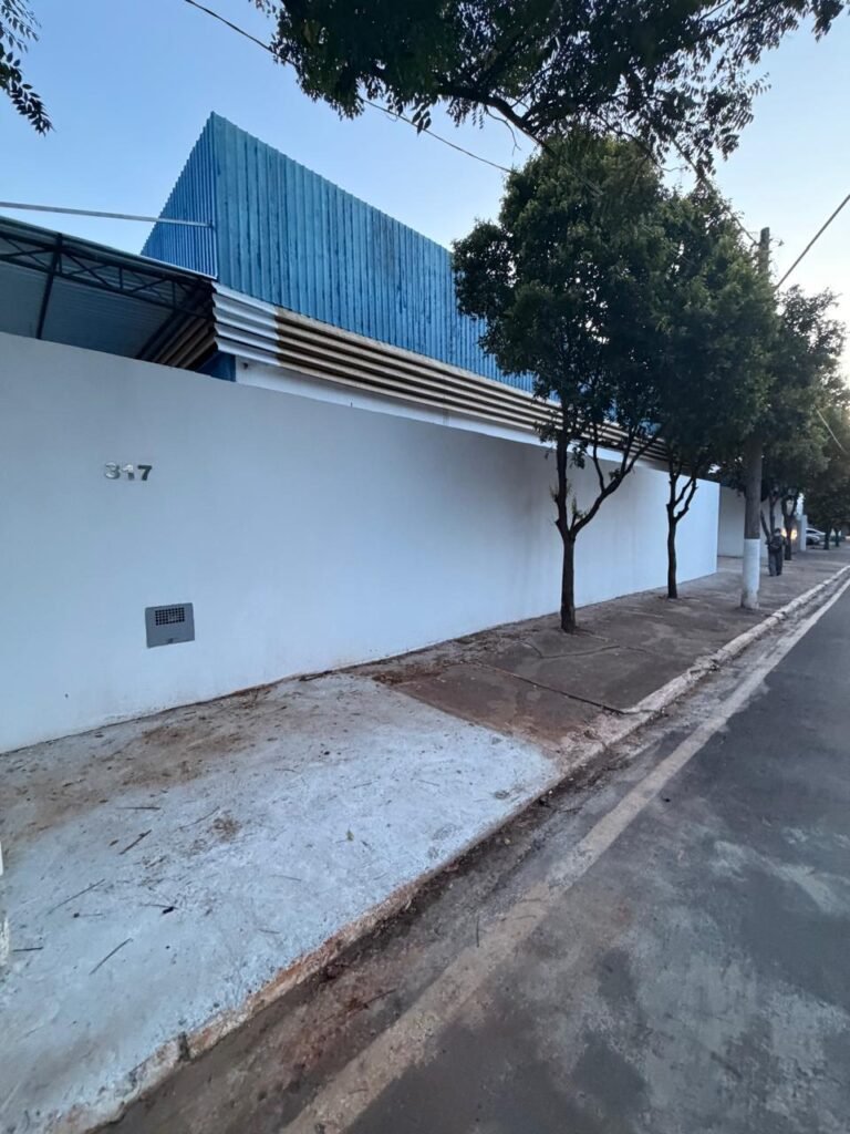 PÁTIO:- piso revestido de bloquetes de concreto intertravados, escada de alvenaria com pintura nova na cor cinza e branco em ordem, corrimão novo e em ordem, batentes de doca novos e em ordem, cobertura de telhas galvanizadas contendo 03 lâmpadas de led em ordem, 01 refletor de LED em ordem, 01 porta social de ferro com pintura nova na cor azul com maçanetas e fechadura em ordem e com chave, muros laterais com pintura nova na cor branco neve em ordem, 01 portão deslizante em chapas de metalon com pintura nova na cor azul em ordem, com puxadores em ordem e 01 trinco para cadeado e 01 fechadura ferrolho em ordem.