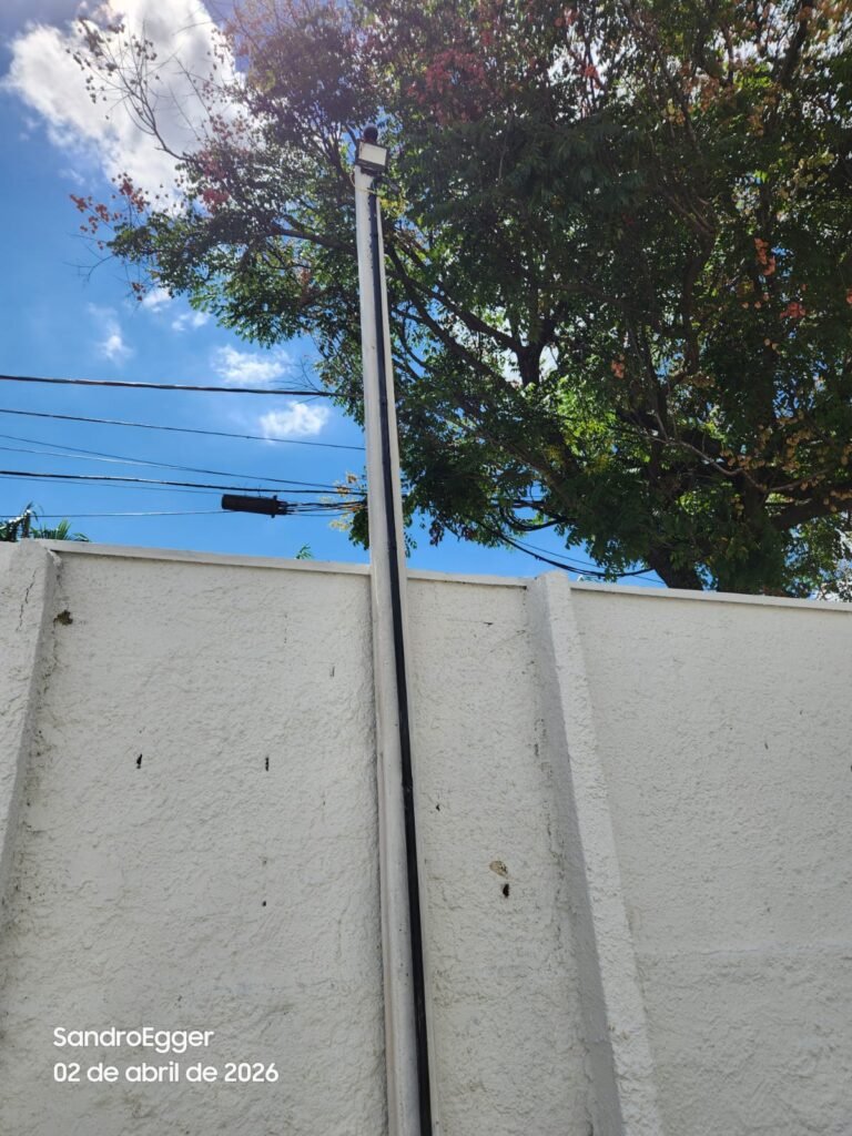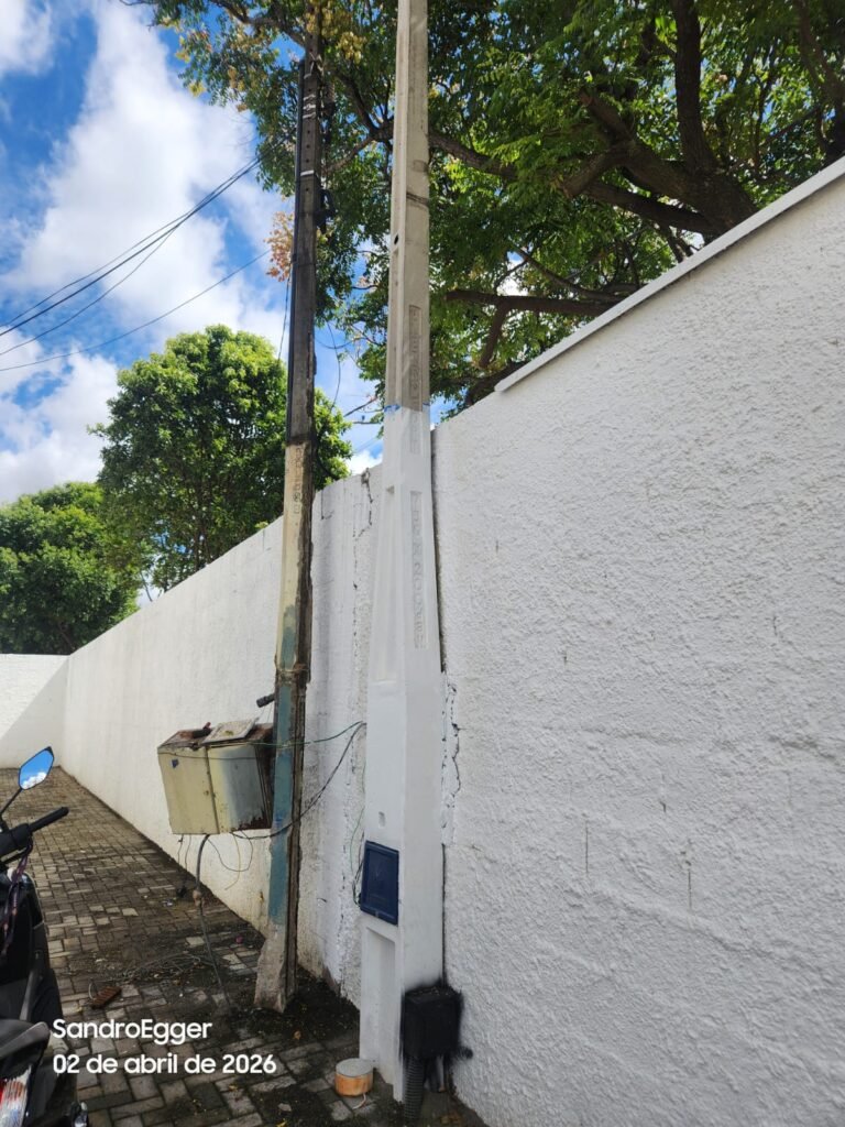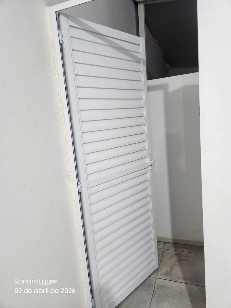 FACHADA:- Pintura das paredes na cor branco neve nova e em ordem, dígitos novos em ordem “3-1-7”, fechamento de telha galvanizada com pintura na cor azul com desgastes naturais, 01 lâmpada de LED nova e em ordem, 01 acionamento de campainha em ordem.