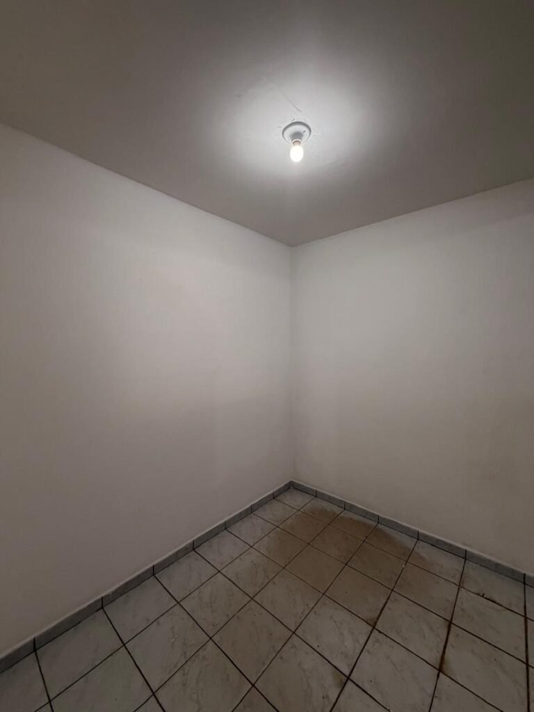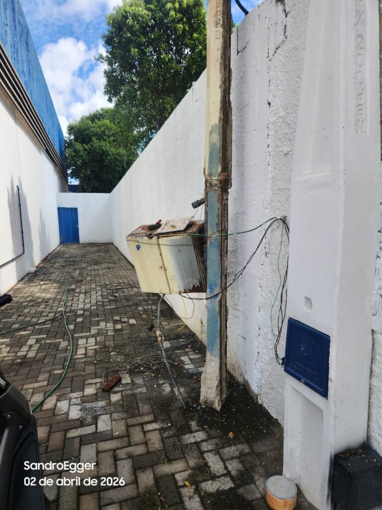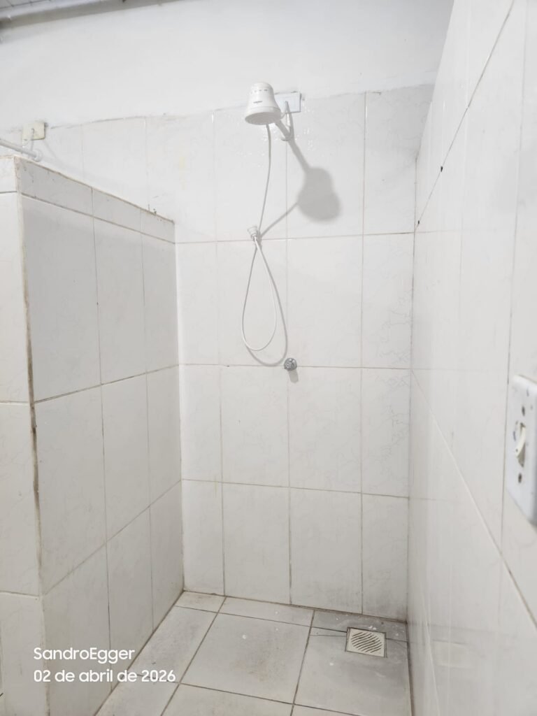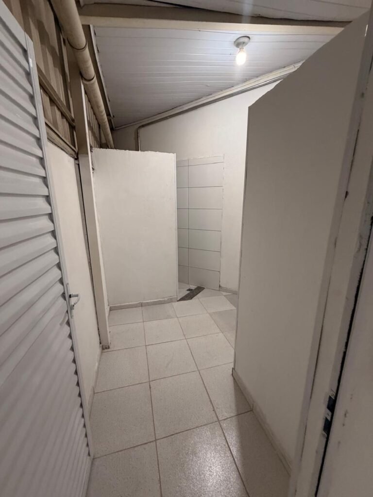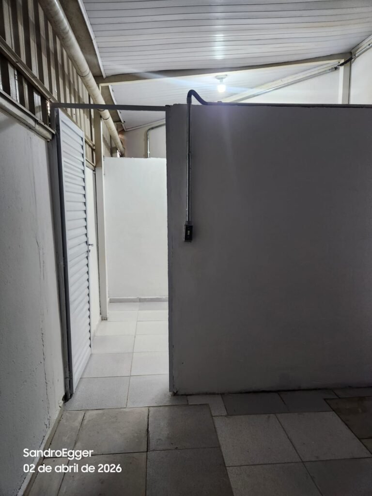 FUNDOS:- Piso frio cerâmico com manchas restante em ordem, 01 grela de ferro em ordem, caixa de gordura faltando tampa, parede com pintura nova na cor amarela em ordem, teto forro de PVC na cor branco em ordem, 04 pontos de luz com spot e lâmpadas em ordem, 01 torneira de jardim em ordem, 05 tomadas em ordem, 02 interruptores em ordem, 02 luminarias tartaruga em ordem, 01 ralo com tampa e desentupido em ordem, 01 porta de madeira com pintura em ordem.