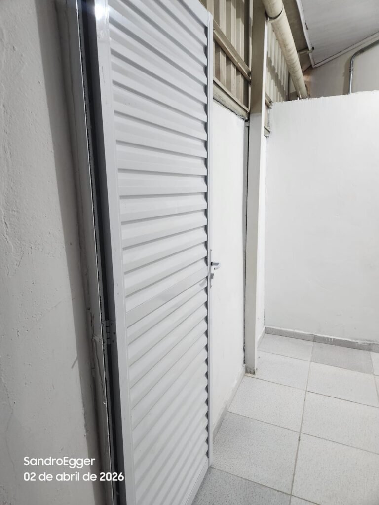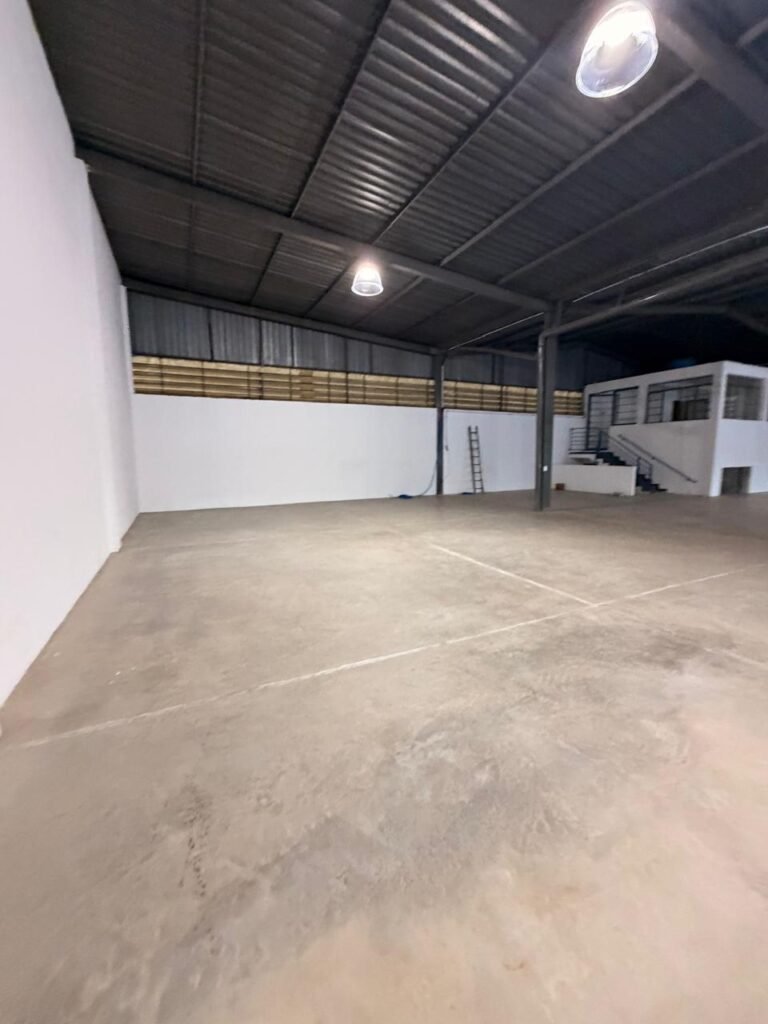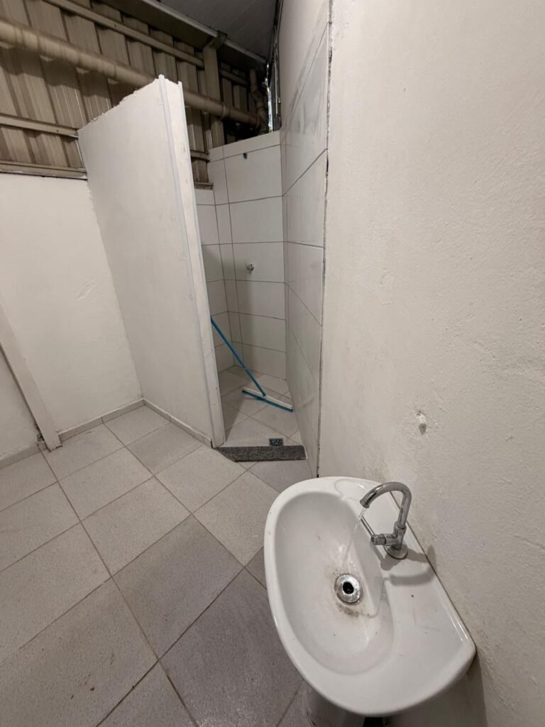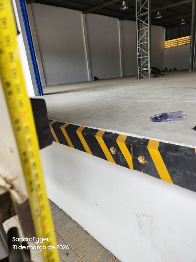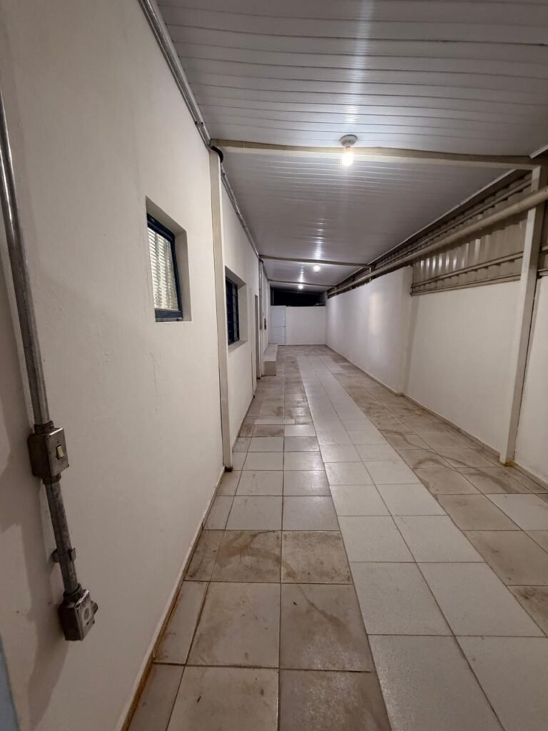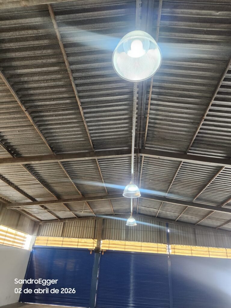 GALPÃO:- Piso de concreto Industrial novo e em ordem, paredes com pintura nova na cor branco neve em ordem, 09 venezianas industriais com desgastes naturais e partes delas está danificada, 01 quadro com fechadura para distribuição de disjuntores, 07 luminárias pendentes com lâmpadas de led em ordem, 05 portas de enrolar com motores automáticos novos em ordem, portas com pintura nova na cor azul em ordem, todas com 01 botoeira em ordem, 04 espelhos de luz, 01 espelho com interruptores e restante espelhos cegos, 01 porta social em chapas de ferro com pintura nova na cor azul em ordem, contendo 02 trincos para cadeado, maçanetas em inox em ordem e fechadura com chave em ordem.