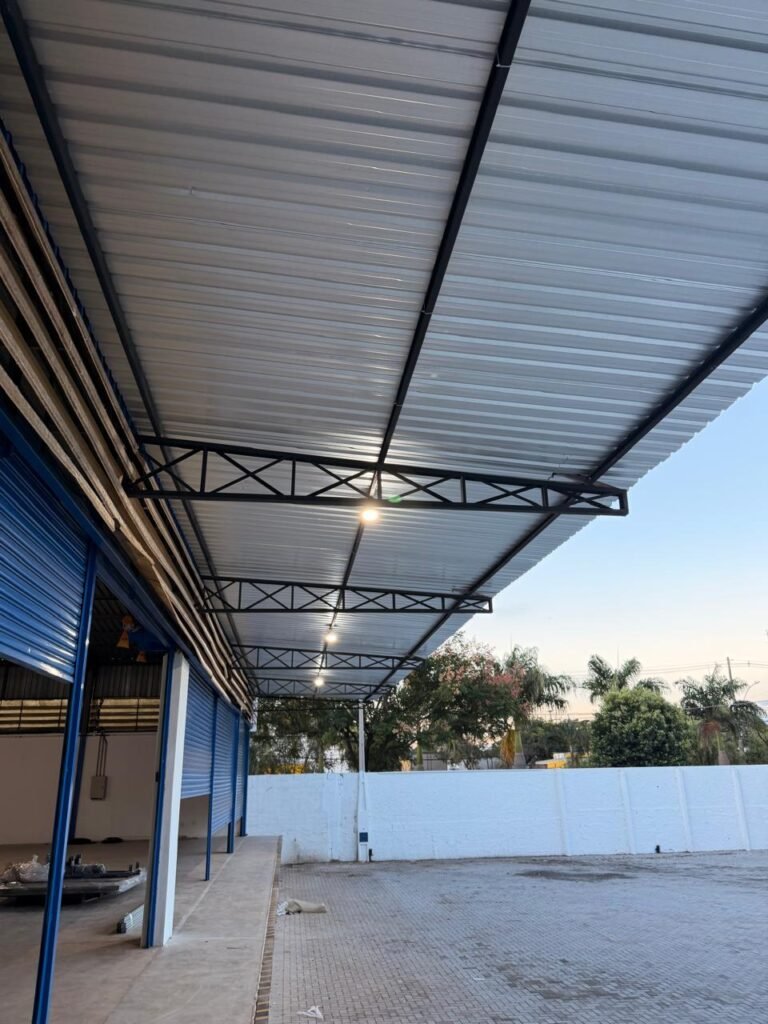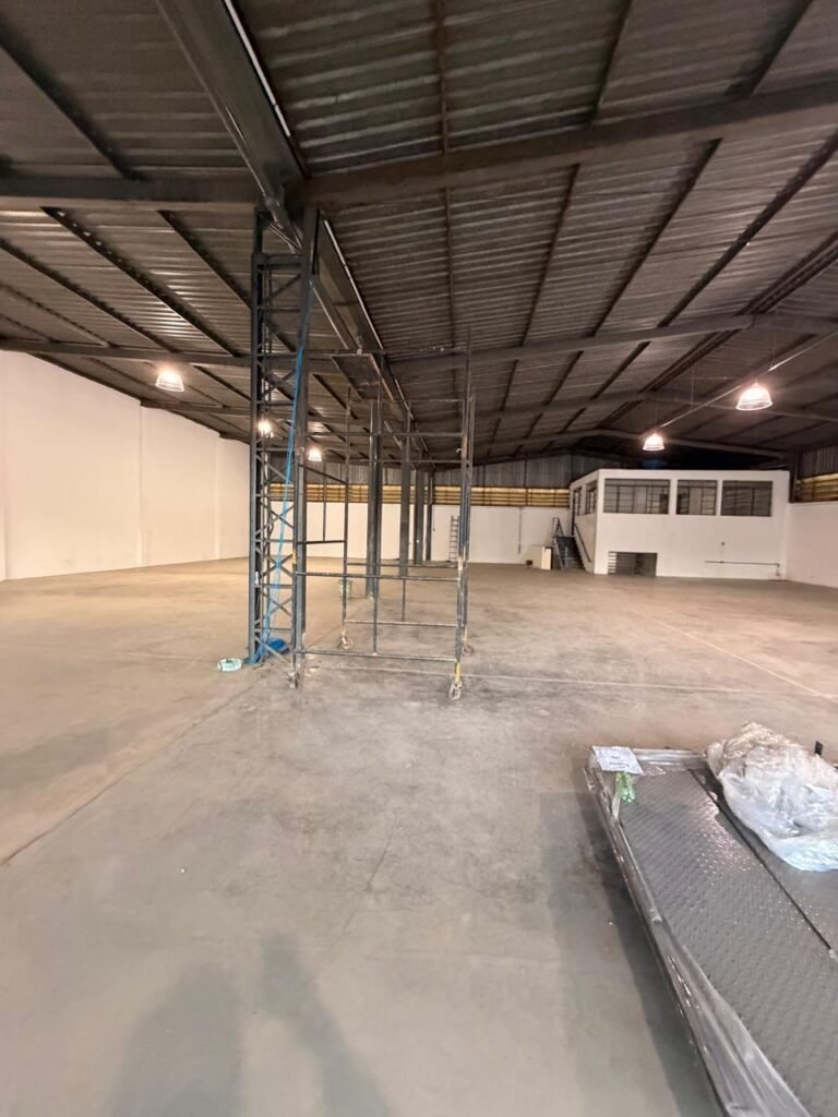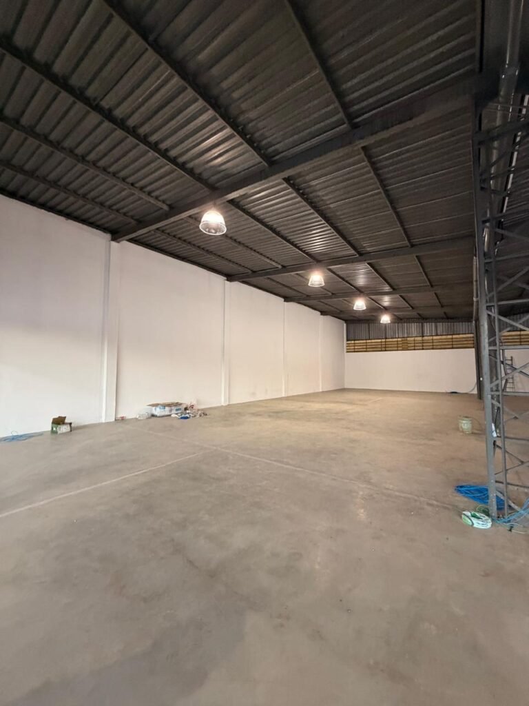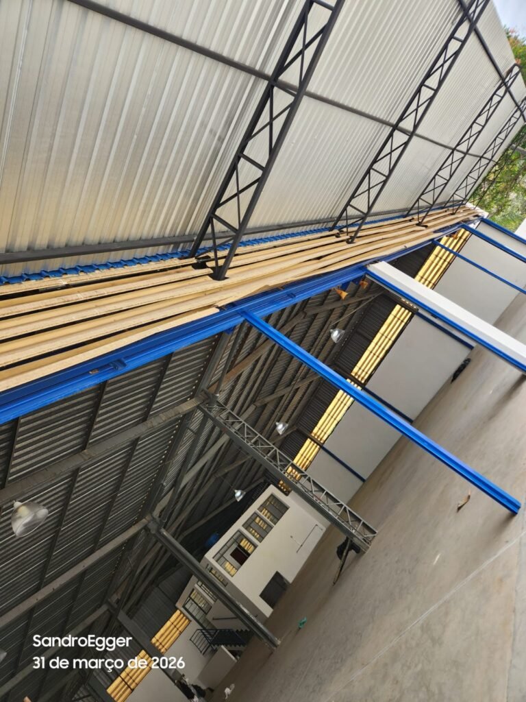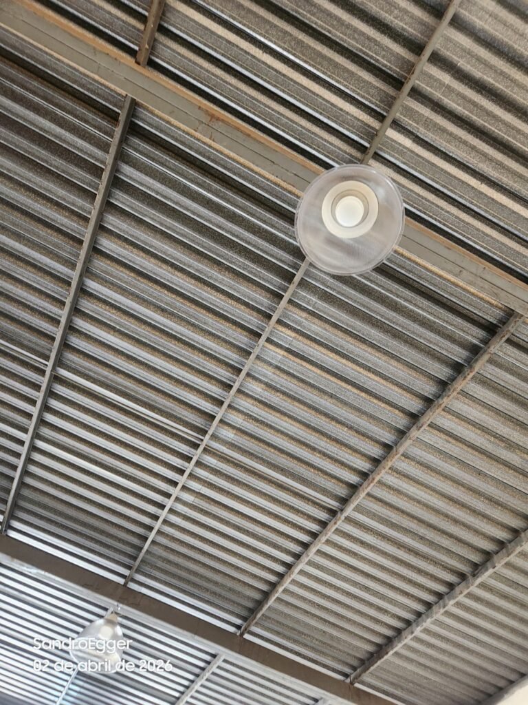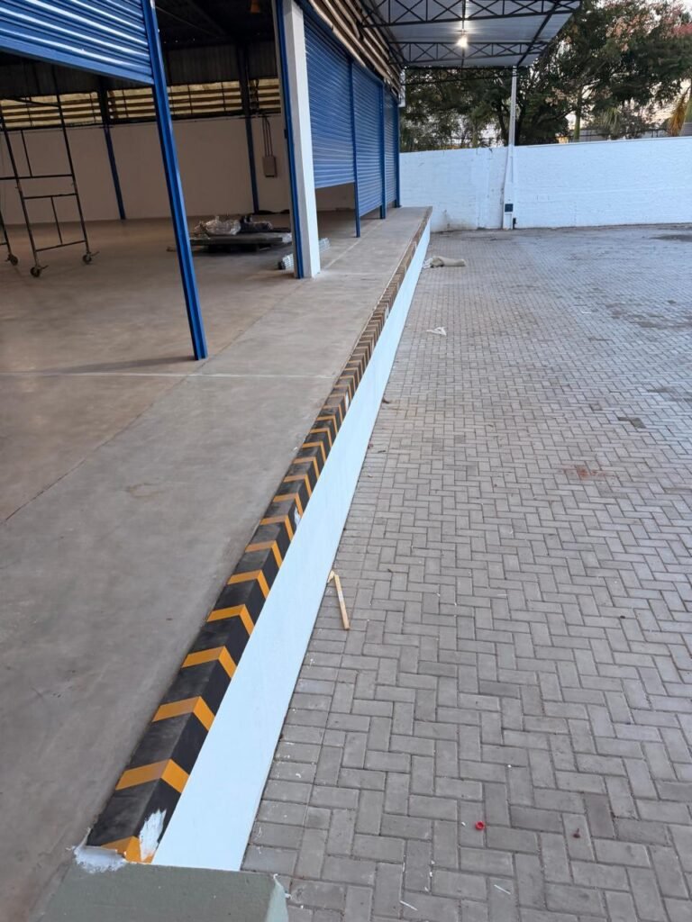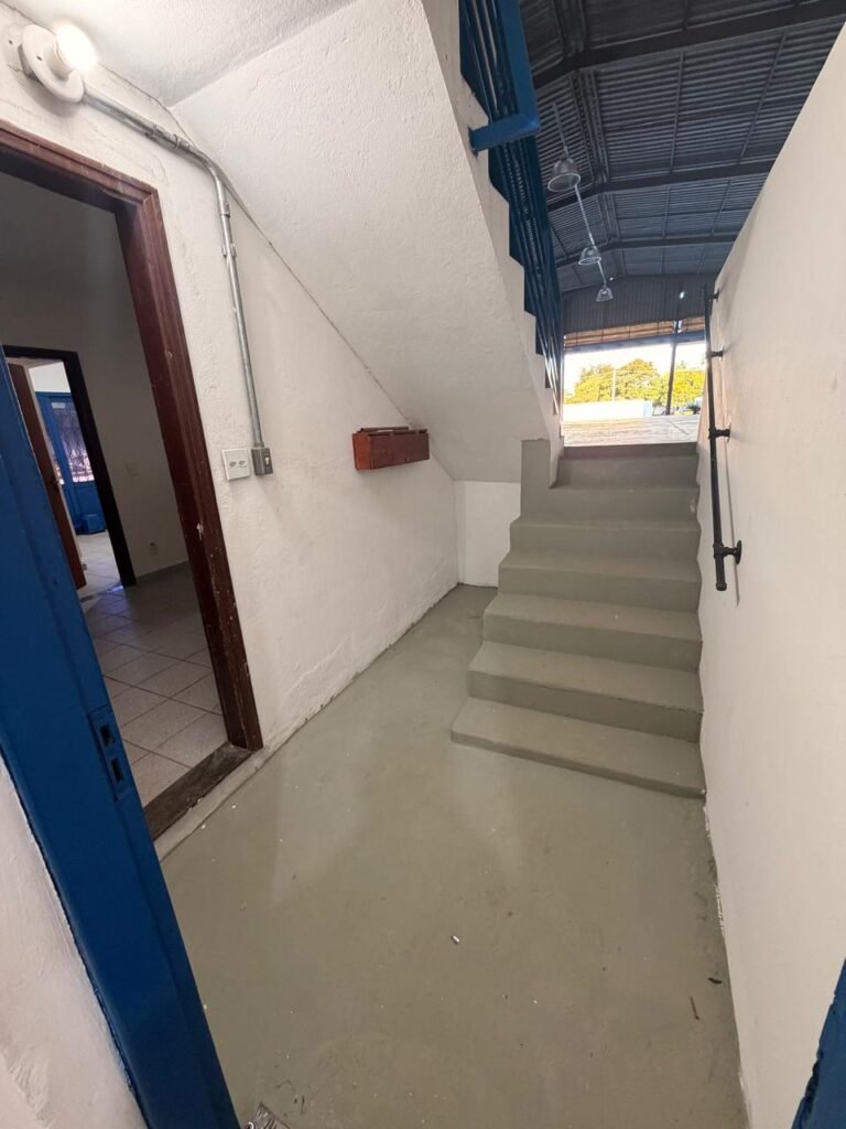 GALPÃO:- Piso de concreto Industrial novo e em ordem, paredes com pintura nova na cor branco neve em ordem, 09 venezianas industriais com desgastes naturais e partes delas está danificada, 01 quadro com fechadura para distribuição de disjuntores, 07 luminárias pendentes com lâmpadas de led em ordem, 05 portas de enrolar com motores automáticos novos em ordem, portas com pintura nova na cor azul em ordem, todas com 01 botoeira em ordem, 04 espelhos de luz, 01 espelho com interruptores e restante espelhos cegos, 01 porta social em chapas de ferro com pintura nova na cor azul em ordem, contendo 02 trincos para cadeado, maçanetas em inox em ordem e fechadura com chave em ordem.