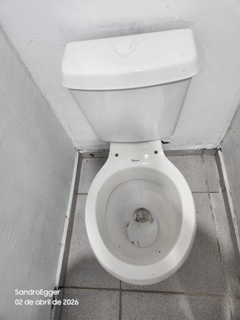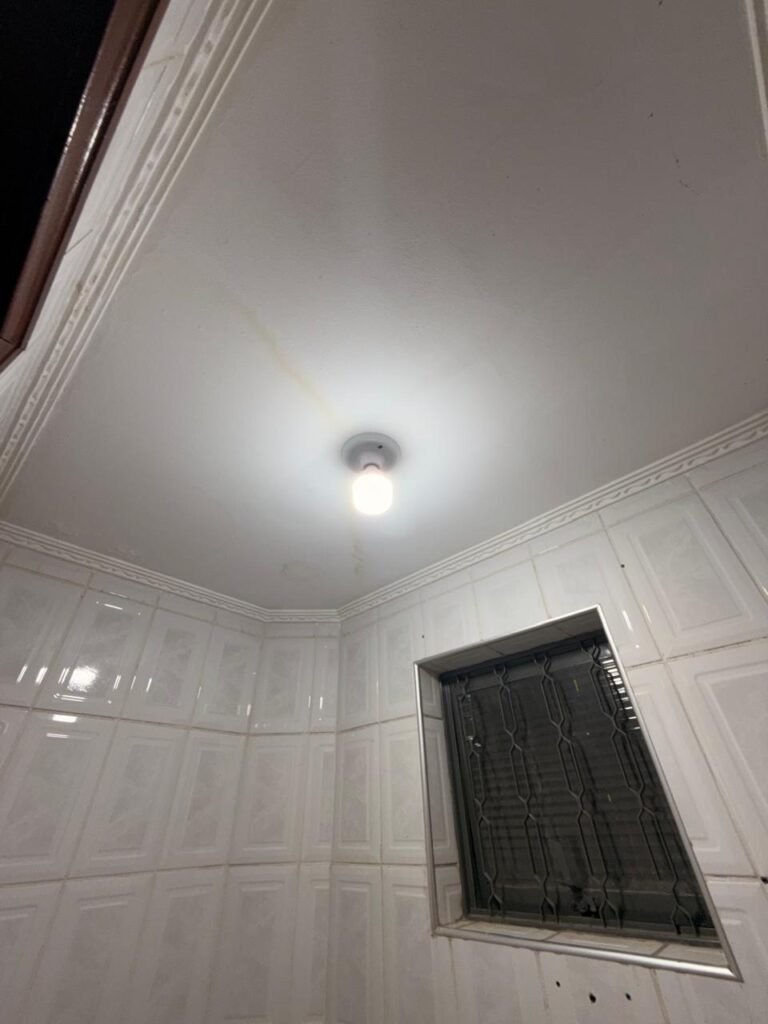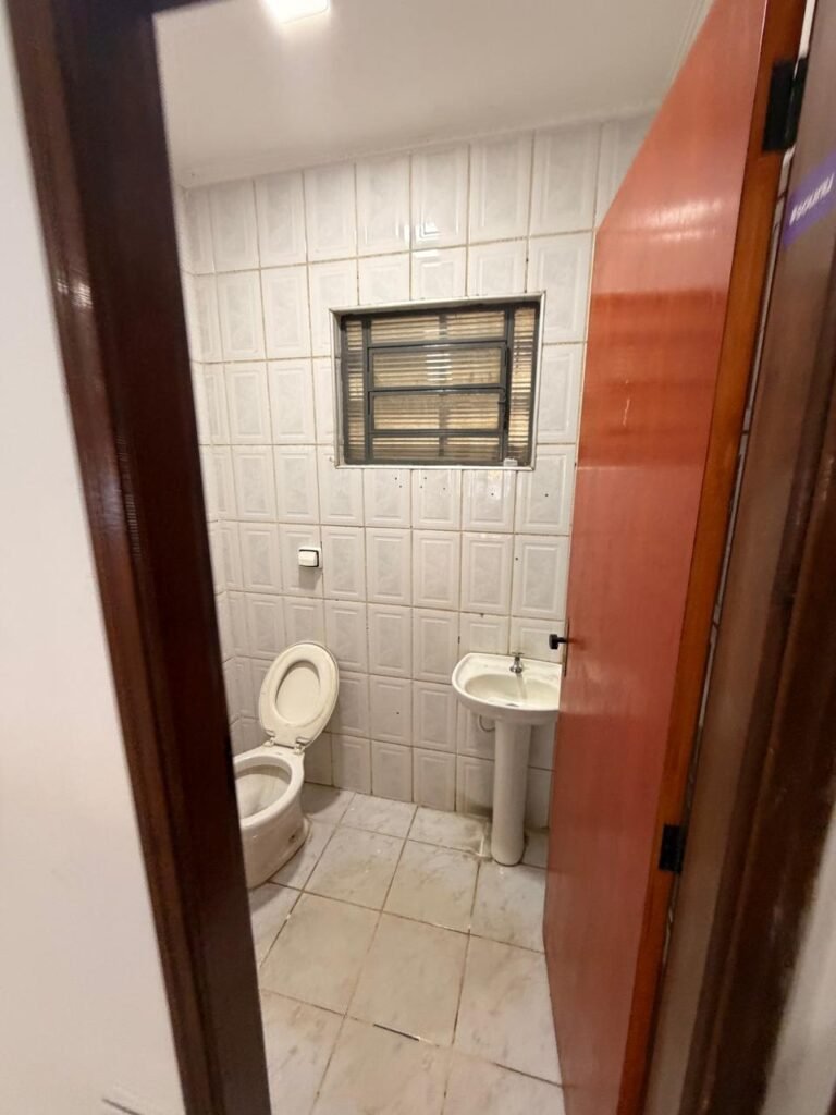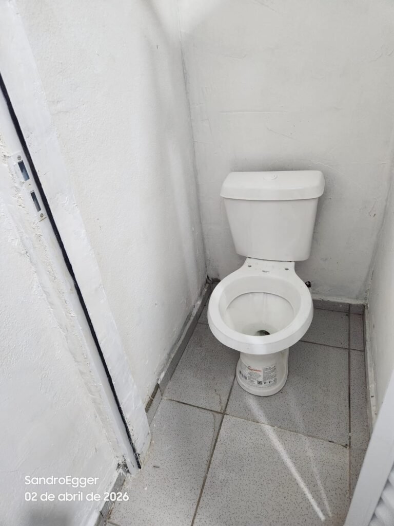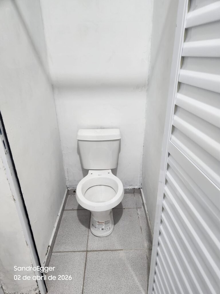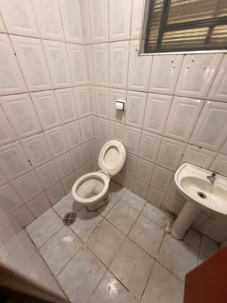 BANHEIRO:- Piso frio cerâmico em ordem, azulejo ate o teto com buracos com bucha restante em ordem, teto e gola de gesso com pintura na cor branco neve em ordem, 01 ponto de luz com spot com spot e lâmpada plafon de sobrepor LED em ordem, porta de madeira envernizada em ordem, maçanetas em ordem, fechadura e chave fixa em ordem, vitrô basculante em ordem, 06 vidros em ordem, válvula de descarga hydra em ordem, vaso sanitário cerâmica branca topázio em ordem, conjunto de lavatório e coluna cerâmica branca em ordem, torneira em ordem, 01 interruptor em ordem, 01 tomada em ordem, sem chuveiro.
