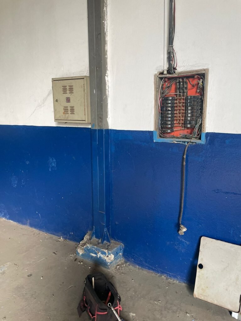 RECEPÇÃO:- Piso frio cerâmico, paredes com pintura na cor marfim em ordem, teto com pintura na cor branco neve em ordem, 01 ponto de luz com spot e lâmpada em ordem, porta de correr com pintura nova na cor azul em ordem, maçanetas em ordem, fechadura e chave em ordem, vidros transparentes lisos em ordem, motor eletrônico Peccinin desligado, 01 interruptor em ordem, 04 tomadas em ordem, 07 espelhos de luz em ordem, caixa de disjuntores em ordem, 06 dijuntores Pial Legrand UNIC sendo dois: C25 A e quatro: C30 A.