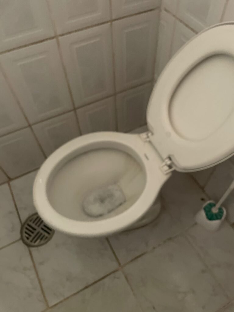 BANHEIRO:- Piso frio cerâmico em ordem, azulejo ate o teto com buracos com bucha restante em ordem, teto e gola de gesso com pintura na cor branco neve em ordem, 01 ponto de luz com spot e lâmpada em ordem, vitrô basculante em ordem, puxador/trava em ordem, vidro e grade em ordem, porta de madeira envernizada em ordem, maçanetas em ordem, fechadura e chave em ordem, pia mármore em ordem, cuba cerâmica em ordem, sifão de borracha em ordem, torneira em ordem, vaso sanitário em ordem, válvula de descarga hydra em ordem, porta toalha cromado em ordem, porta papel higiênico em ordem, 01 interruptor em ordem, 01 tomada em ordem, 01 espelho de luz em ordem.