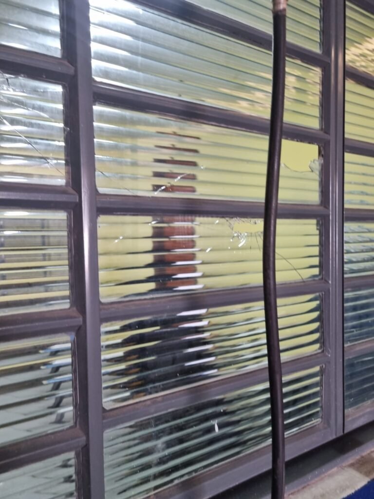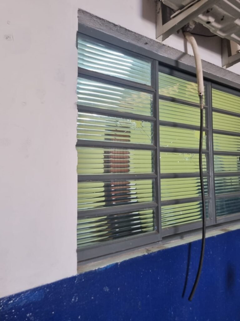 SALA 02:- Piso frio cerâmico com peças quebradas e faltando fileira entre as paredes de divisão que foi tirada restante em ordem, paredes com pintura nova na cor areia em ordem, teto com pintura nova na cor branca neve em ordem, 03 pontos de luz sendo que 02 estão com spot e lâmpadas em ordem e 01 esta com espelho cego, vitrô de ferro em ordem, 15 vidro transparentes lisos em ordem, porta de madeira envernizada em ordem, maçanetas em ordem, fechadura sem chave, 02 interruptores em ordem, 02 tomadas em ordem, 05 espelhos de luz em ordem.