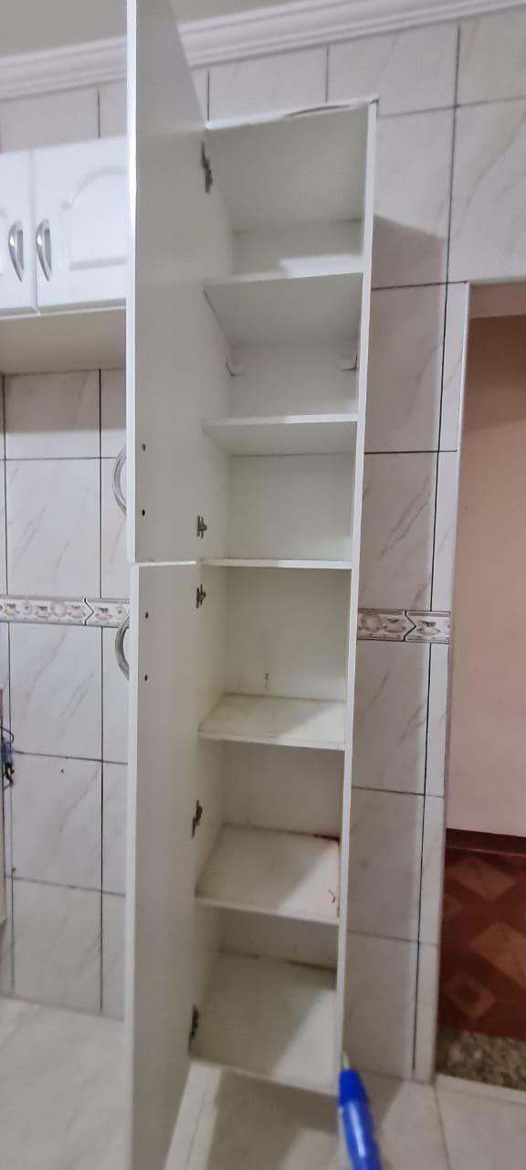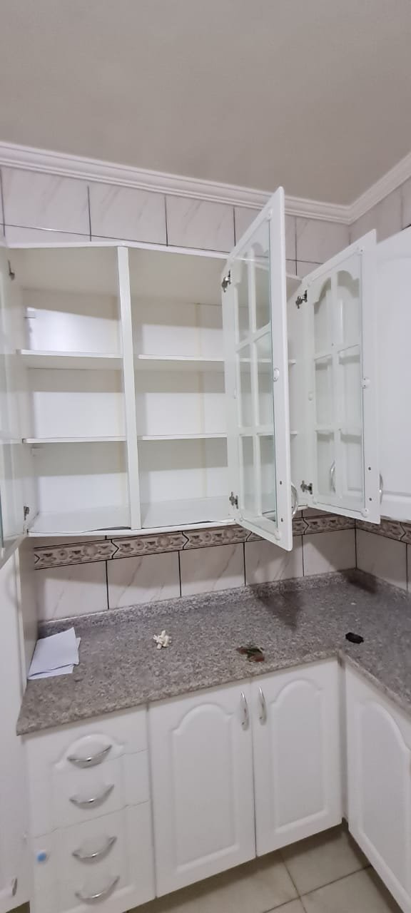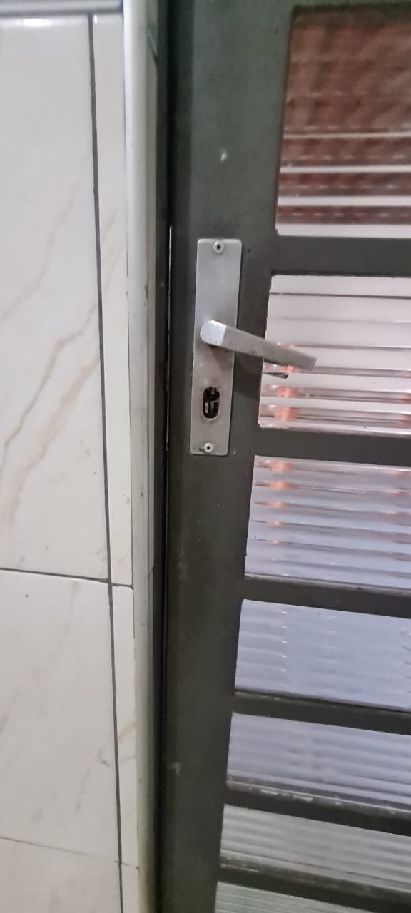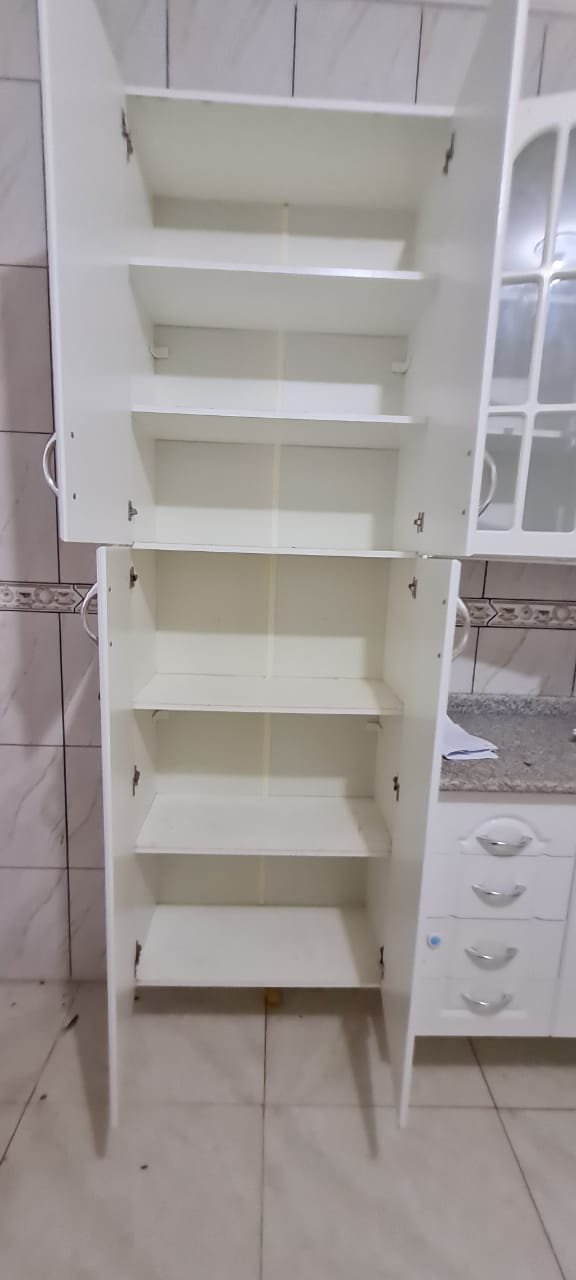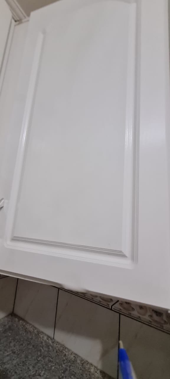 Cozinha:- Fechadura da porta quebrada sem miolo da parte de dentro, maçaneta solta, sem a chave da porta, teto sujo com manchas falta pintura, 02 porta do armário descascando, armário sujo, lâmpada da cozinha queimada.