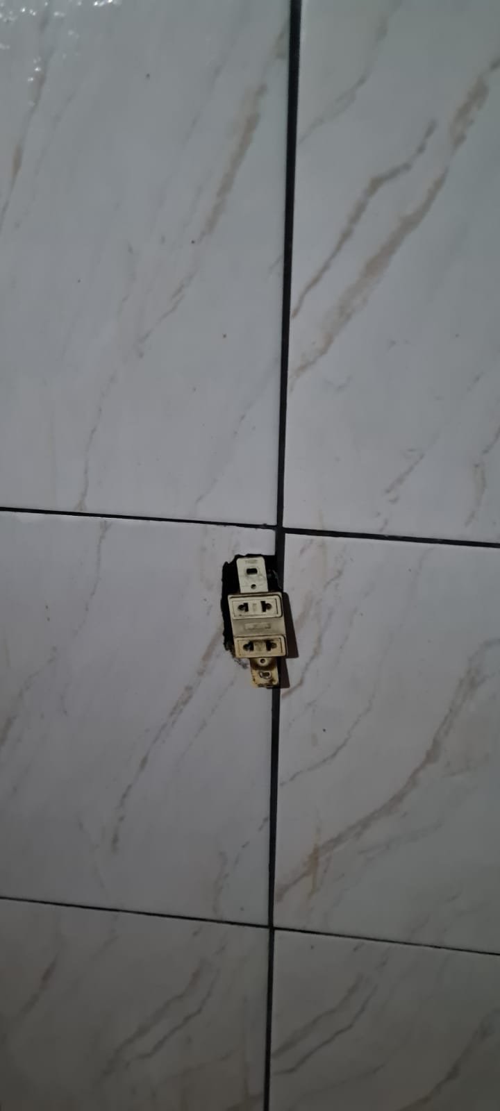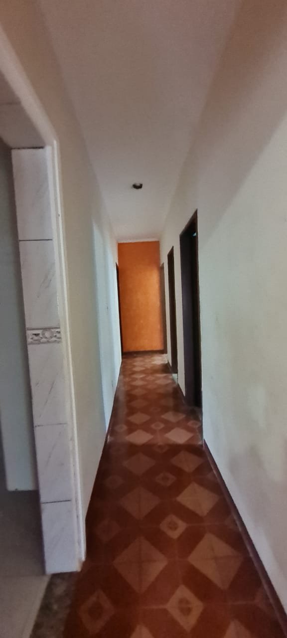 Corredor:- Paredes e teto sujas sem pintura, faltando lâmpada, piso com manchas brancas.